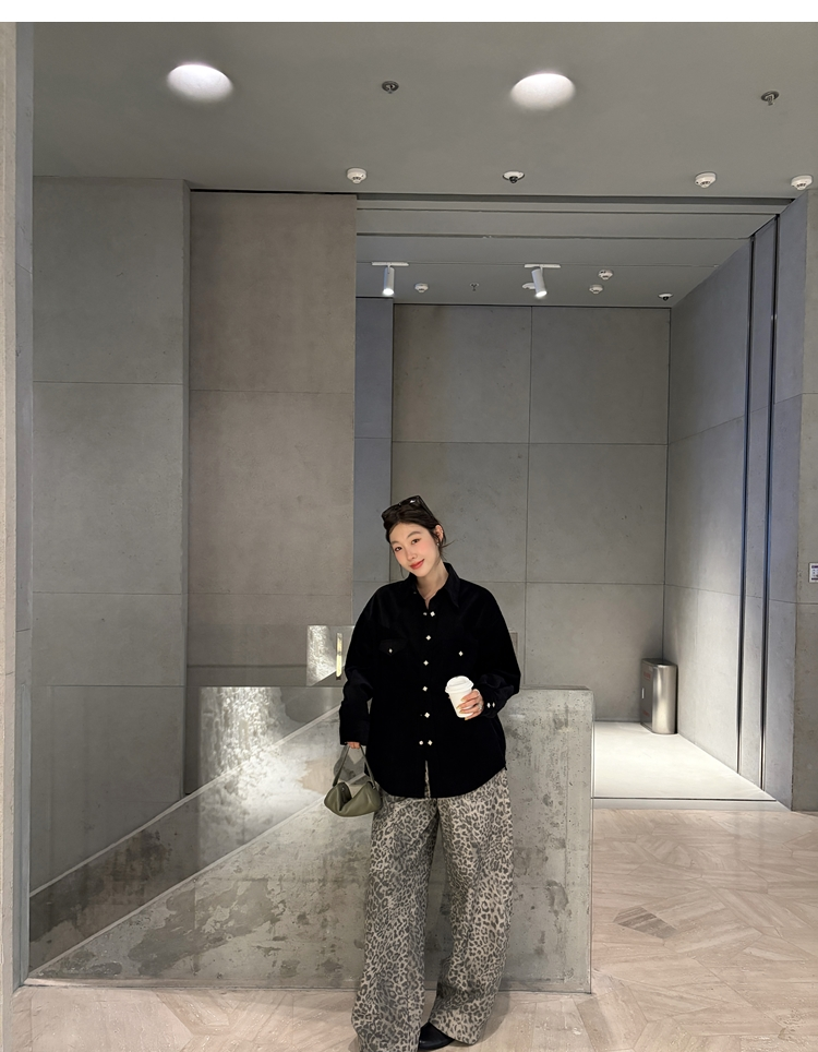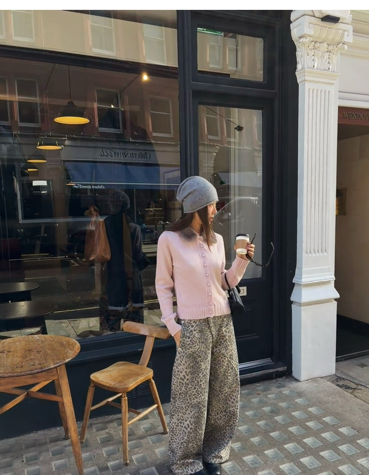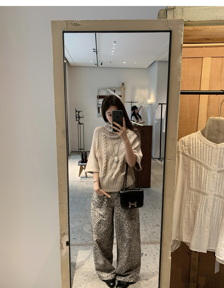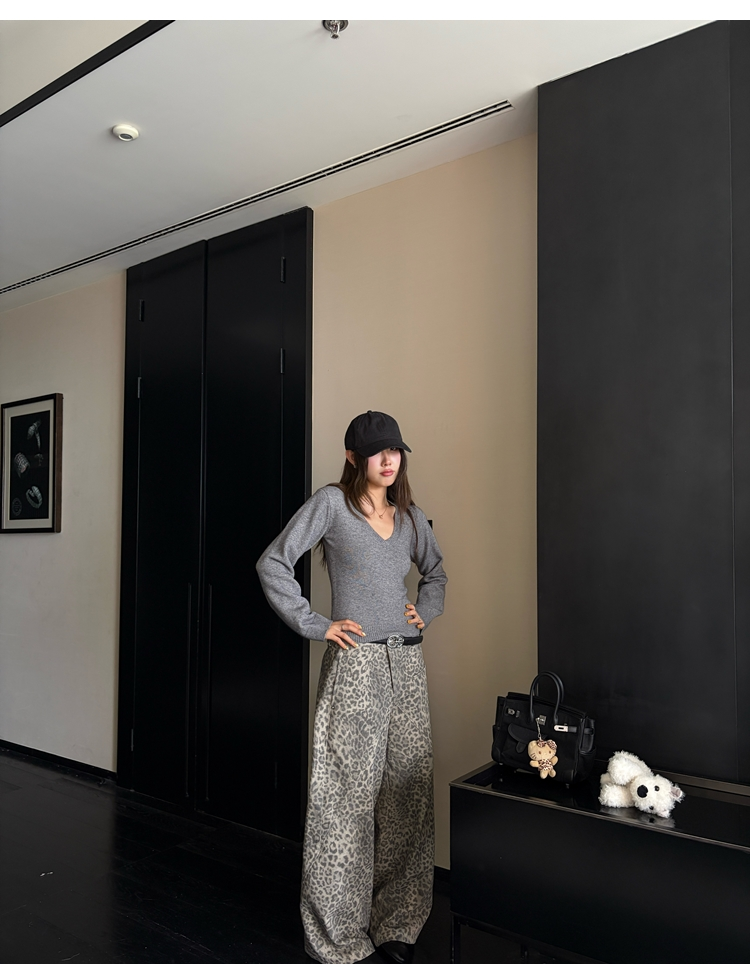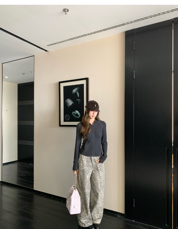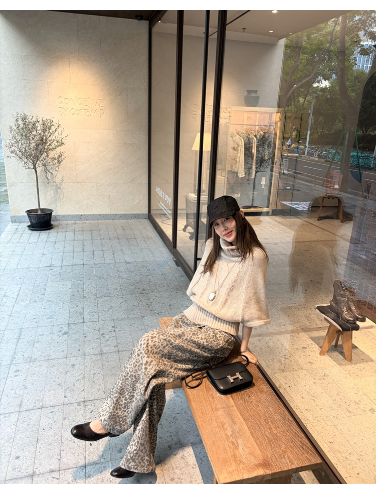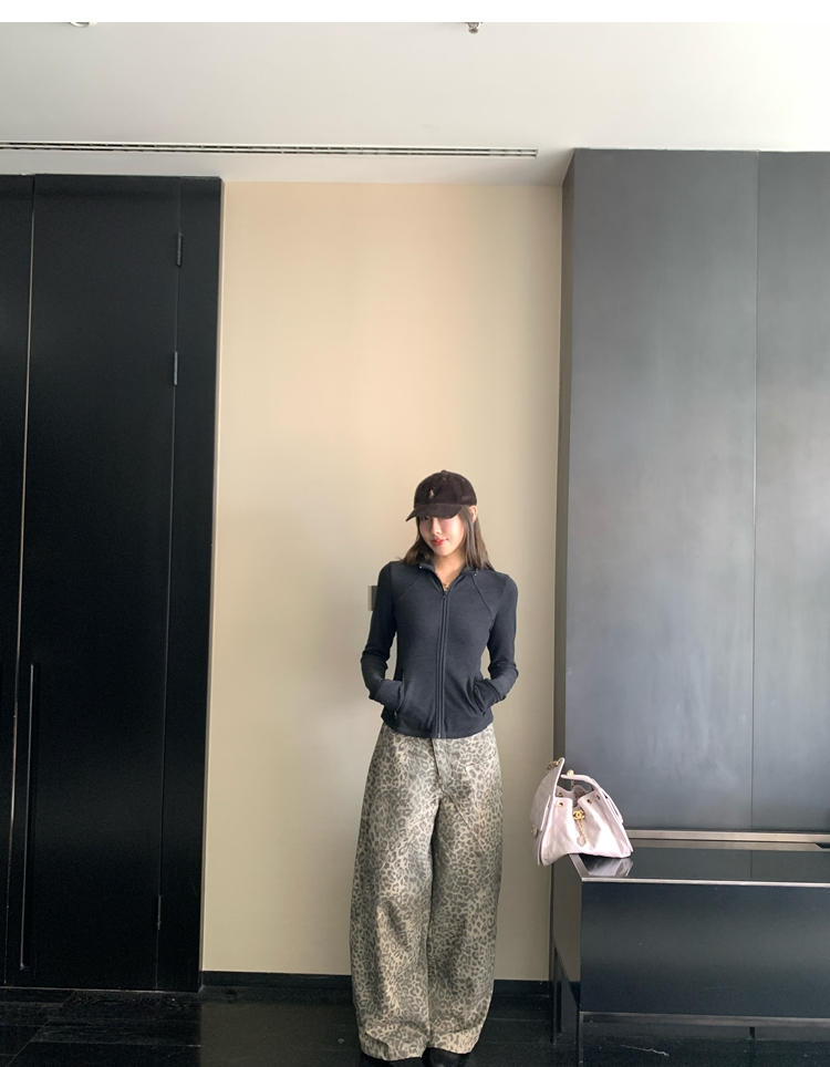 Leopard Walk City vintage waist washable wide-leg jeans
