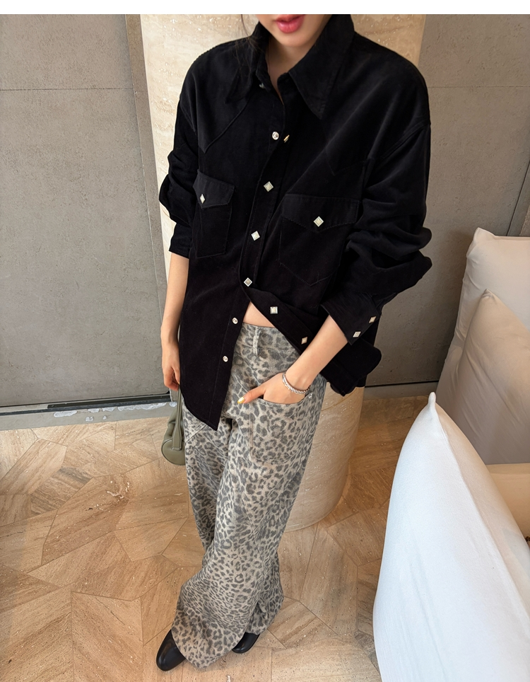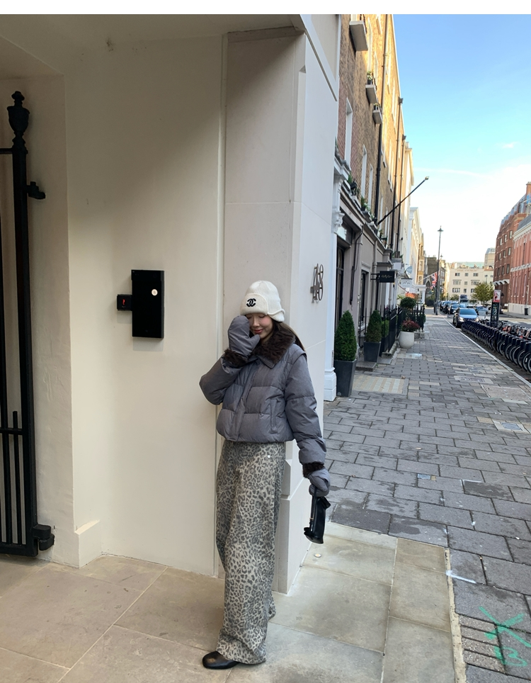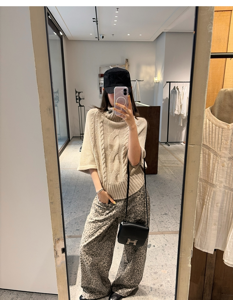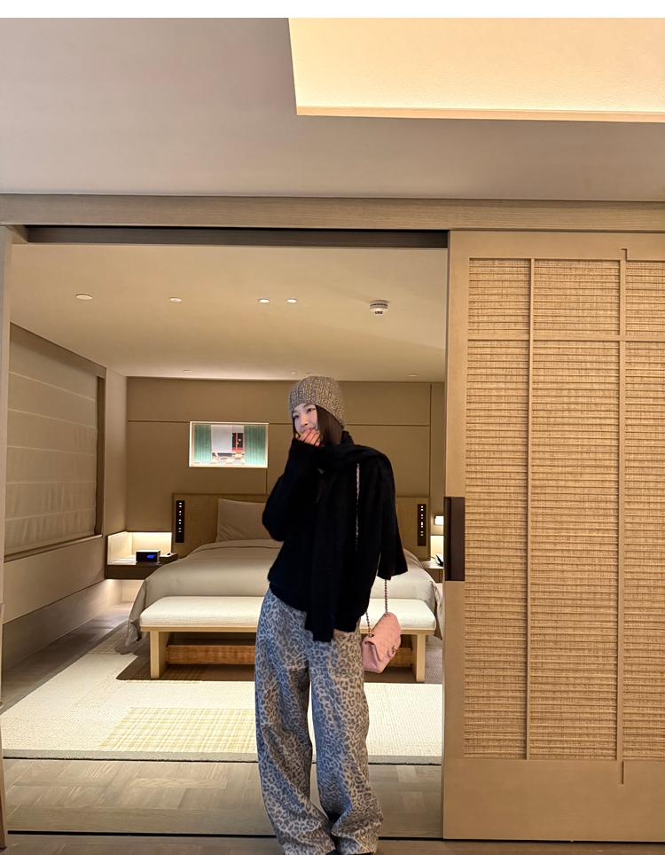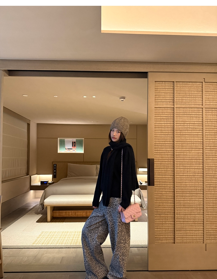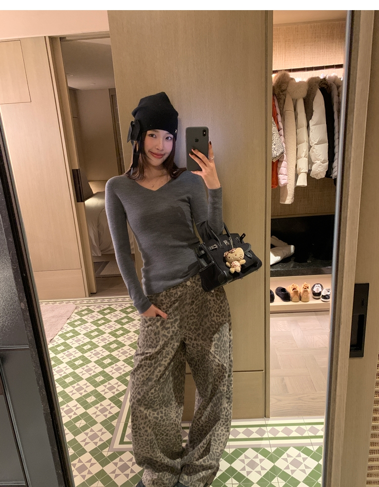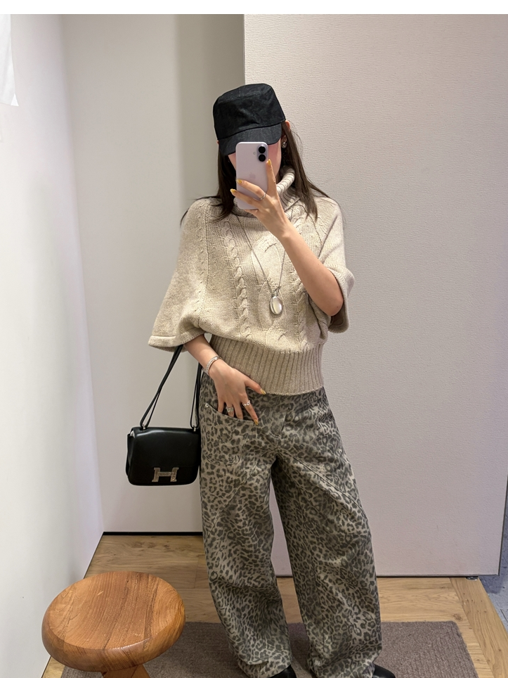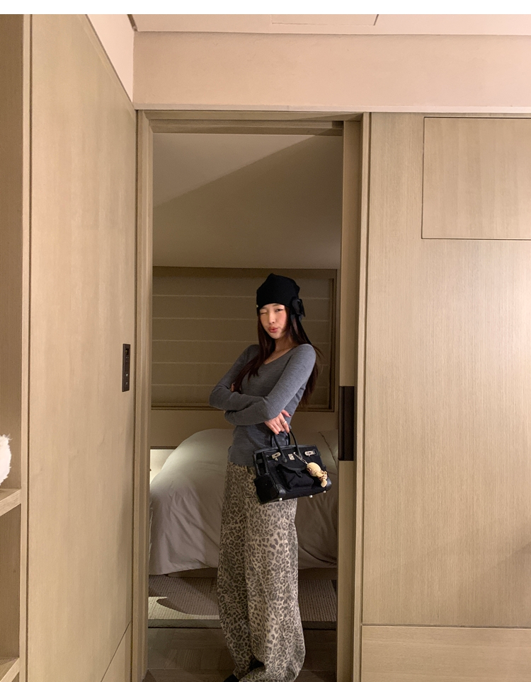 Leopard Walk City vintage waist washable wide-leg jeans
