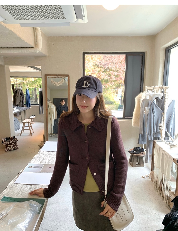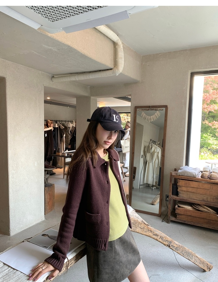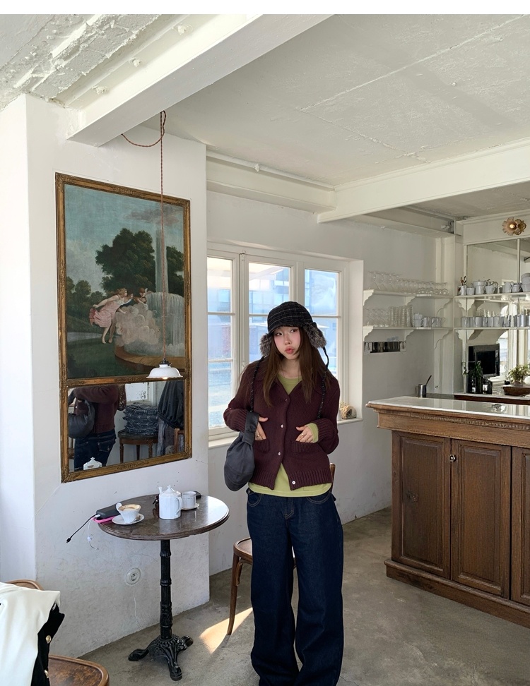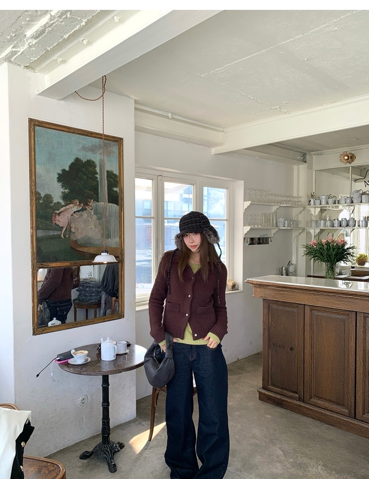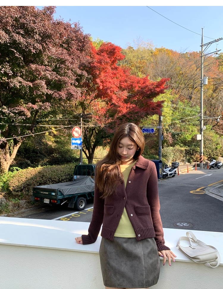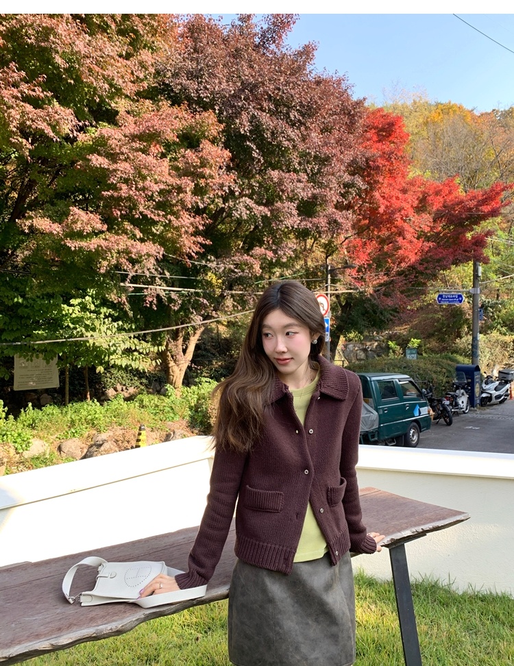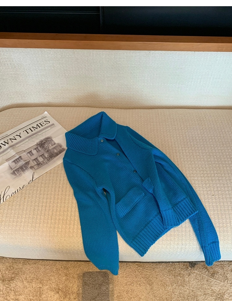 Elegant Mini Collar Double-Pocket Double-Layer Thick Knit Cardigan