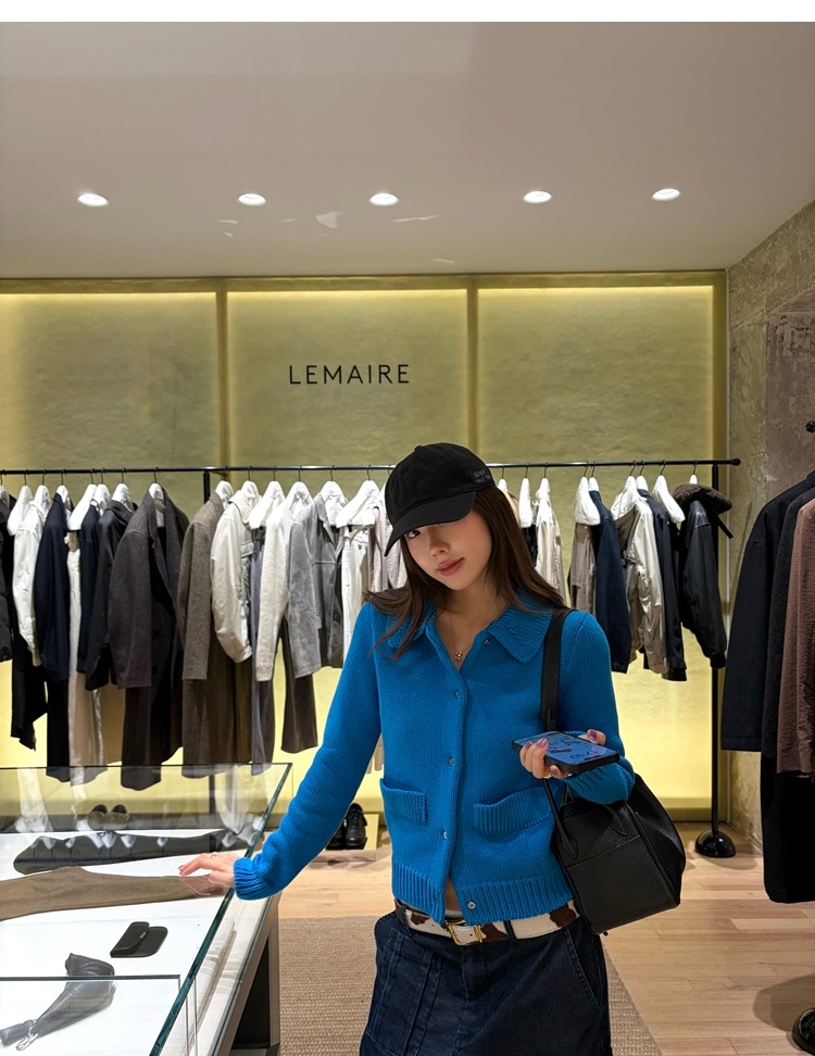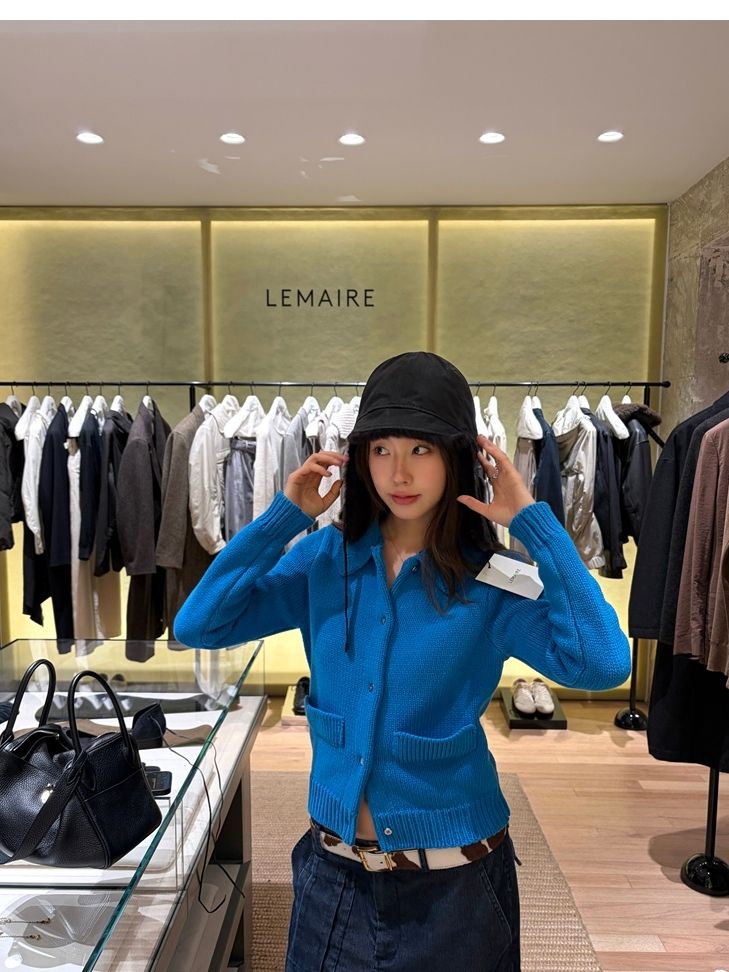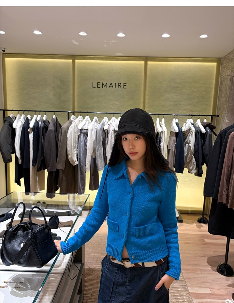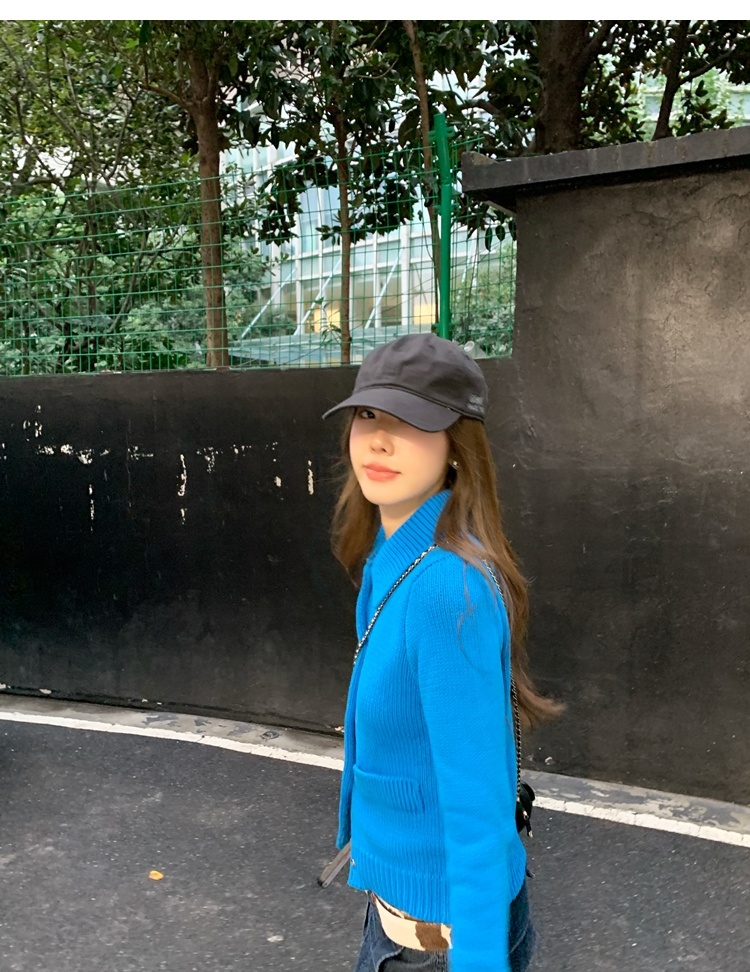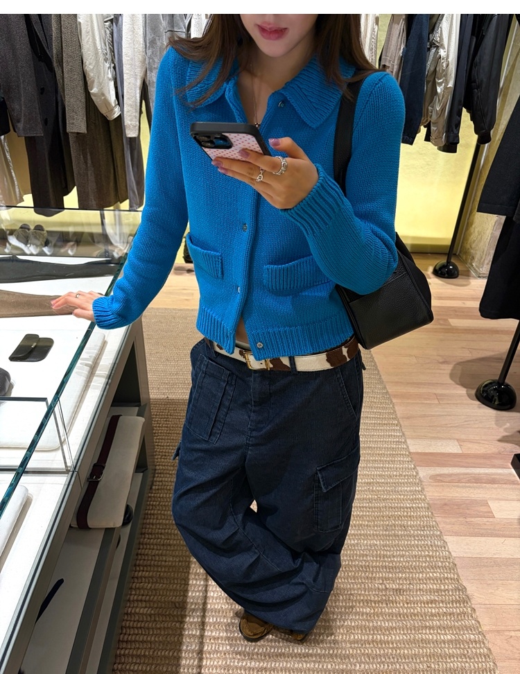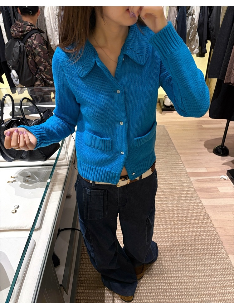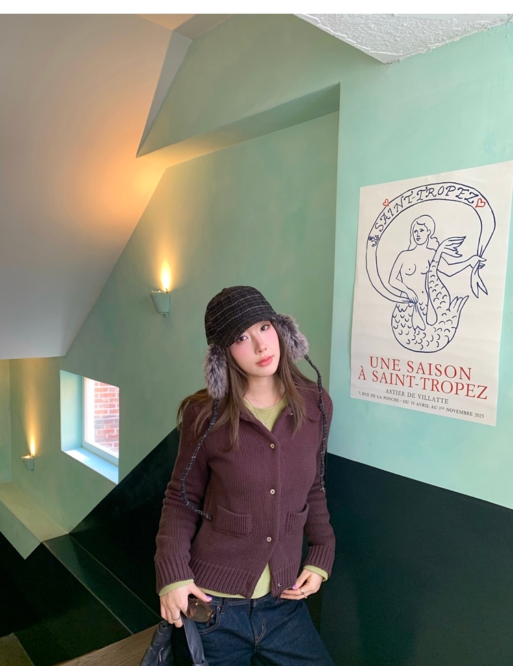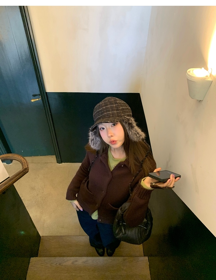 Elegant Mini Collar Double-Pocket Double-Layer Thick Knit Cardigan