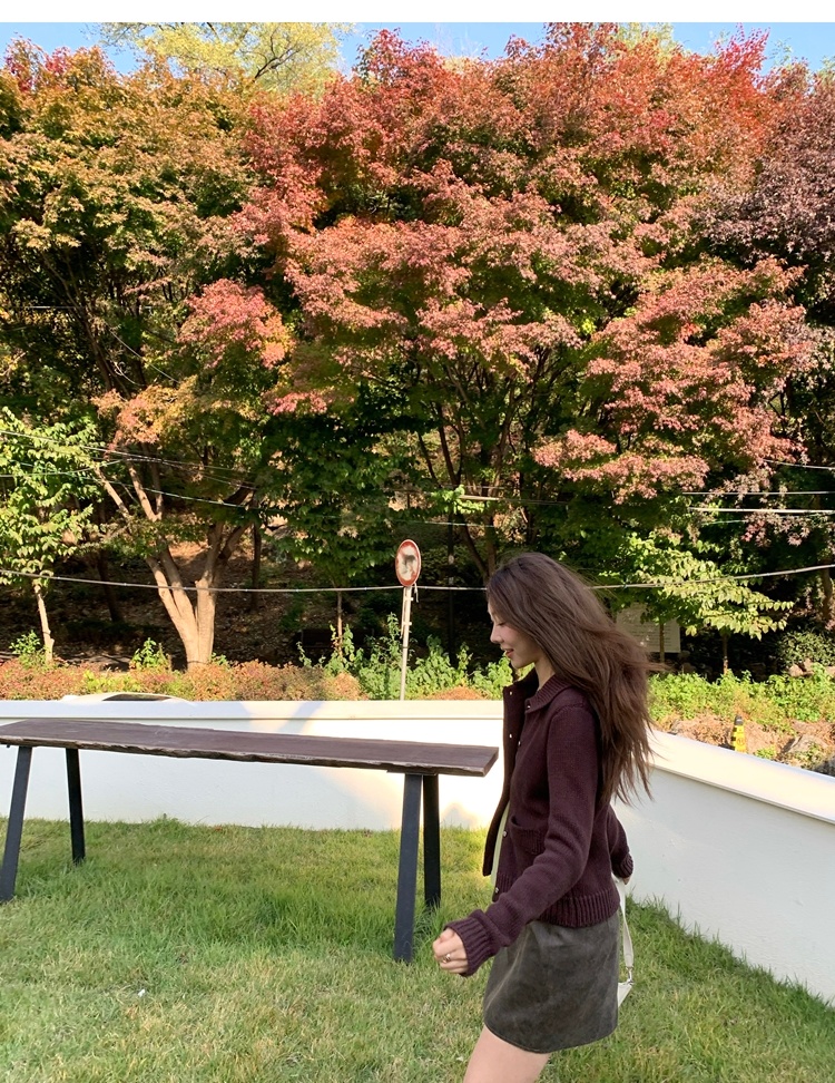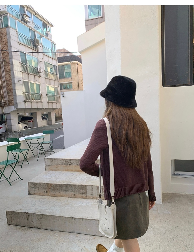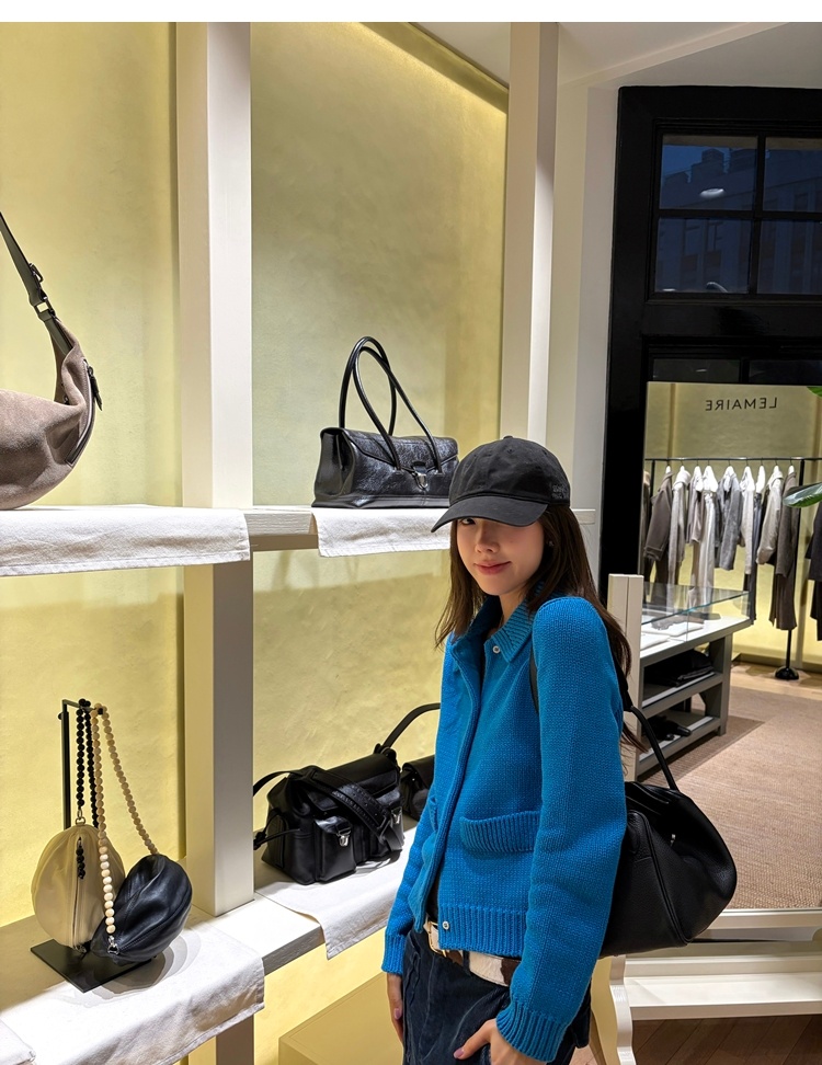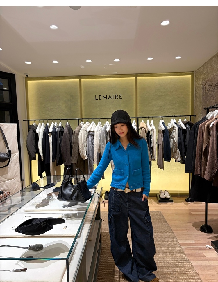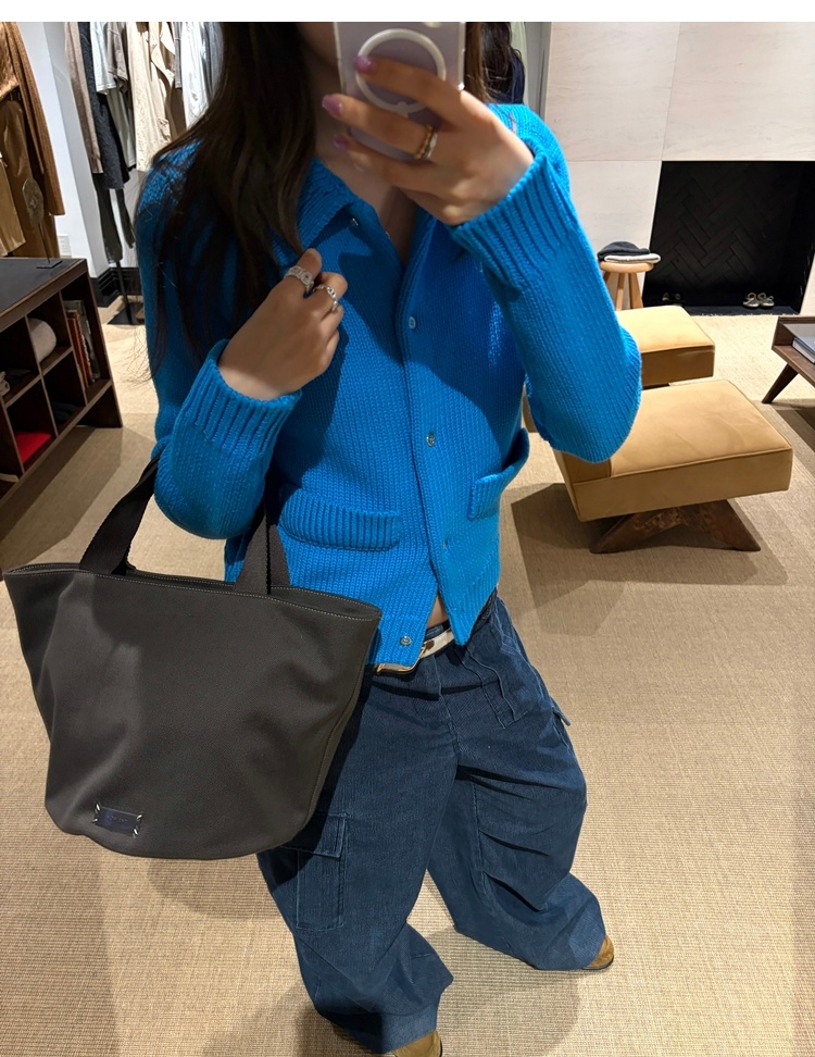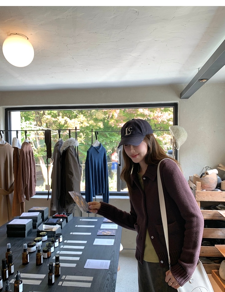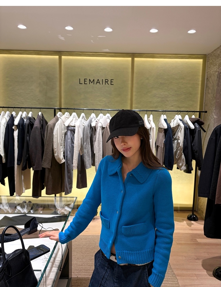 Elegant Mini Collar Double-Pocket Double-Layer Thick Knit Cardigan