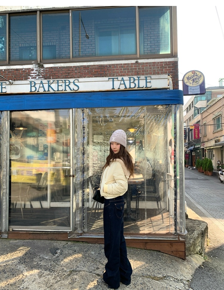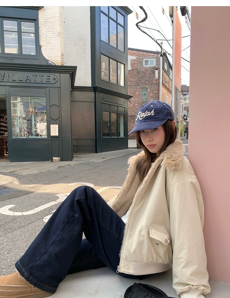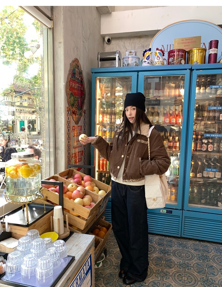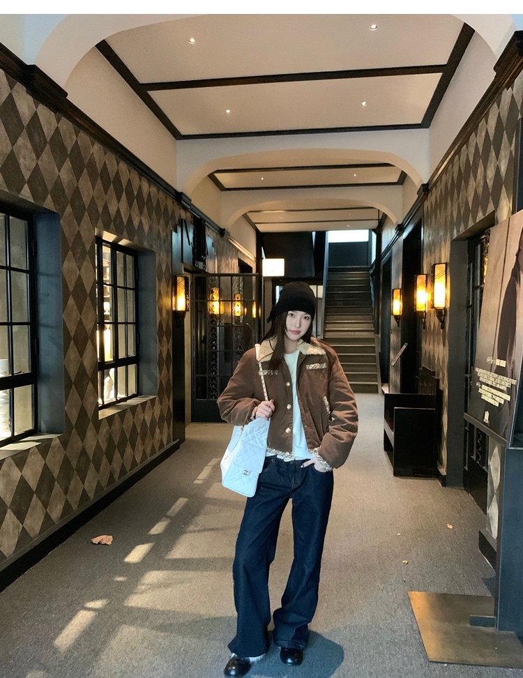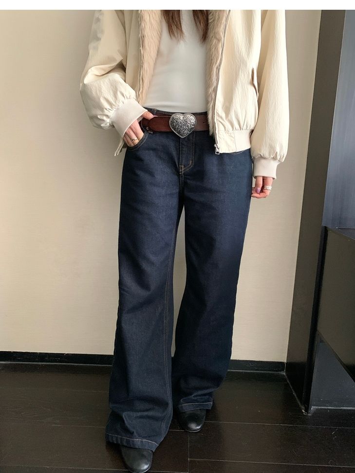 winter vintage straight-cut double-pocket plush thick jeans