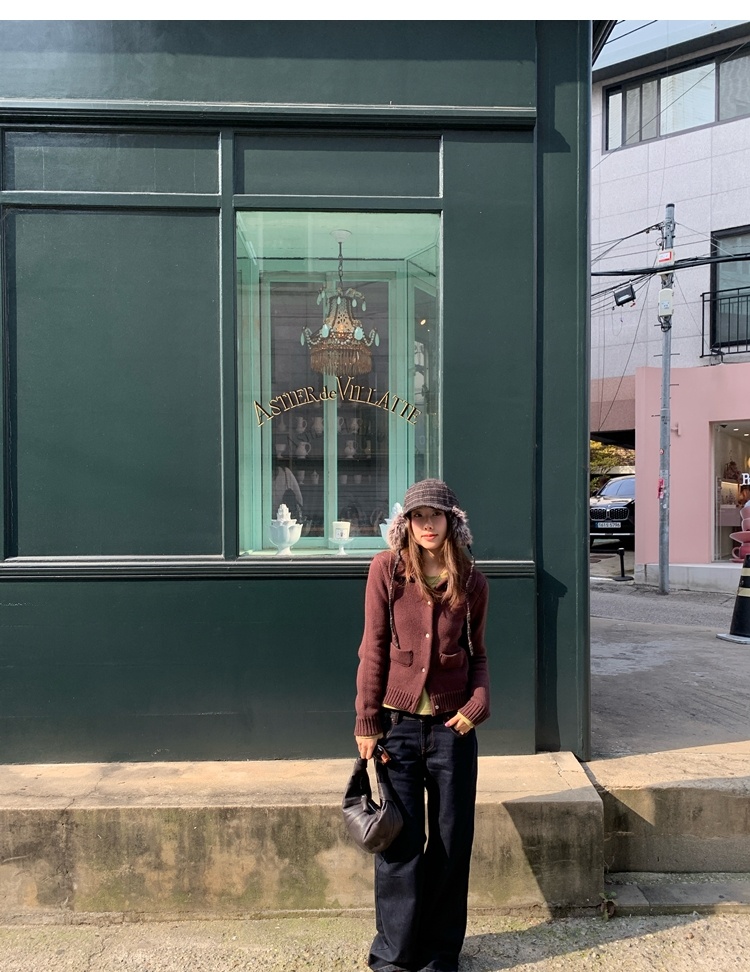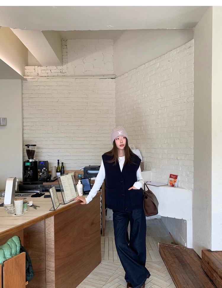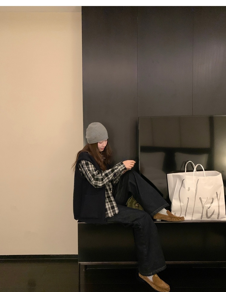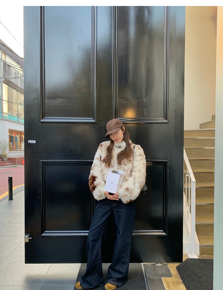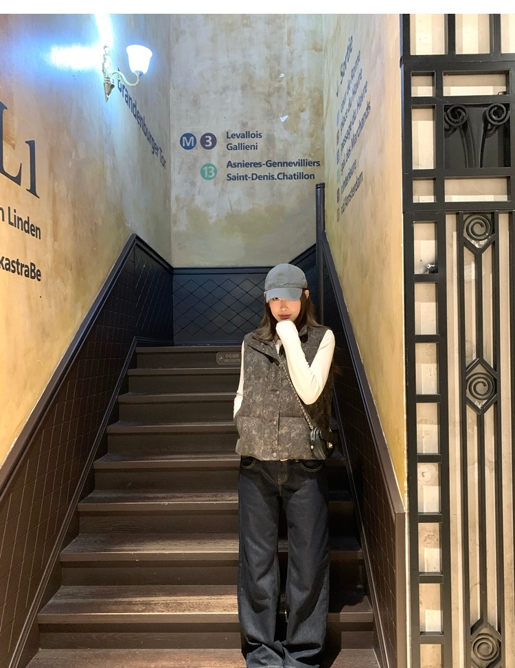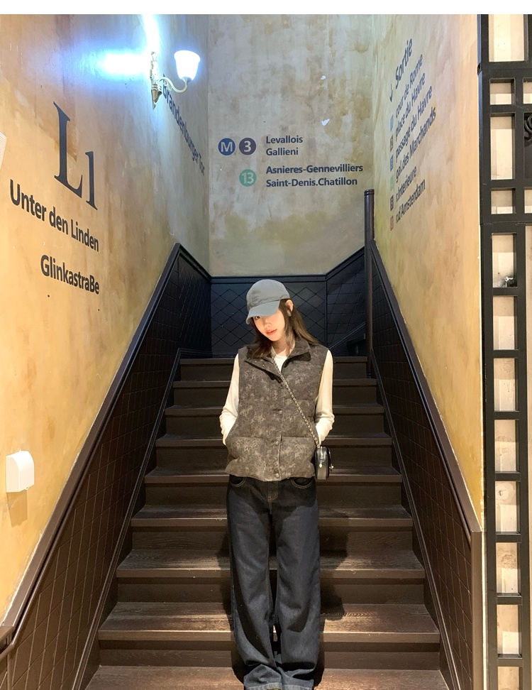 winter vintage straight-cut double-pocket plush thick jeans