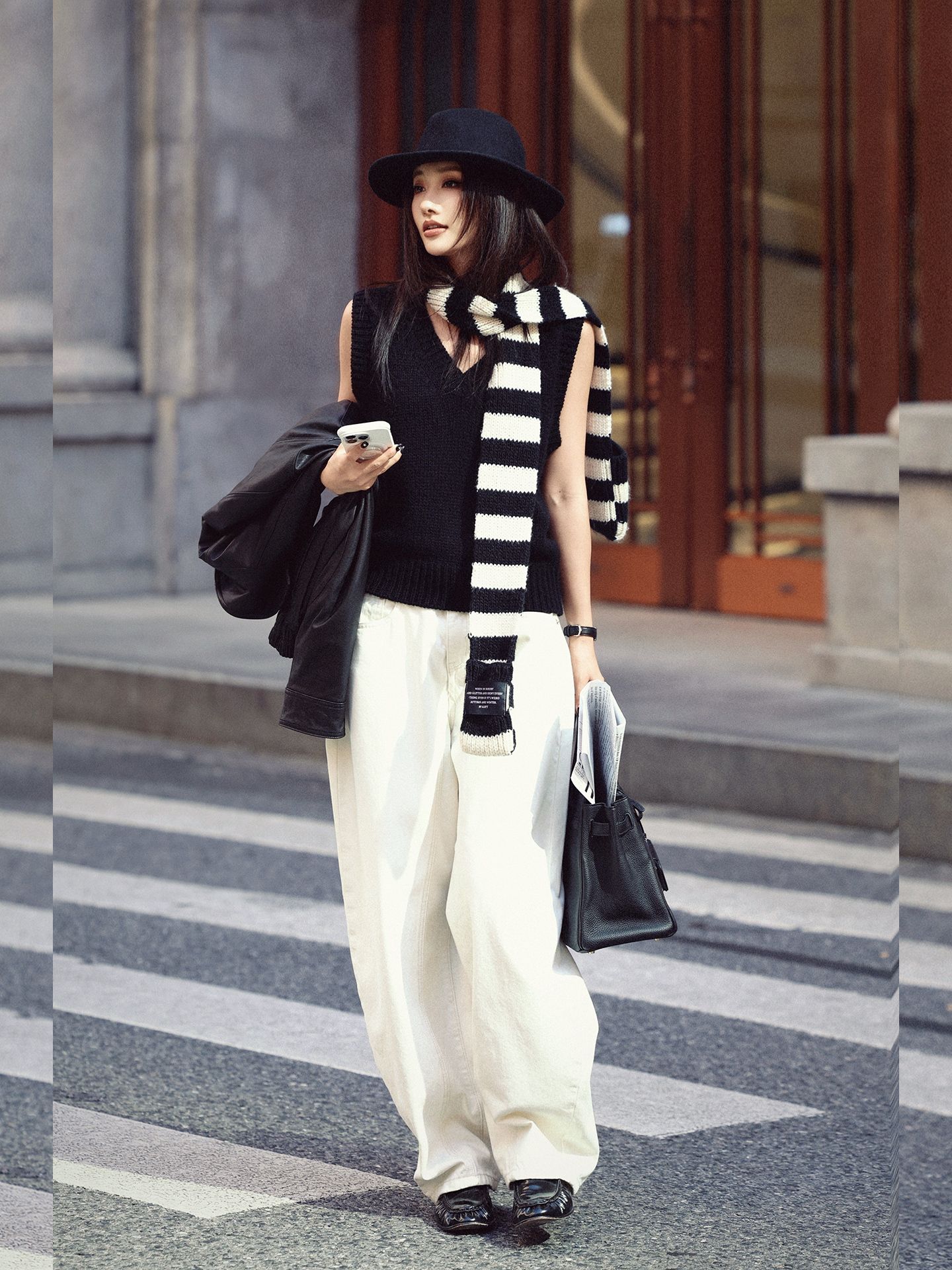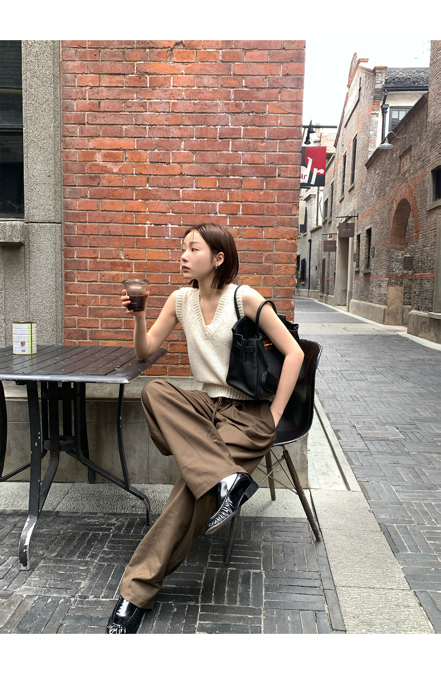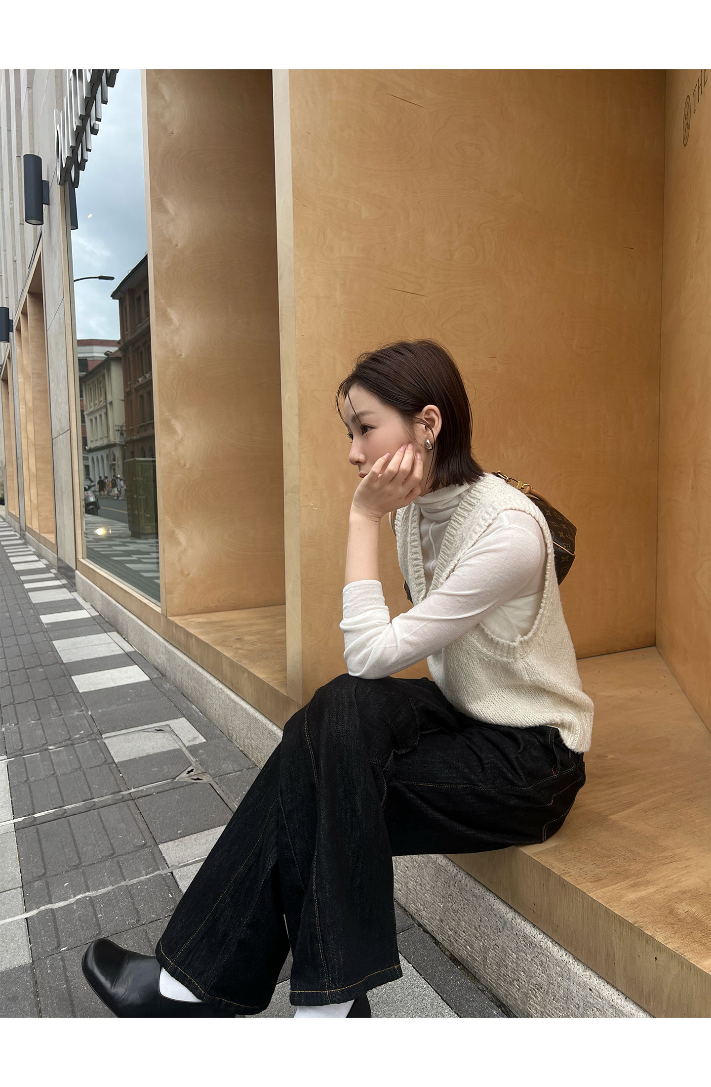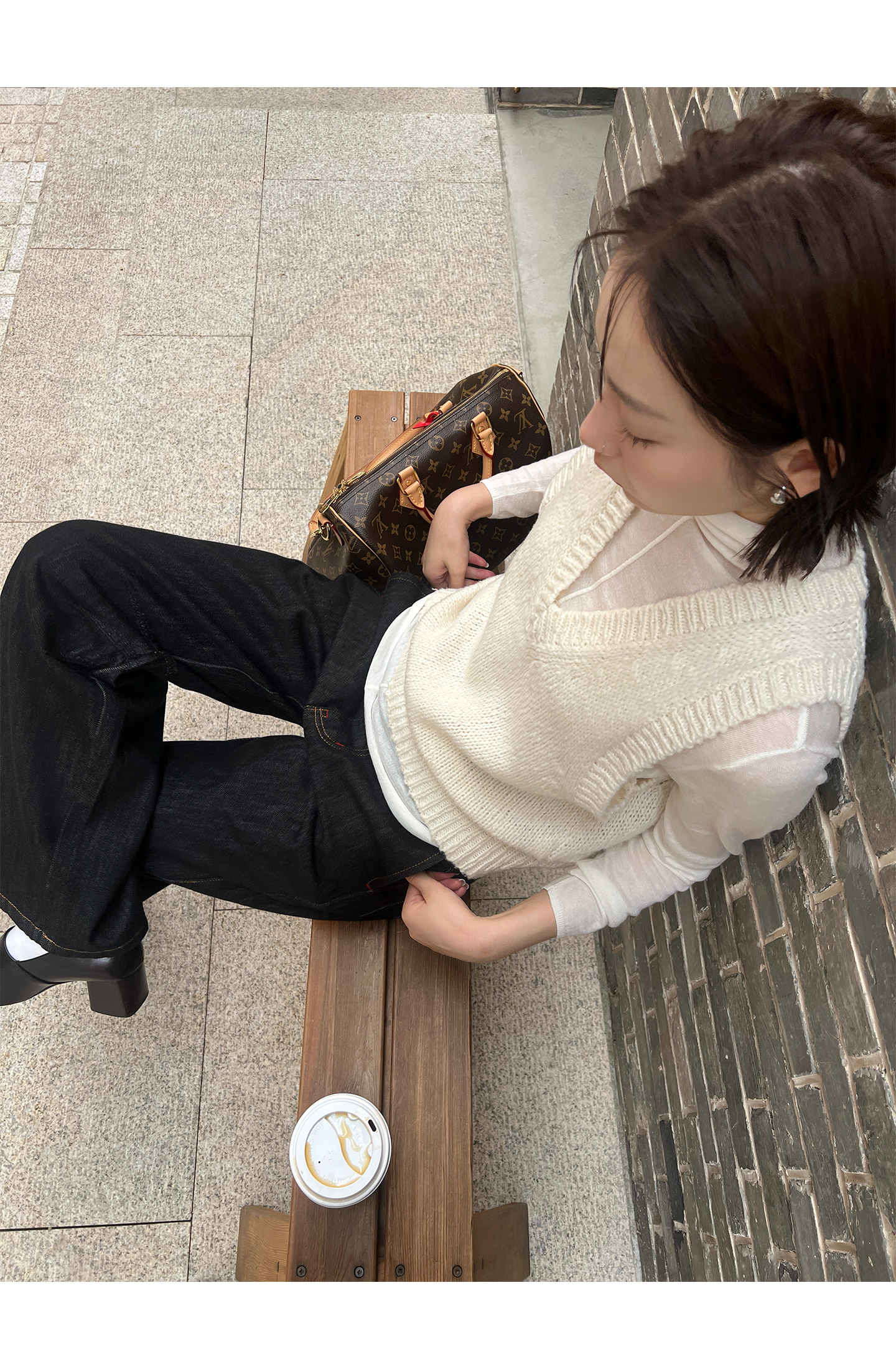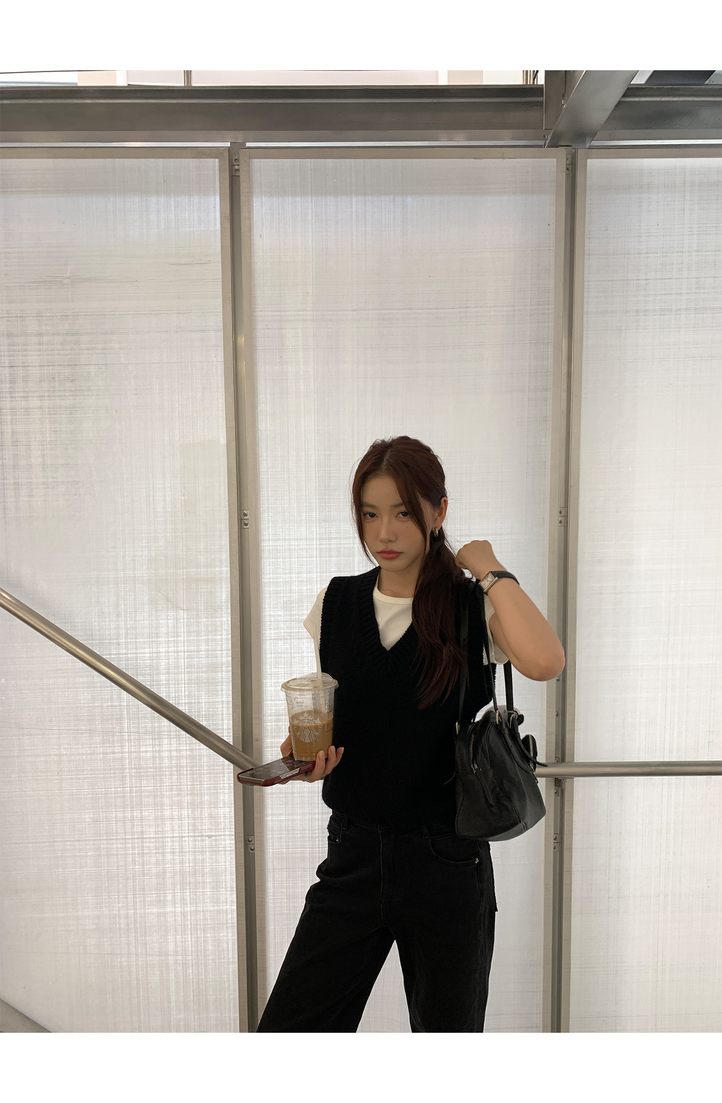 layered V-neck knitted vest with undershirt