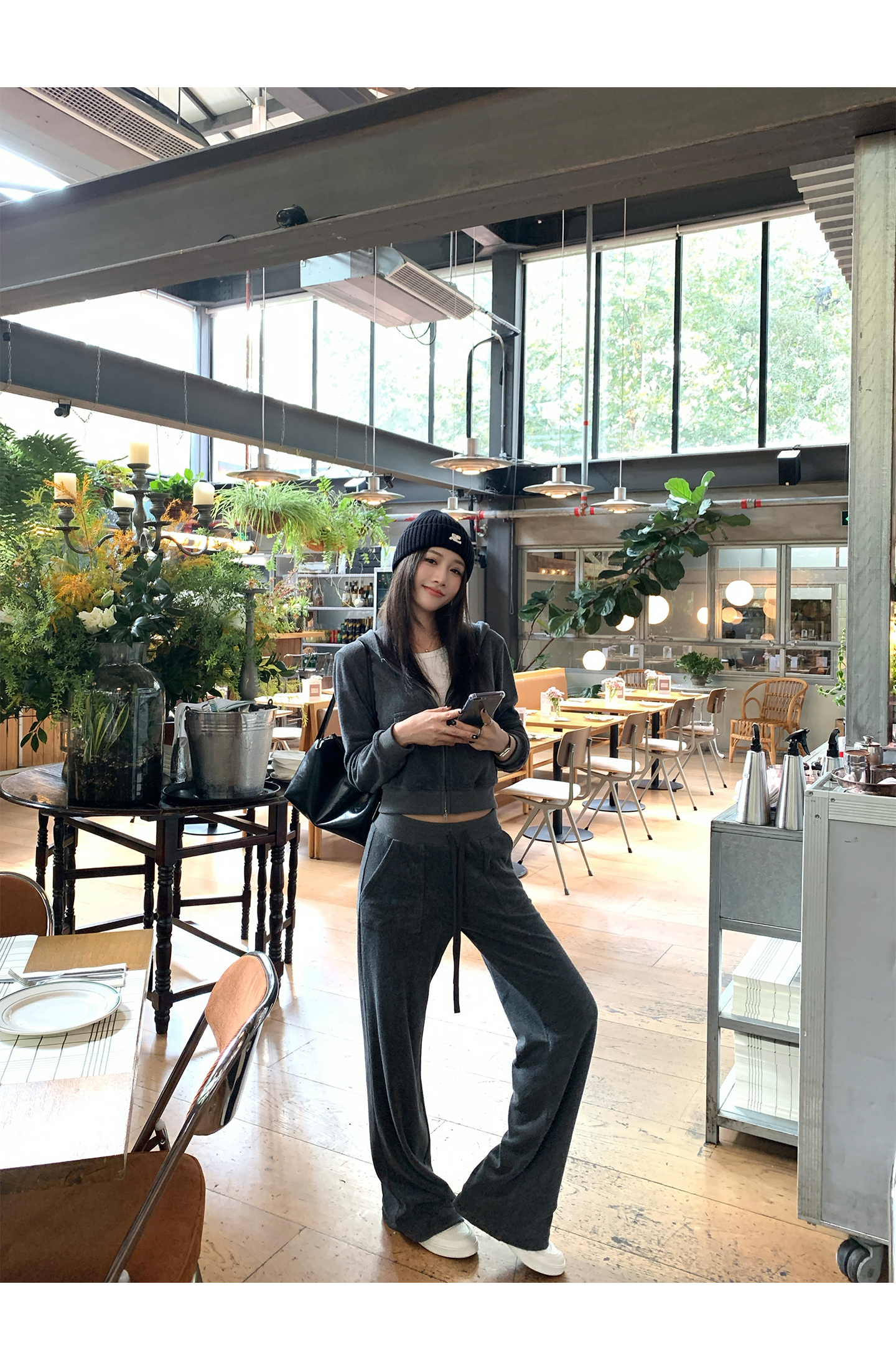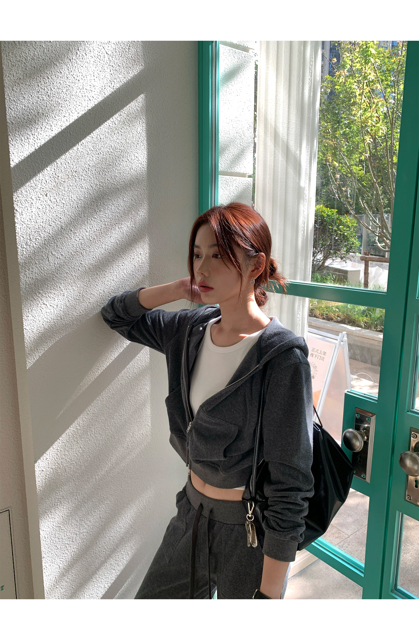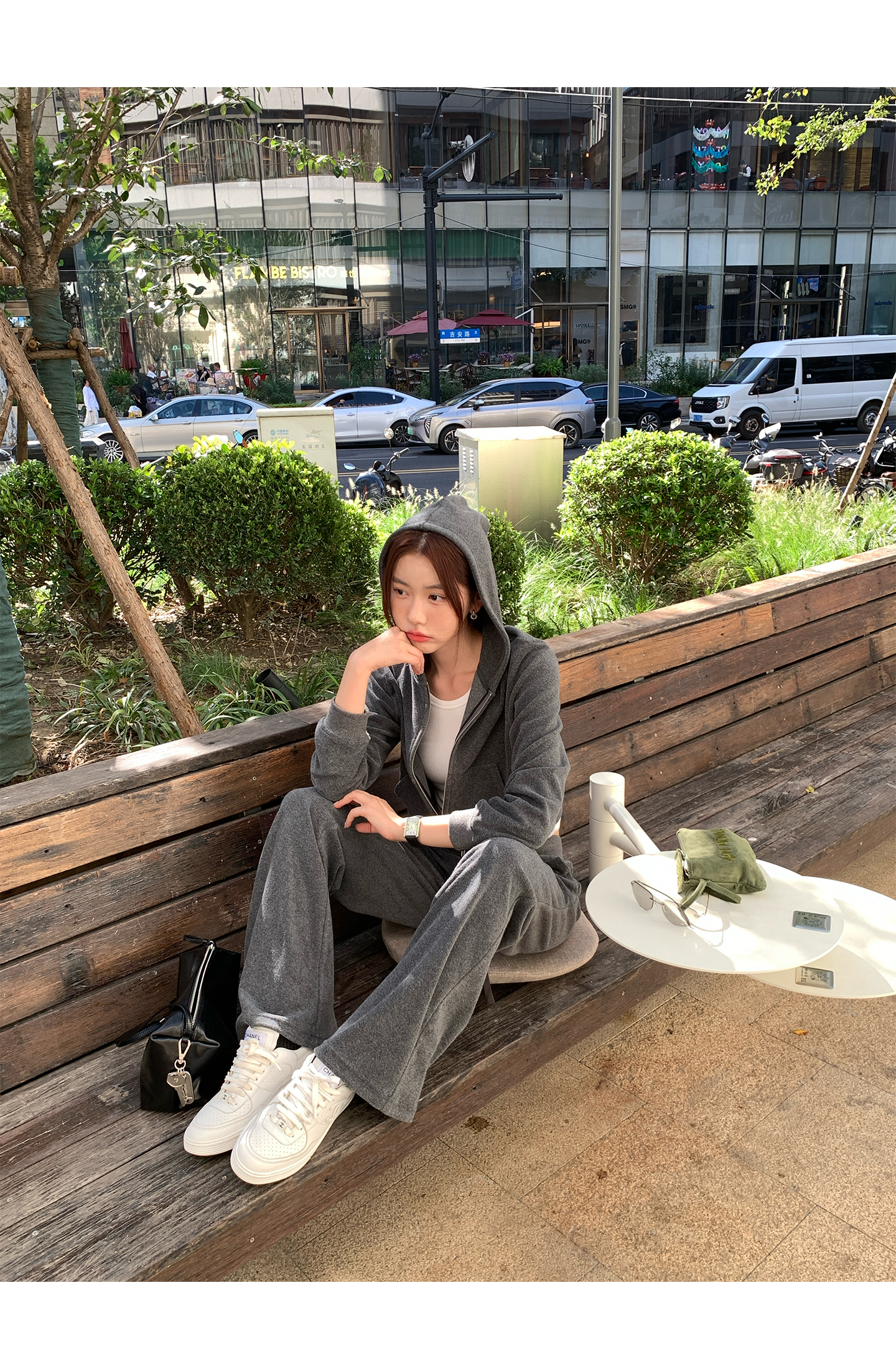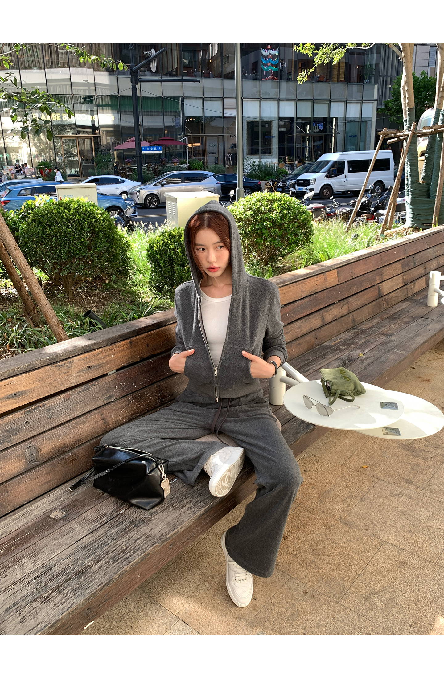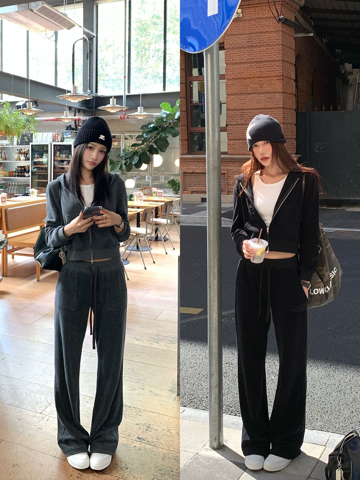 All-Cotton Hooded Zipper Sweatshirt / Casual Pants set
