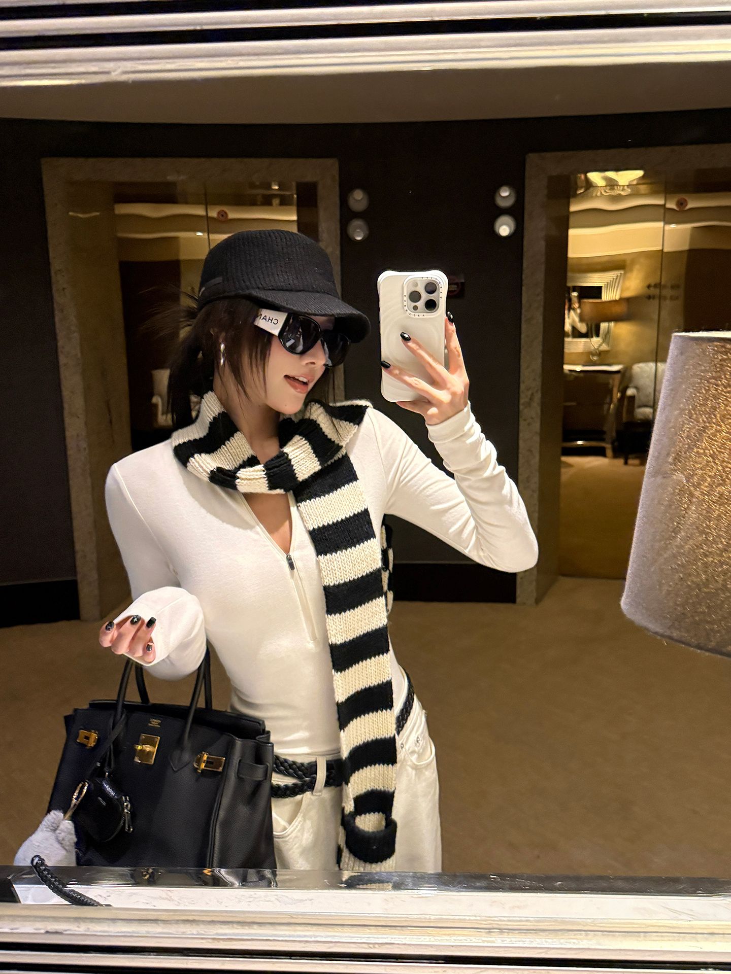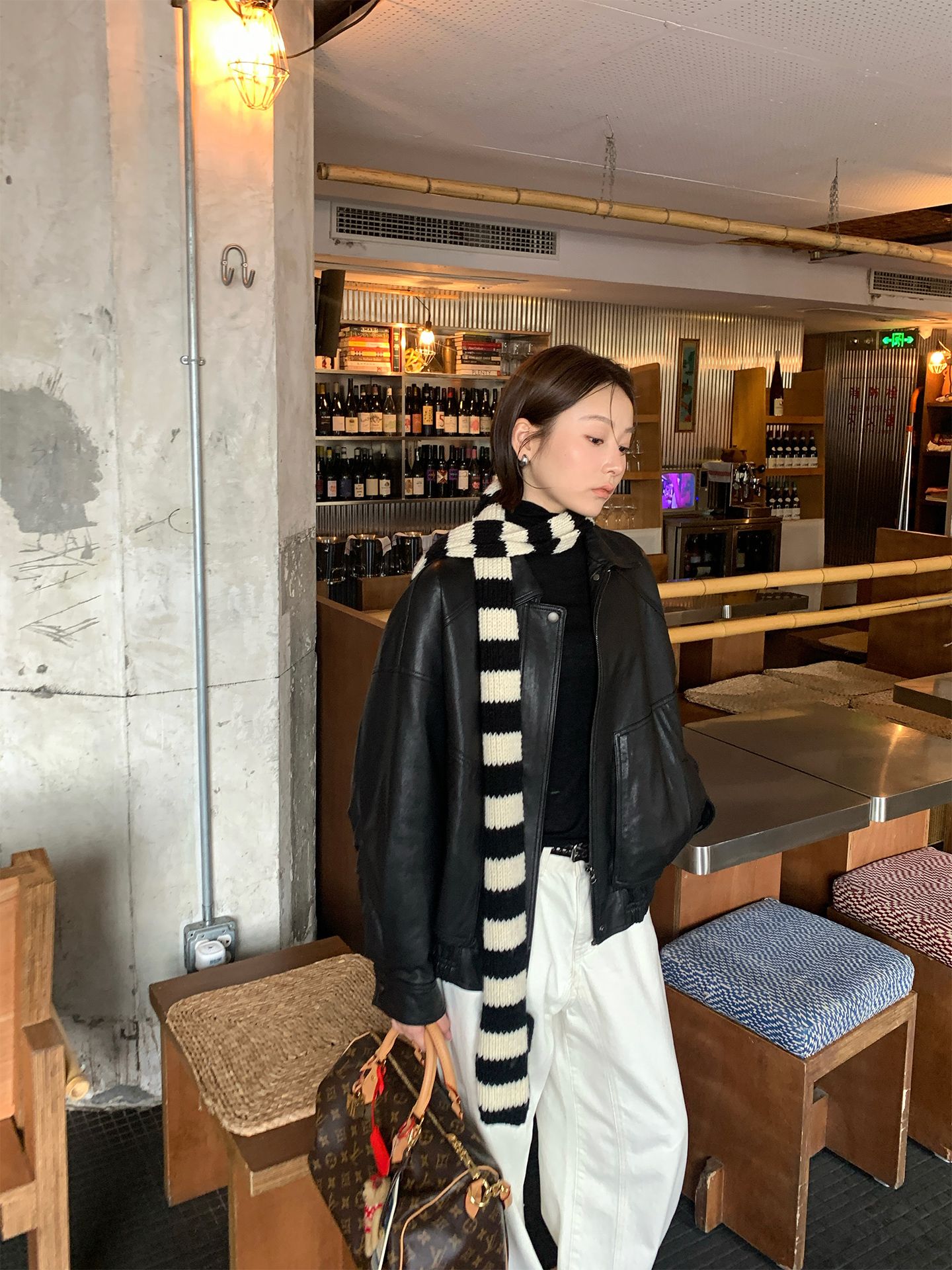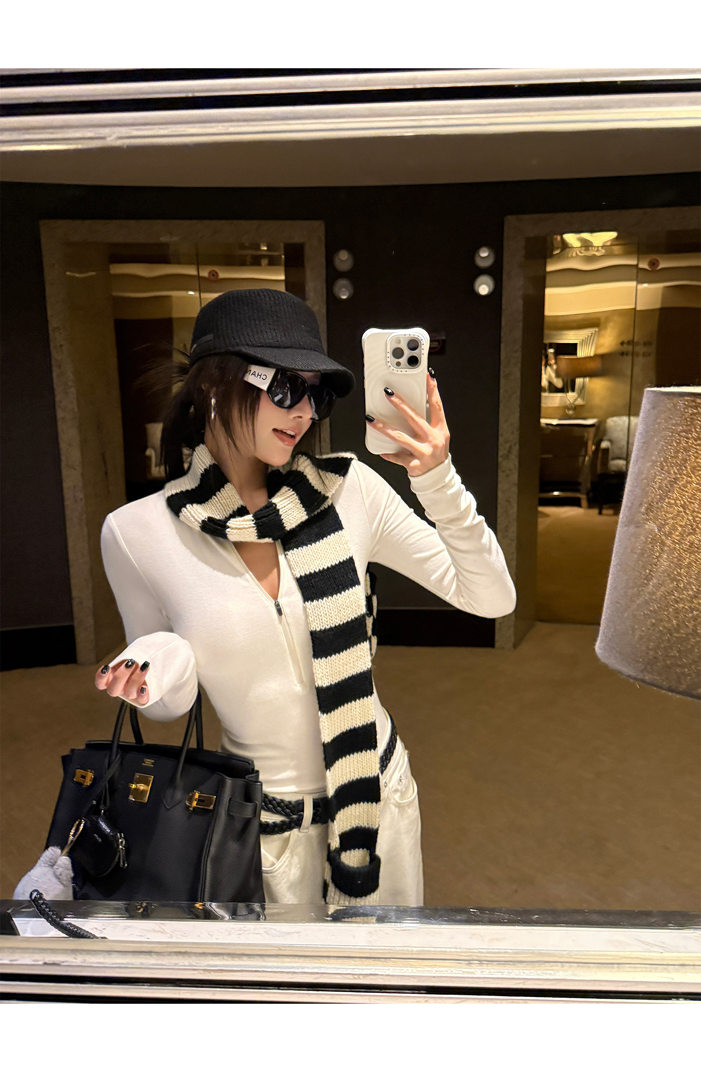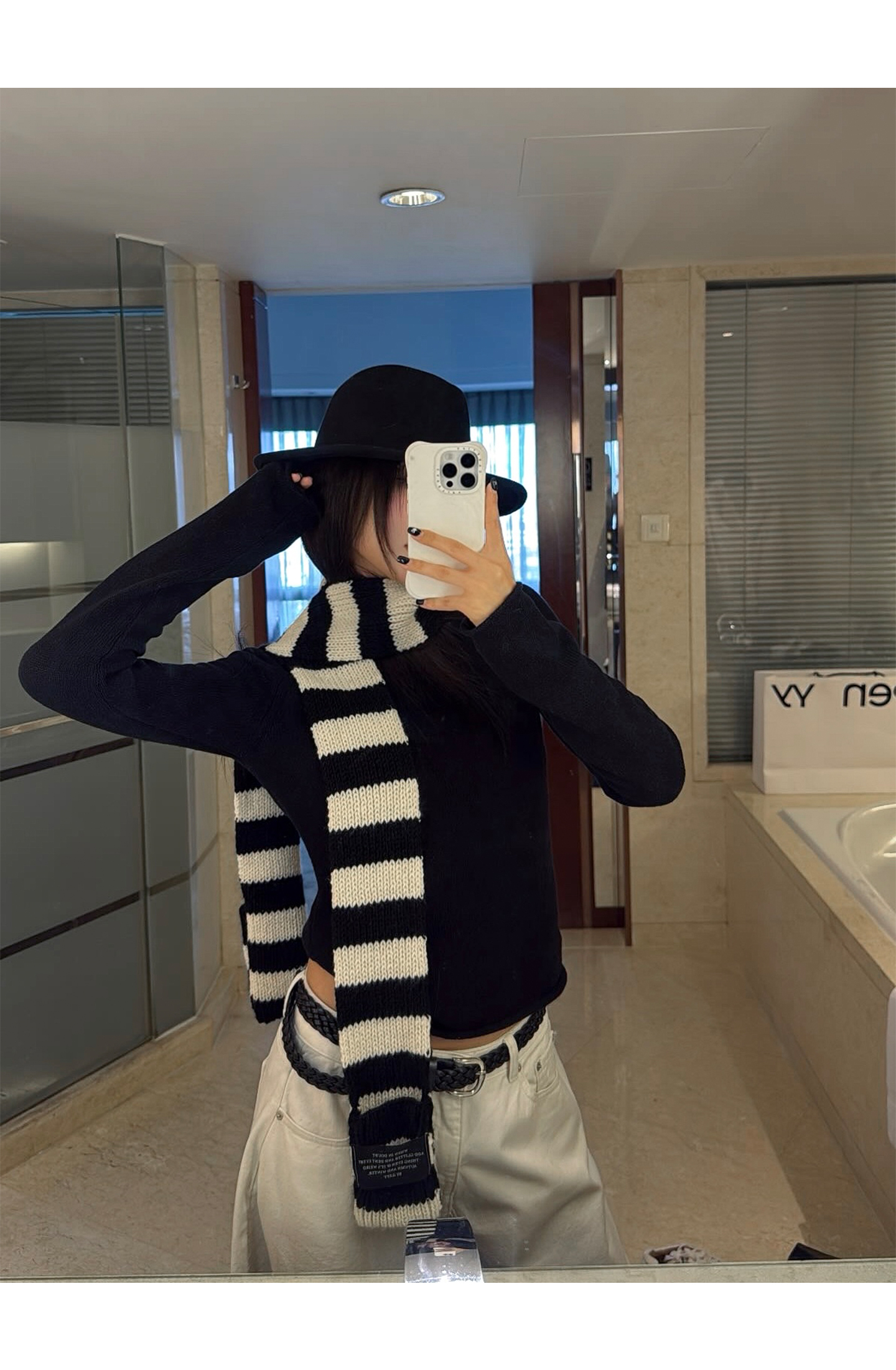black and white striped scarf
