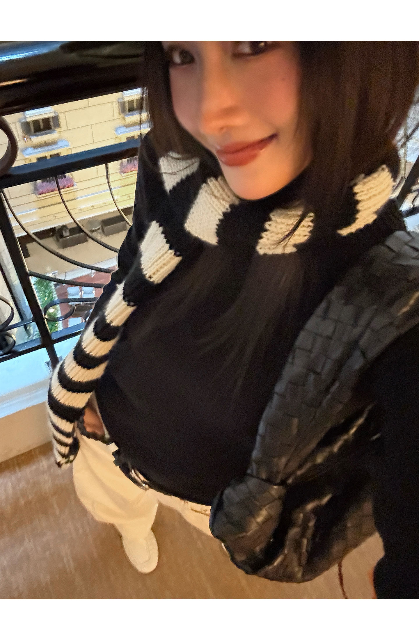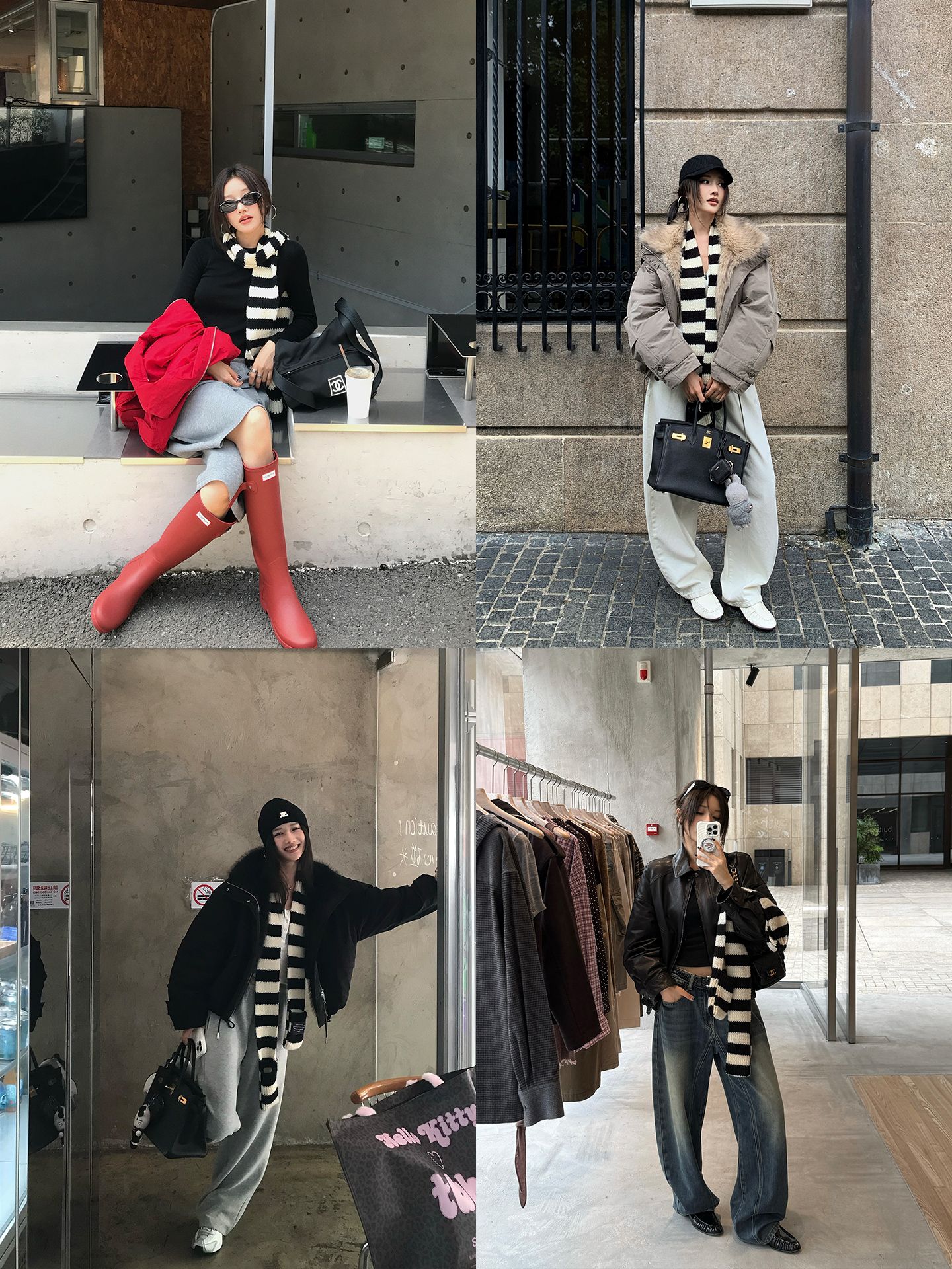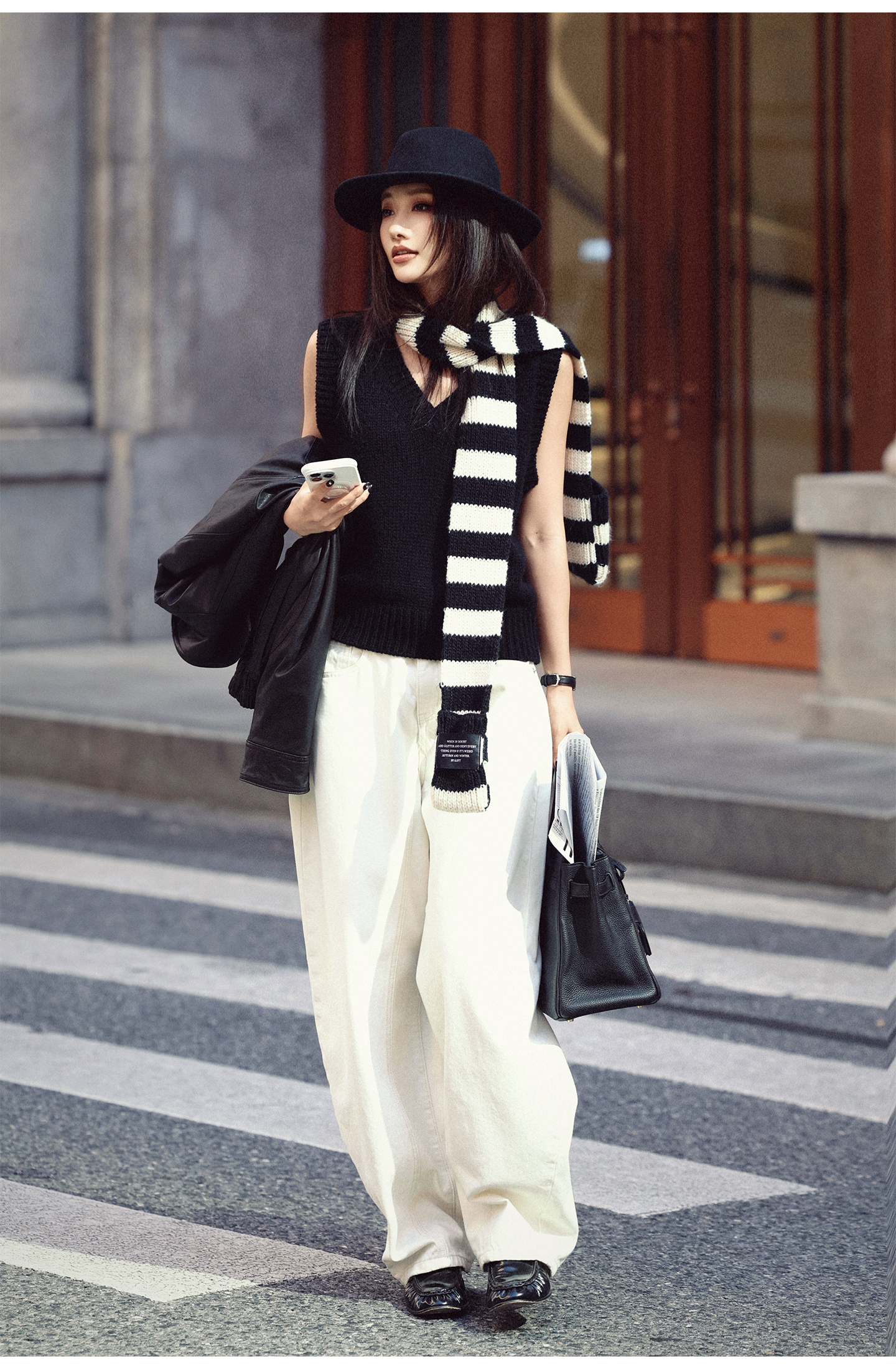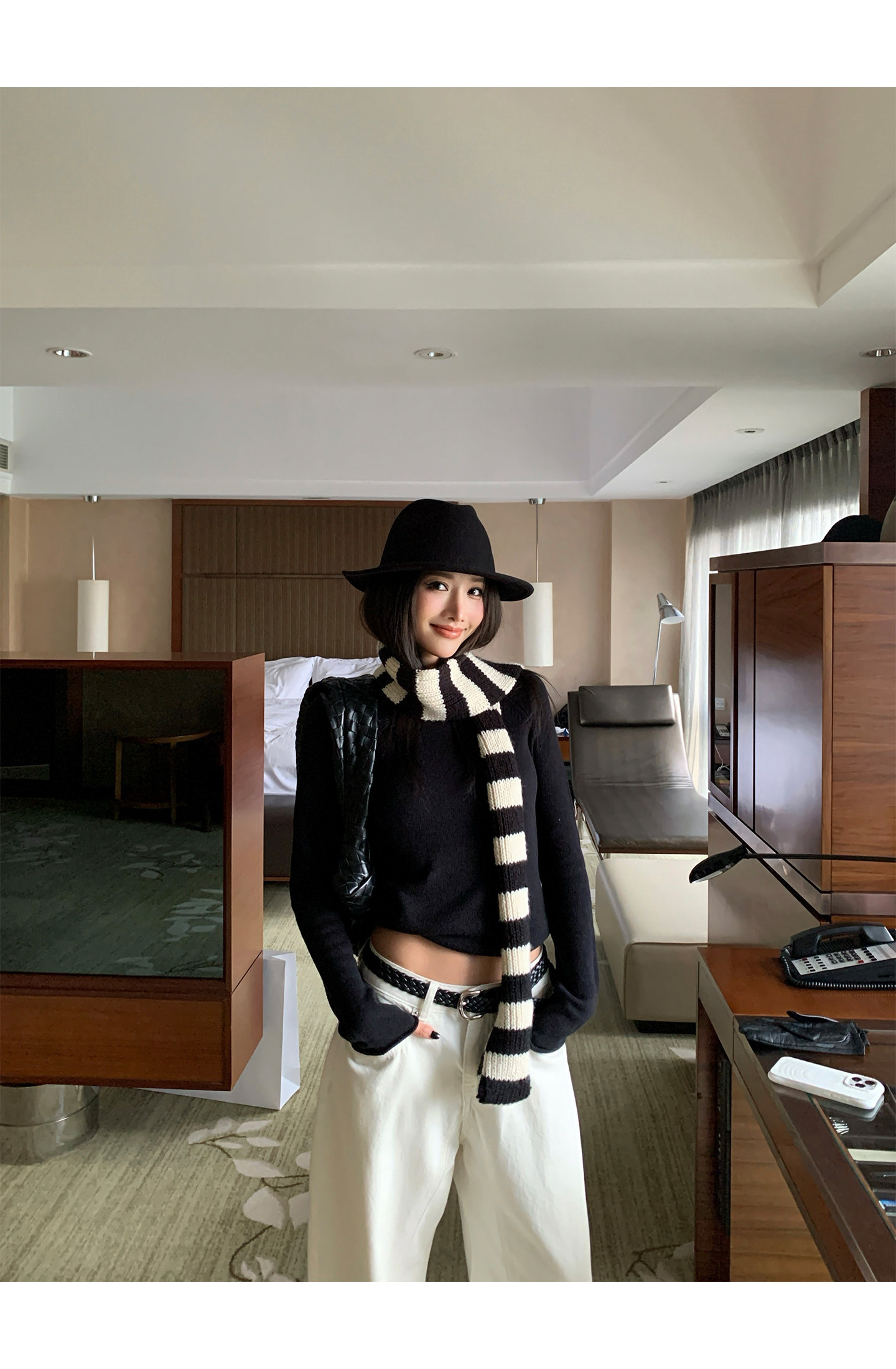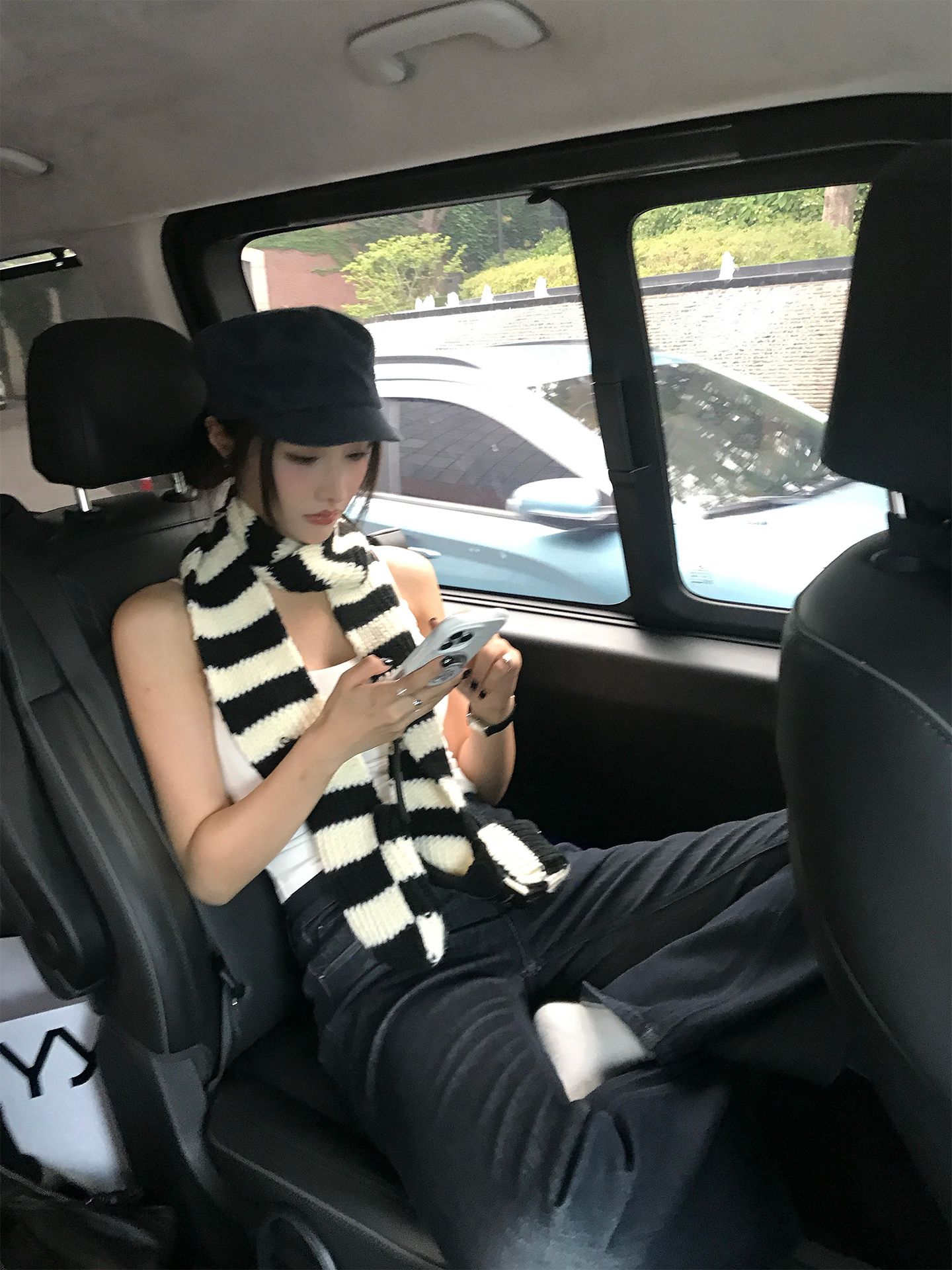 black and white striped scarf