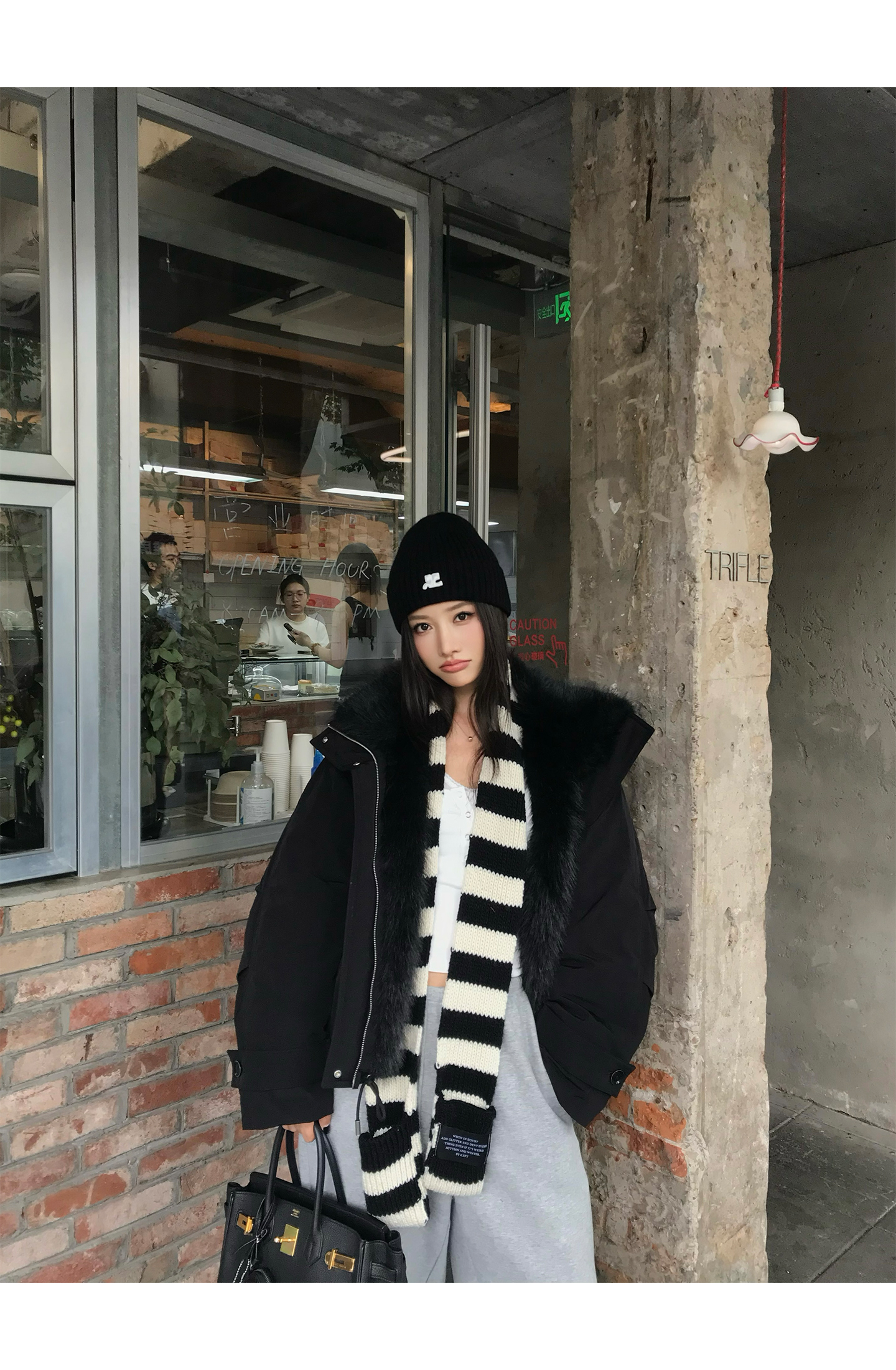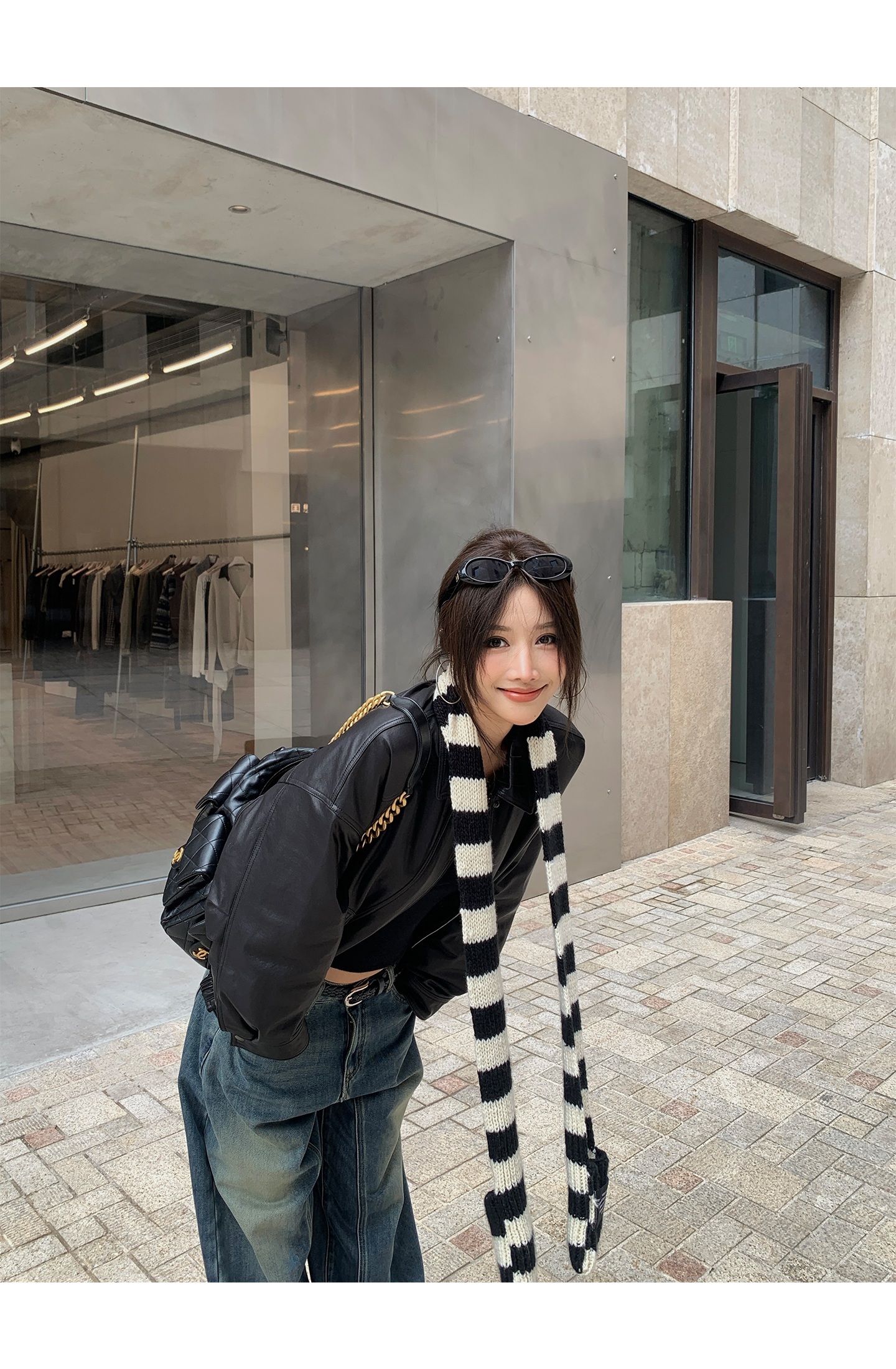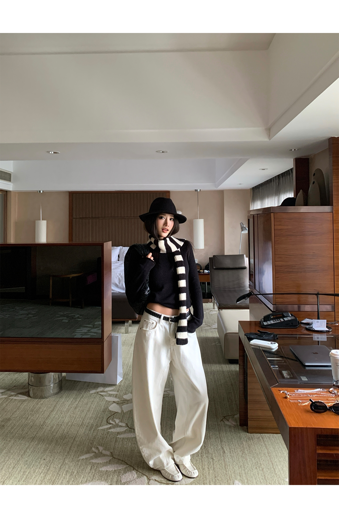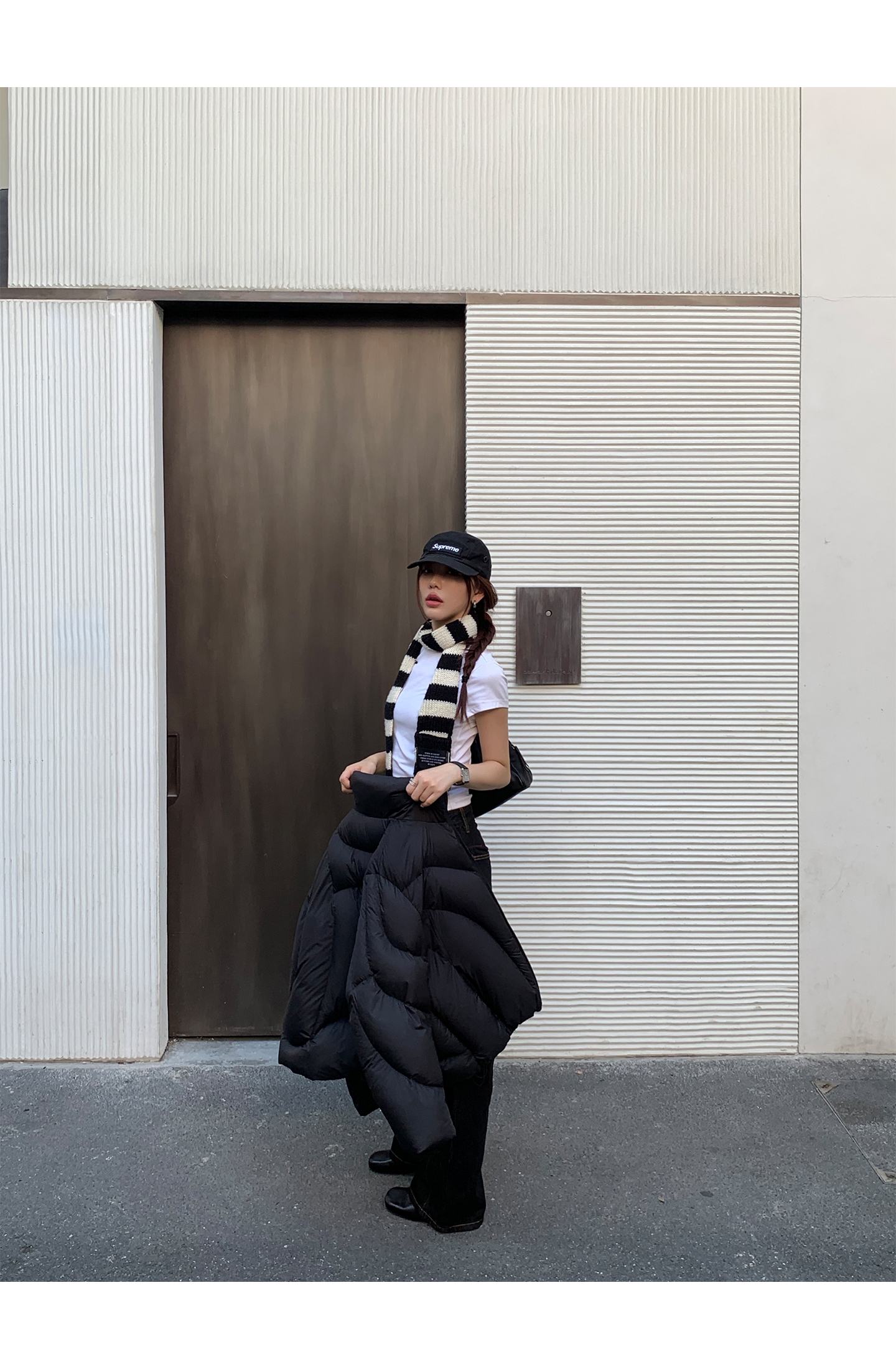 black and white striped scarf