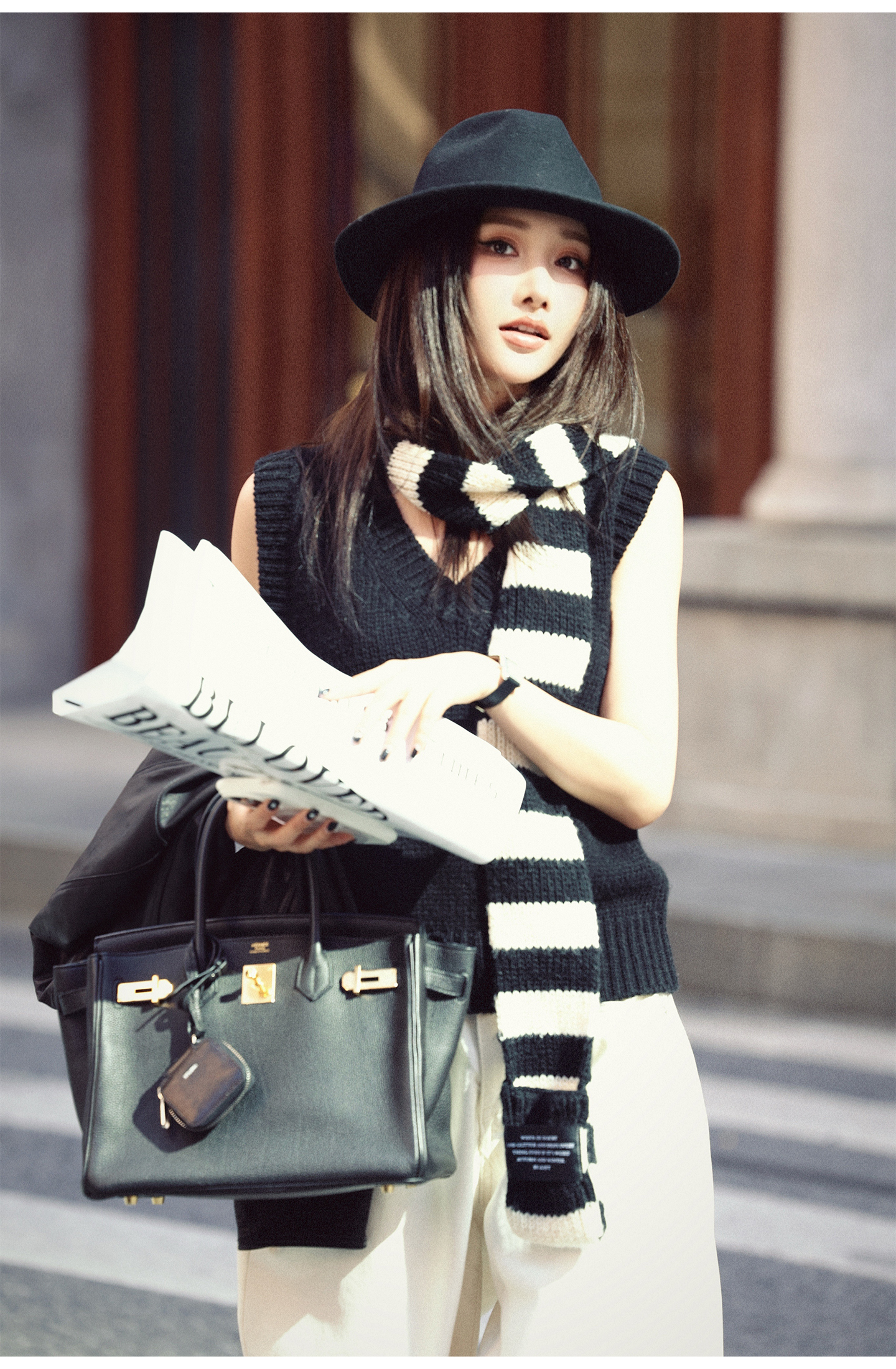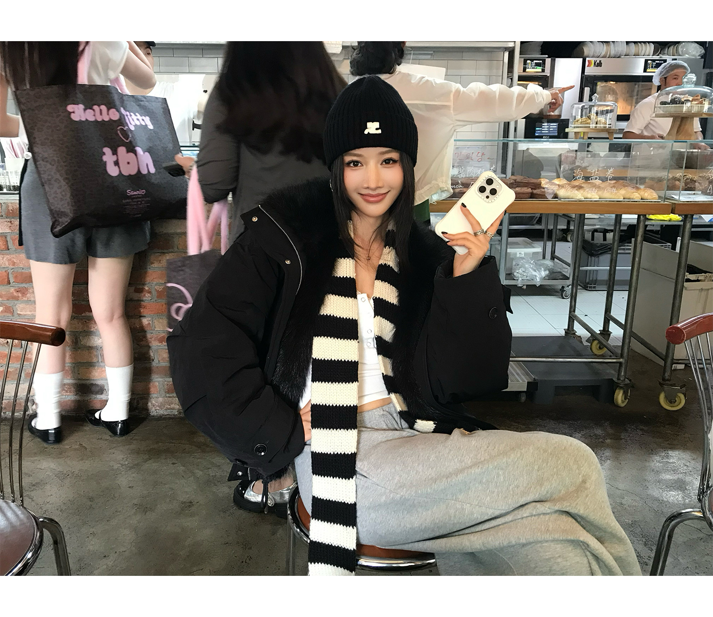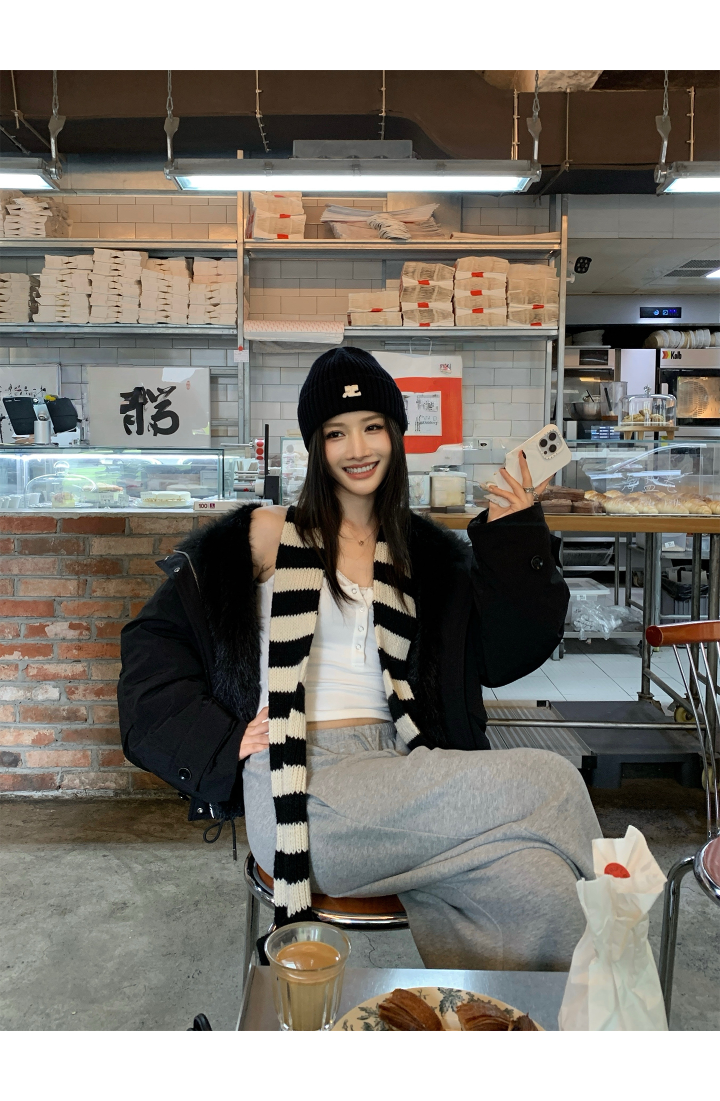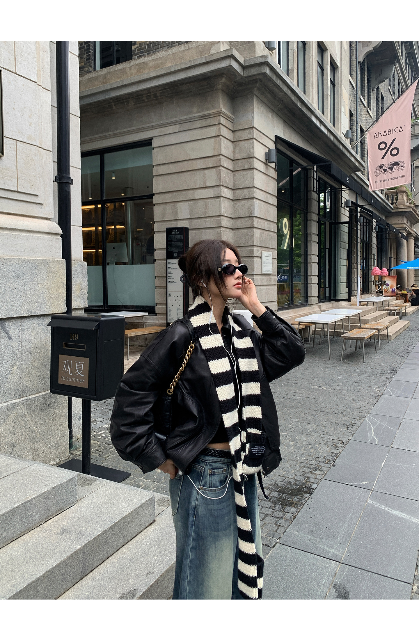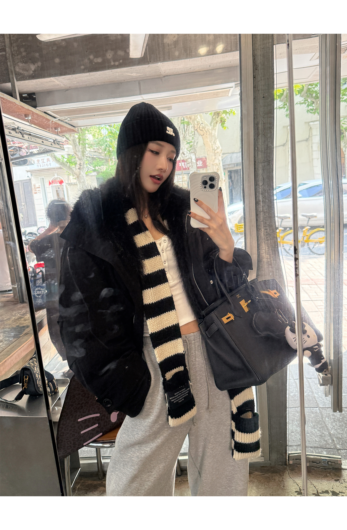 black and white striped scarf