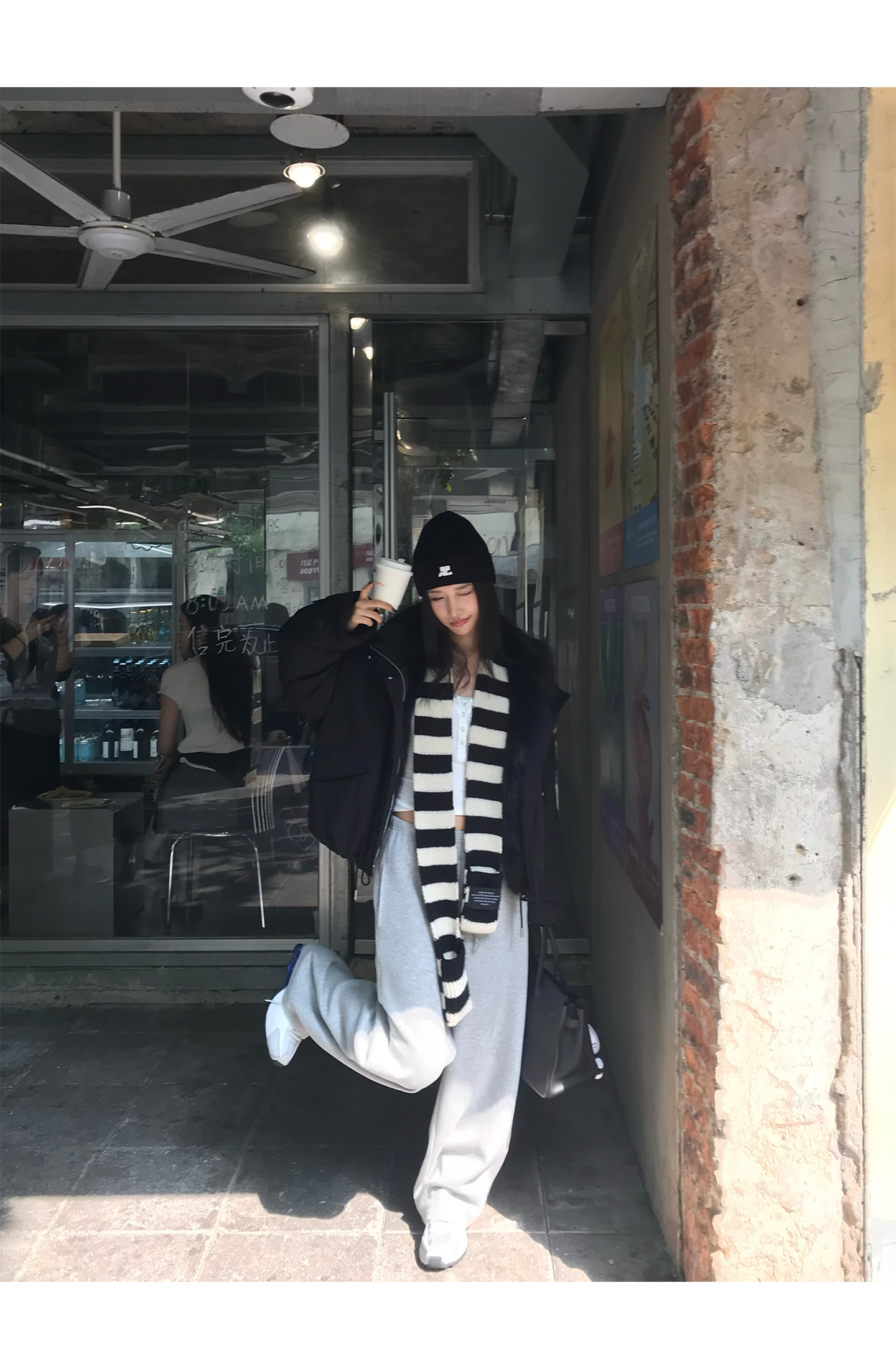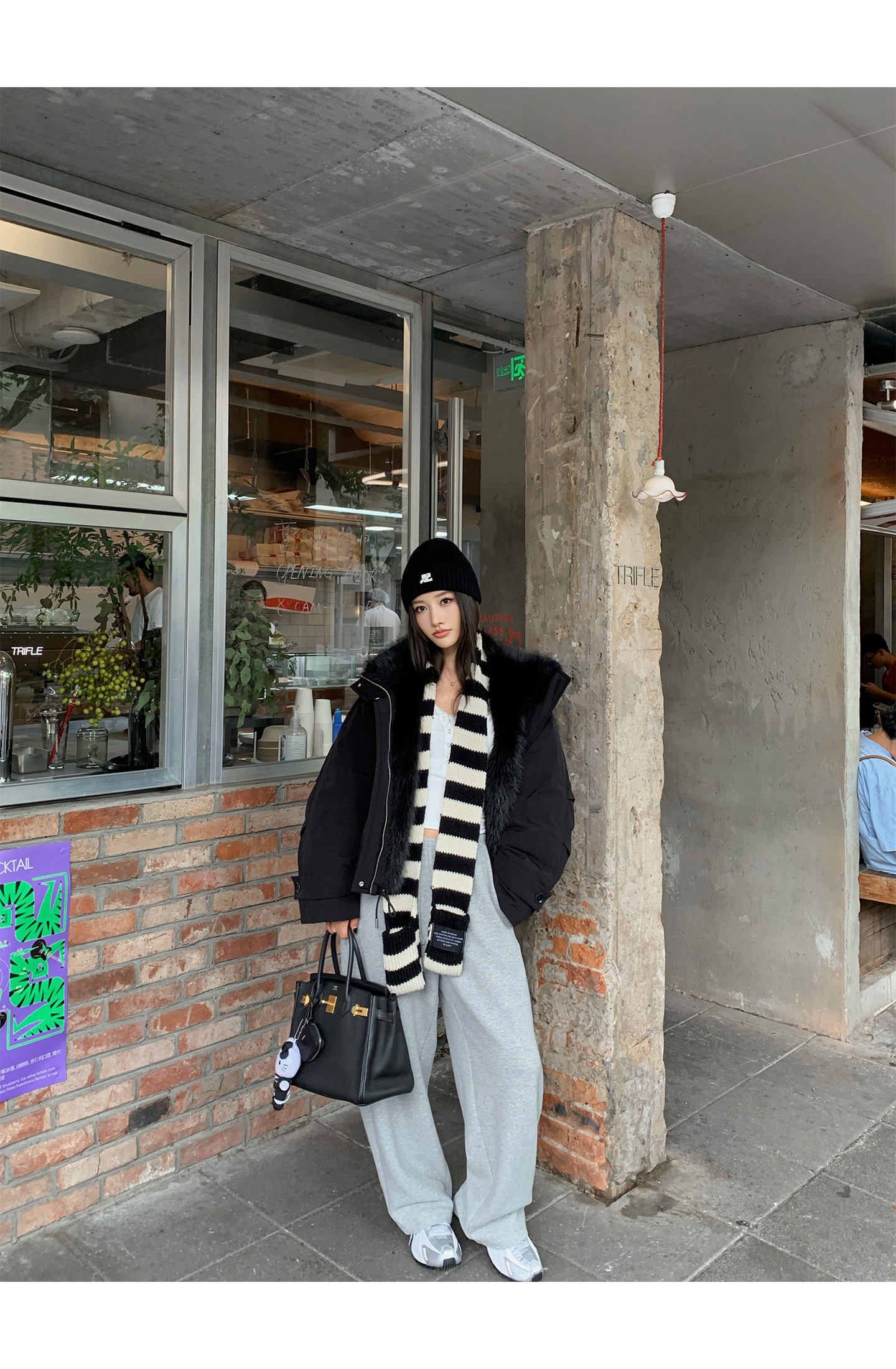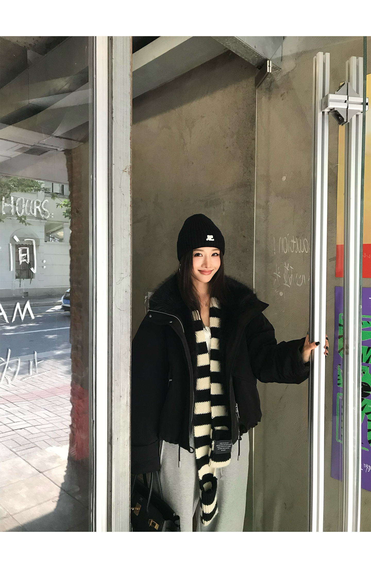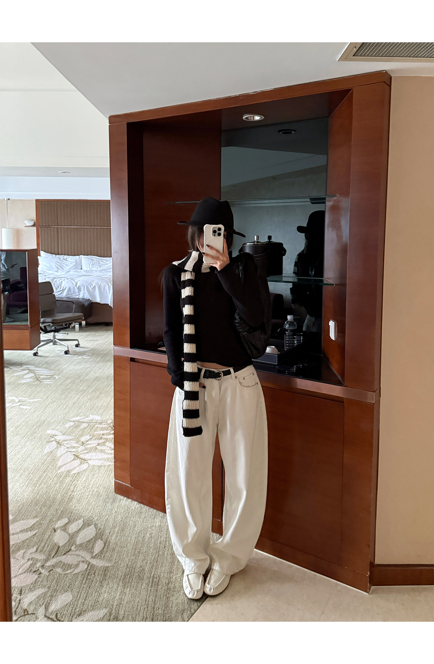 black and white striped scarf