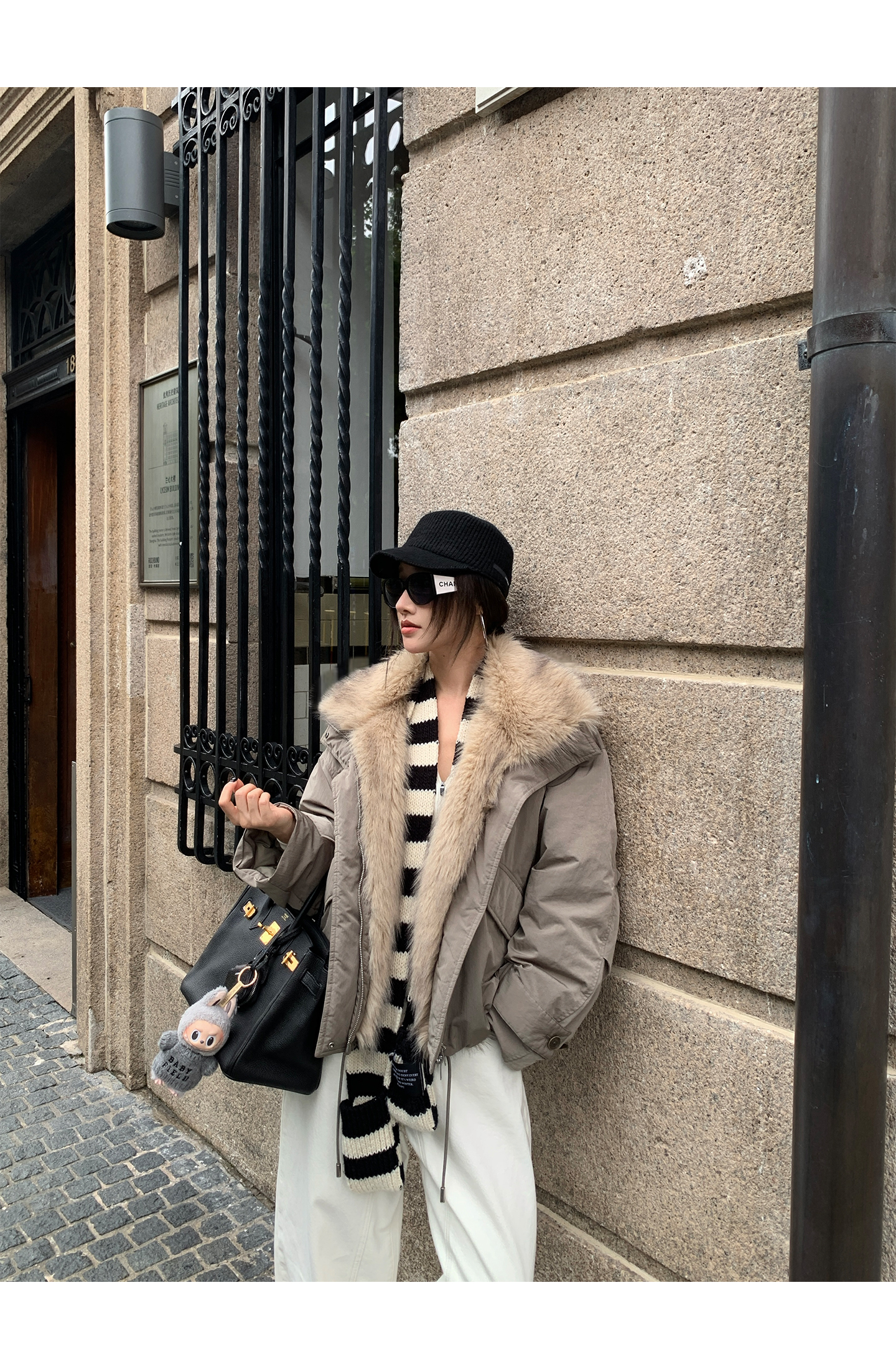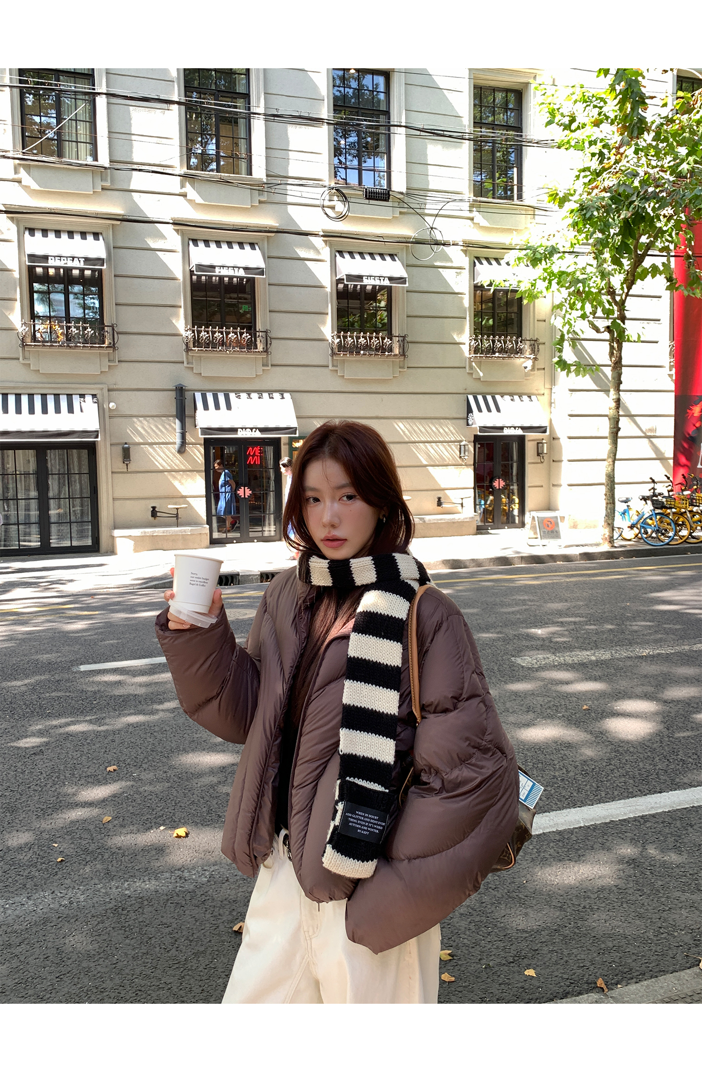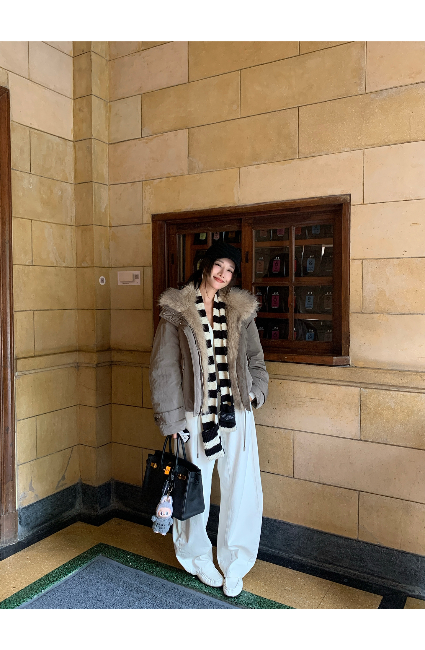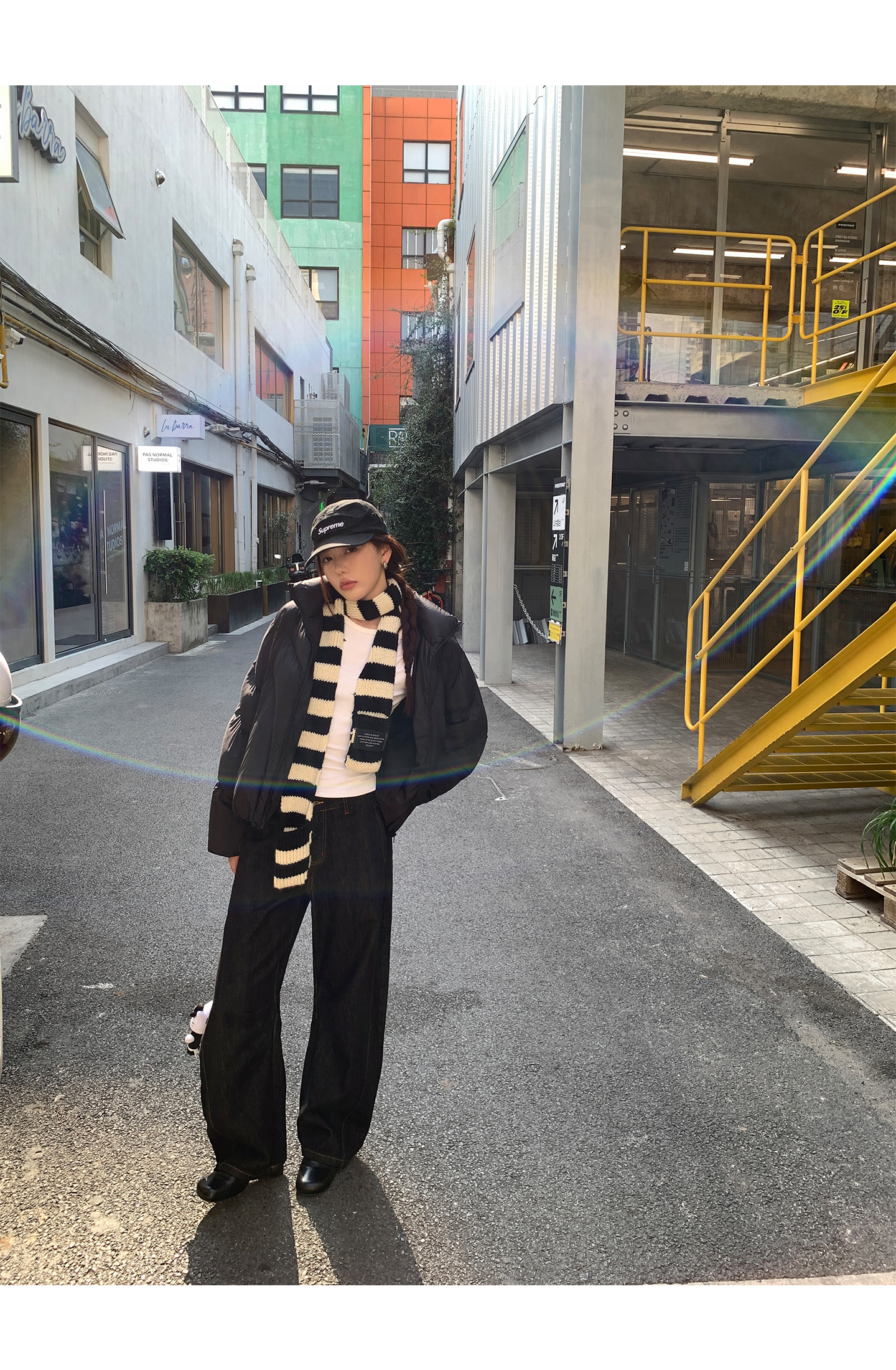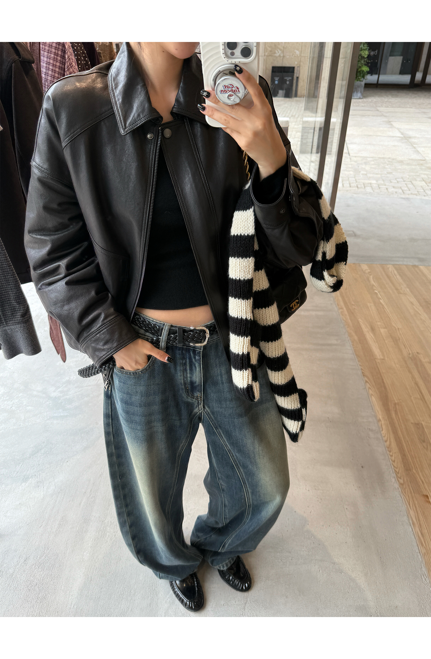 black and white striped scarf