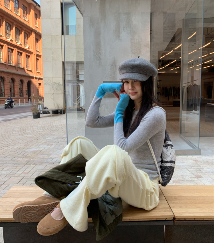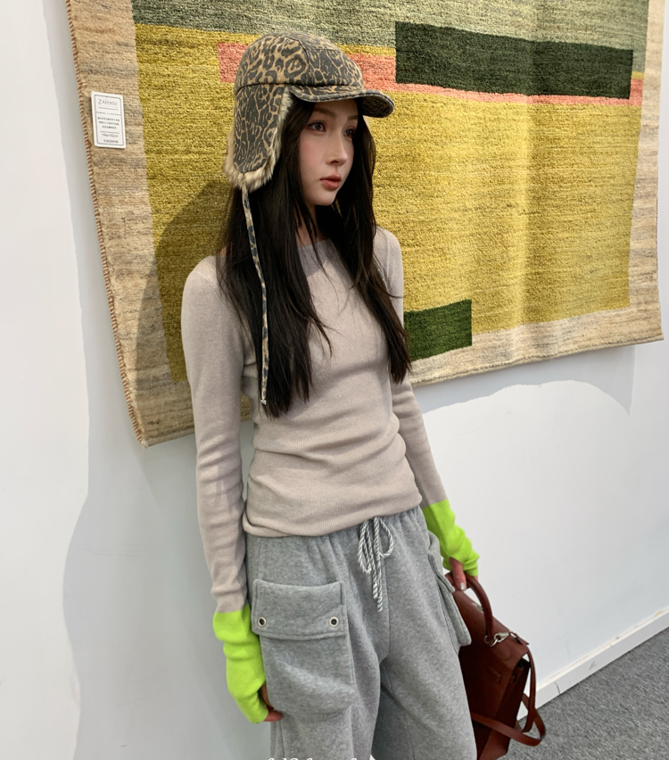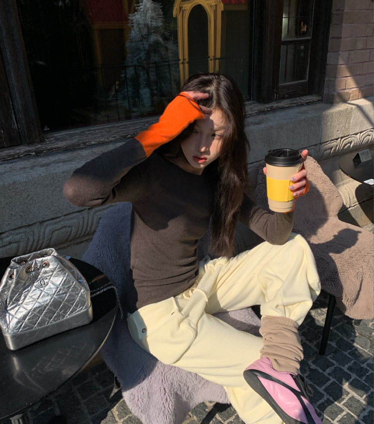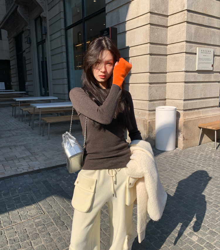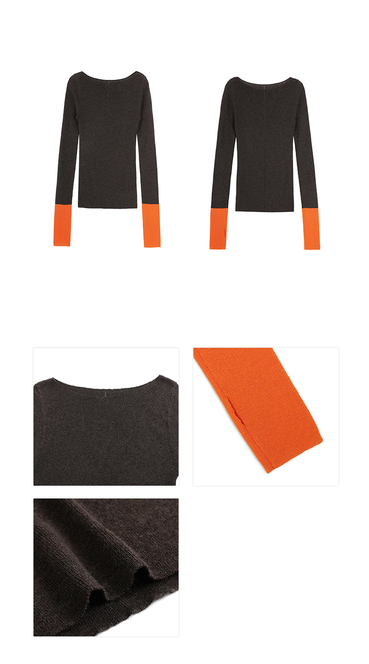 silk-glossed wool round neck matching color fingerprint knitted top