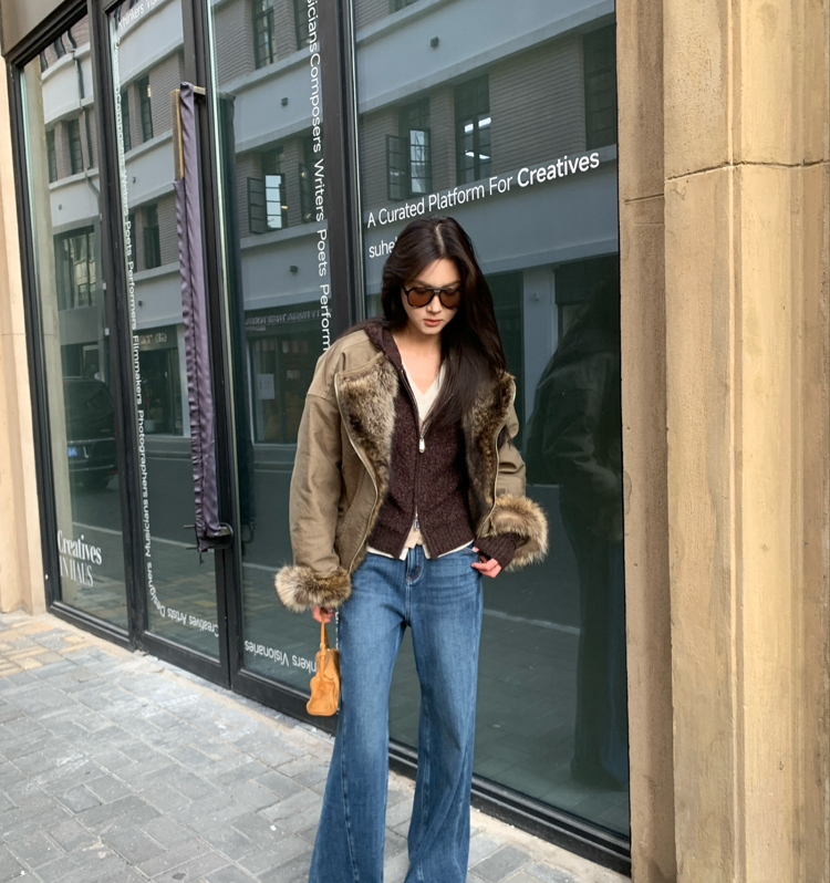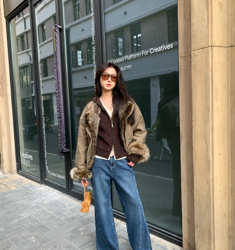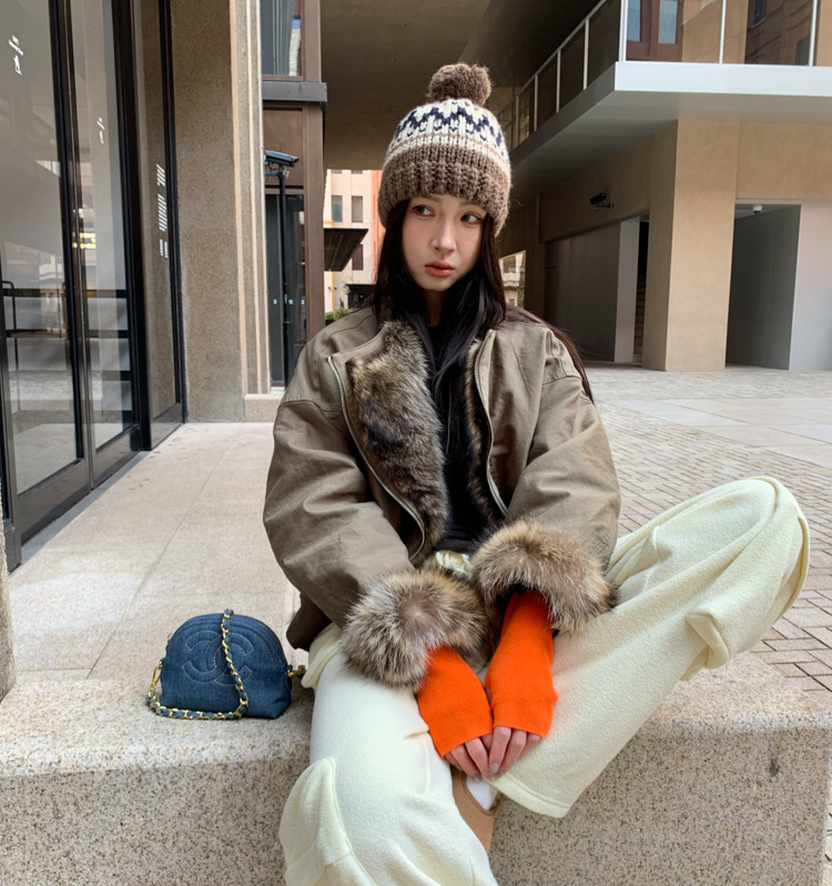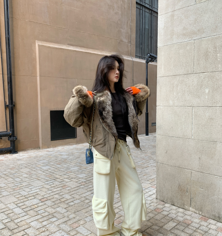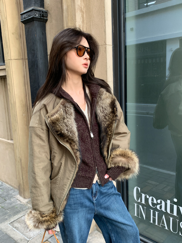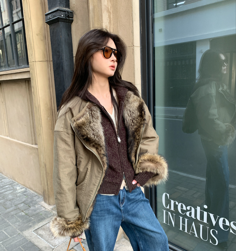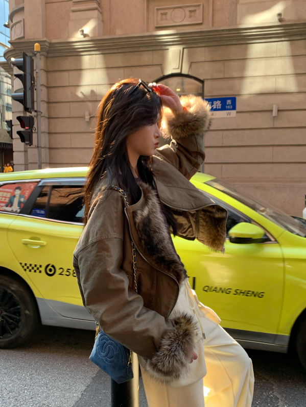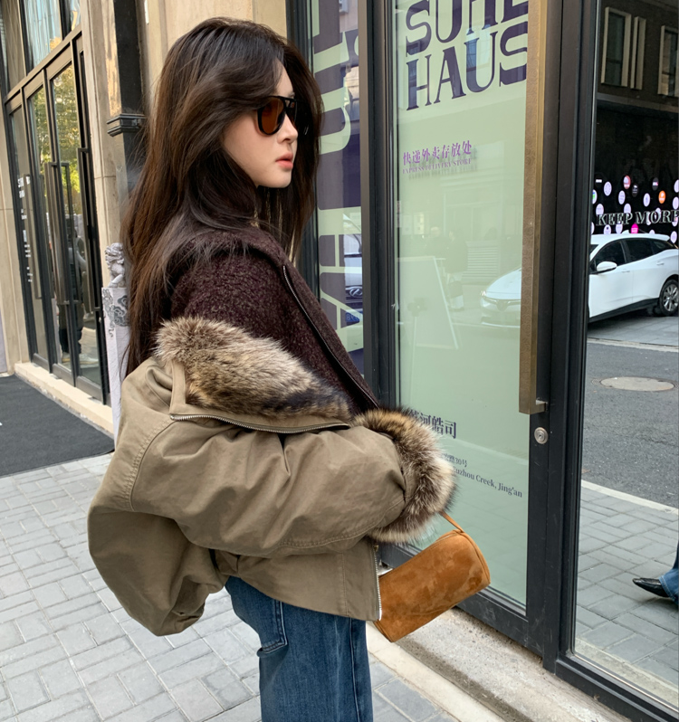 detachable fur collar fluff short style jacket