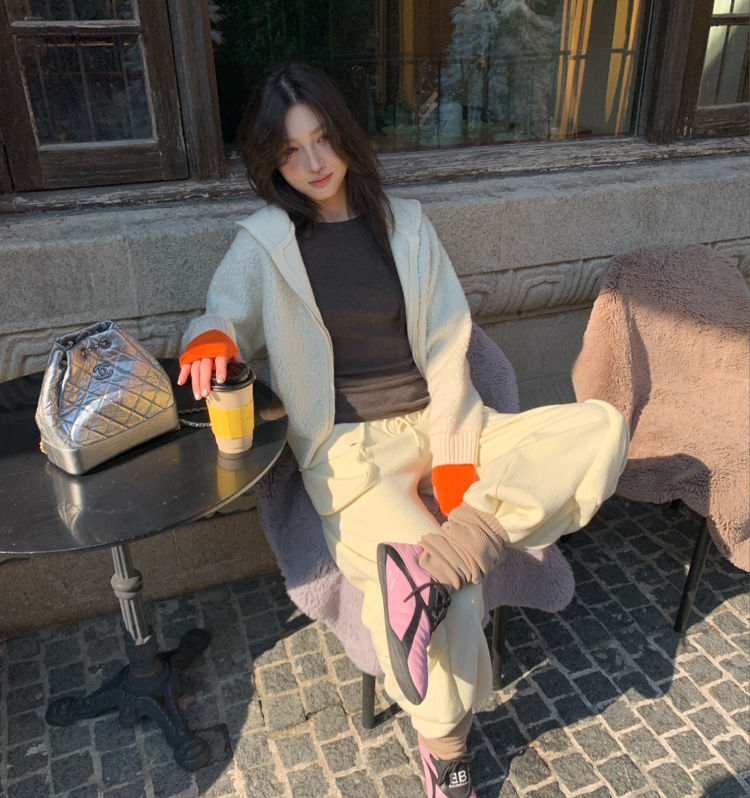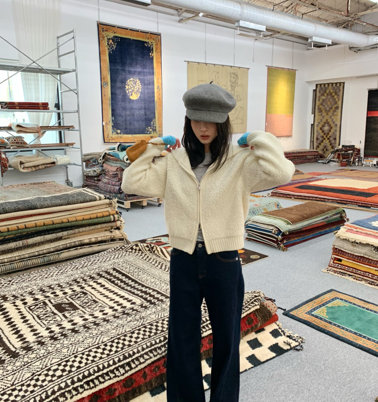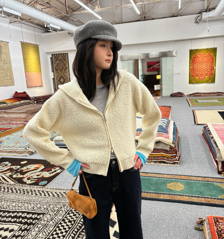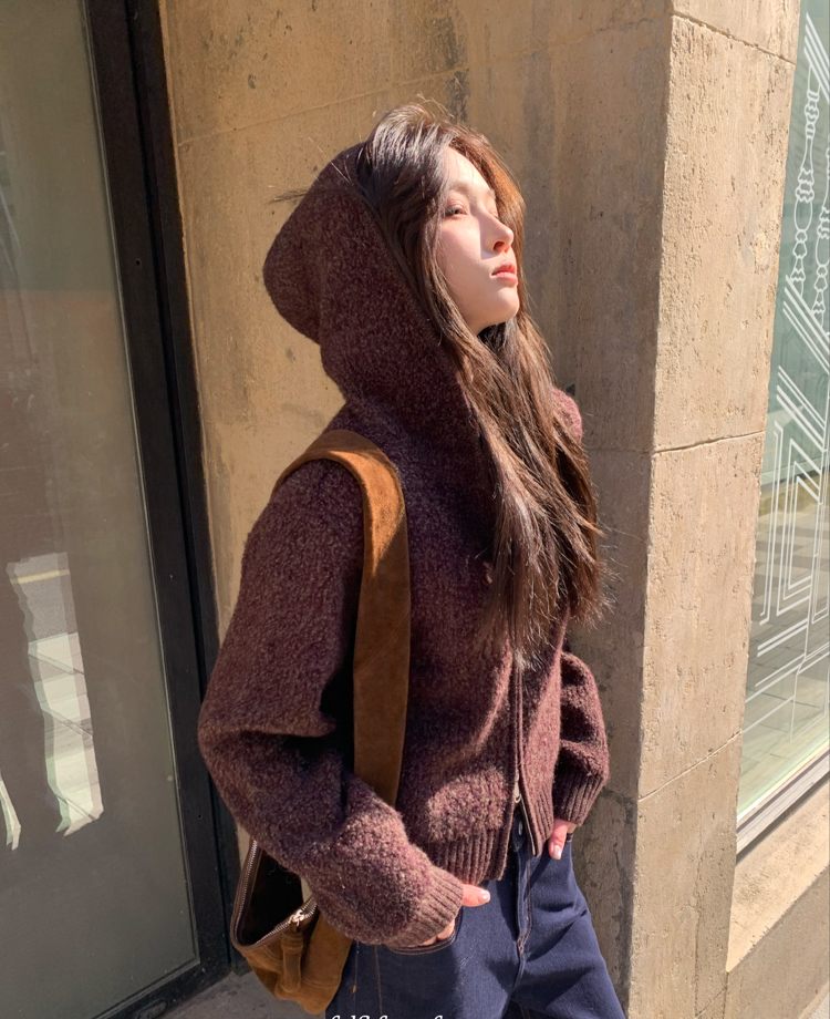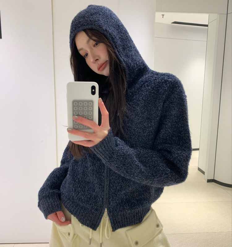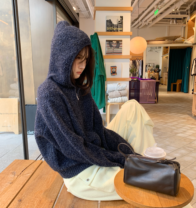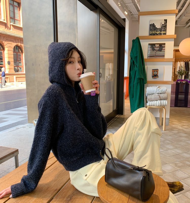 wool double thick hooded lazy knitted cardigan jacket