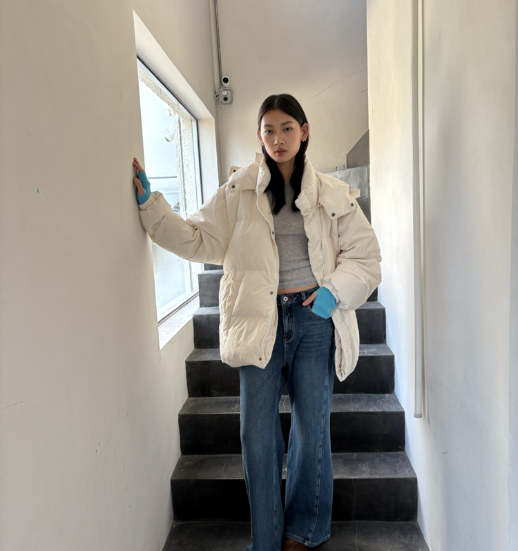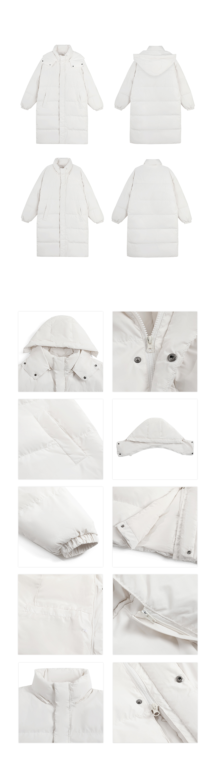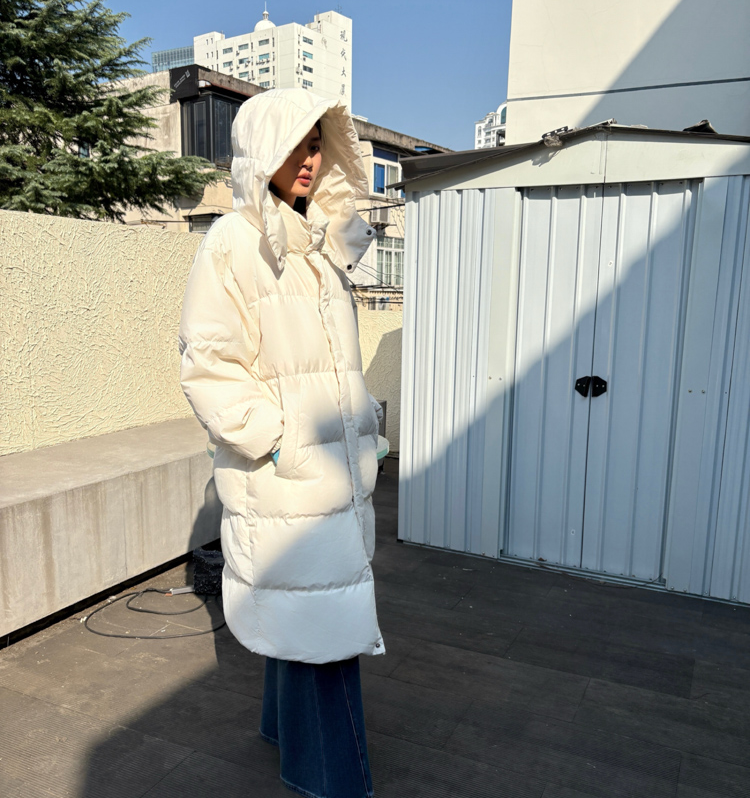 short and long white duck down large quilt down jacket