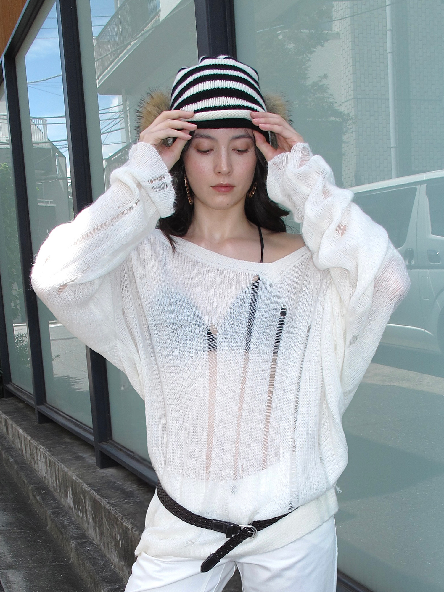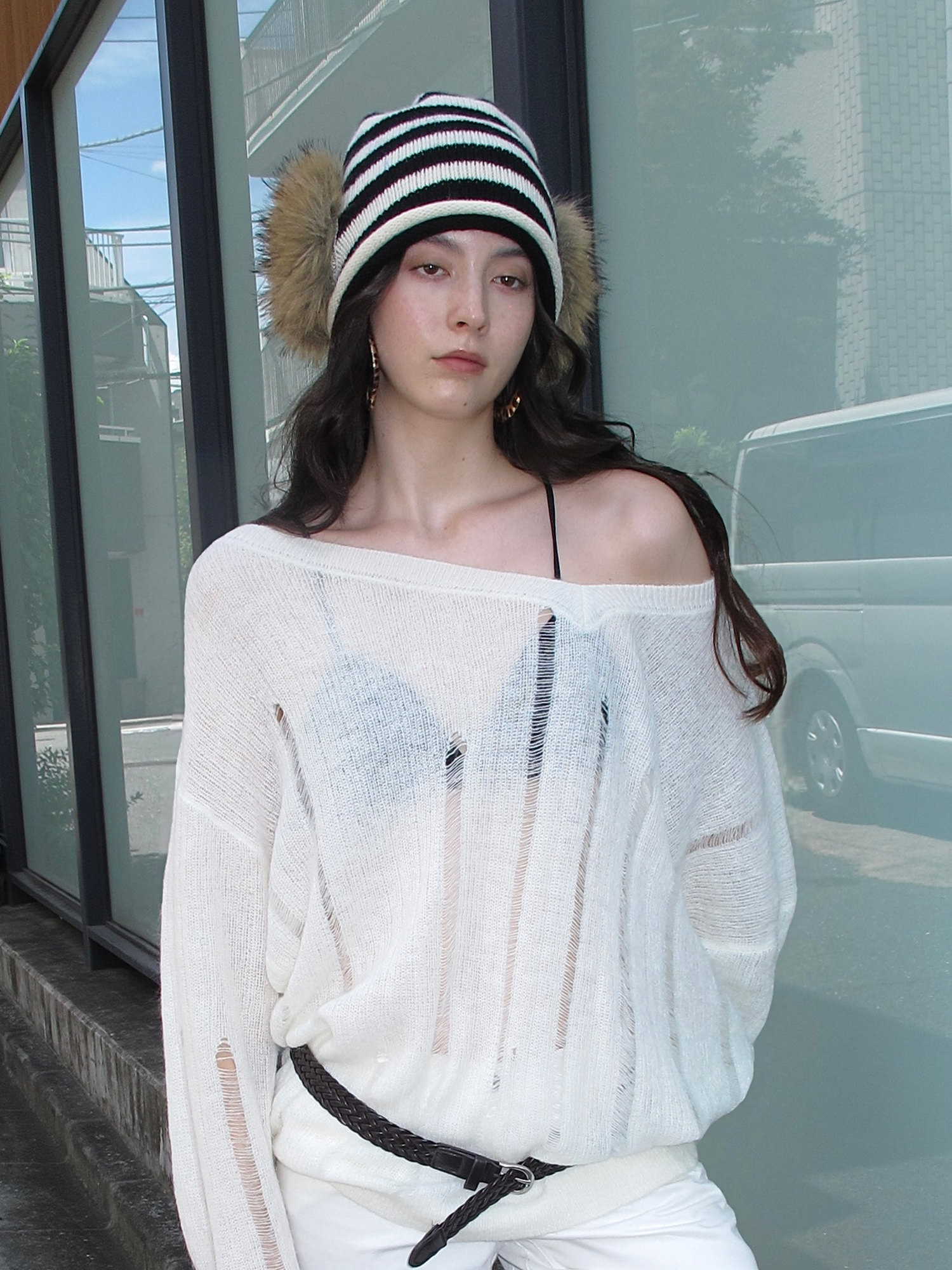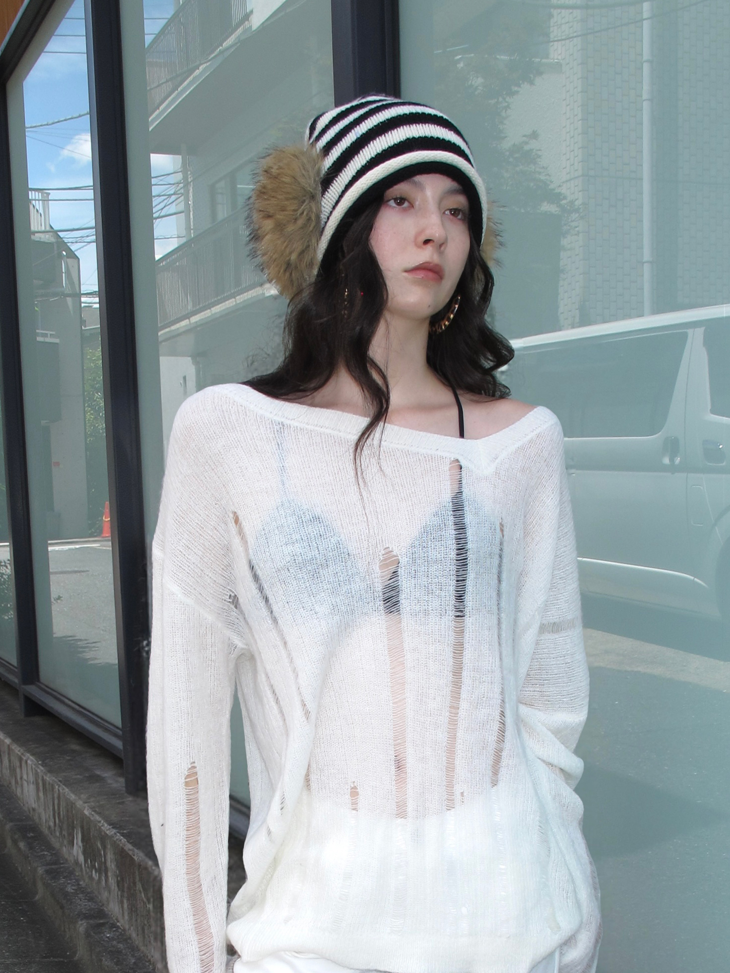 striped fur knit hat