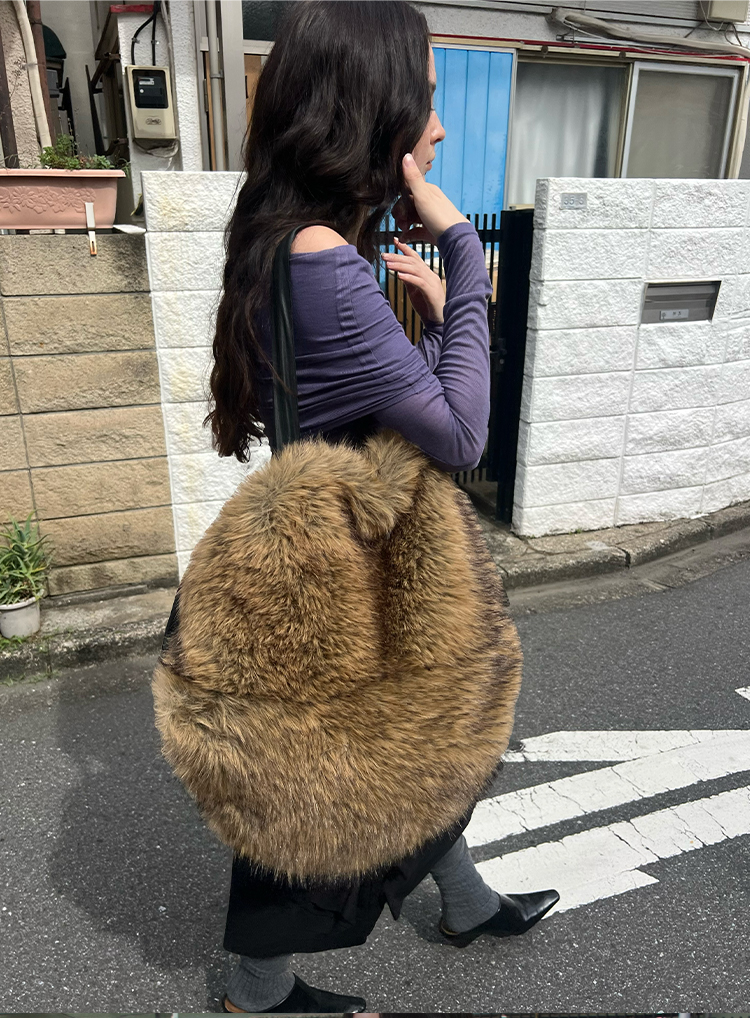 faux fur round bag