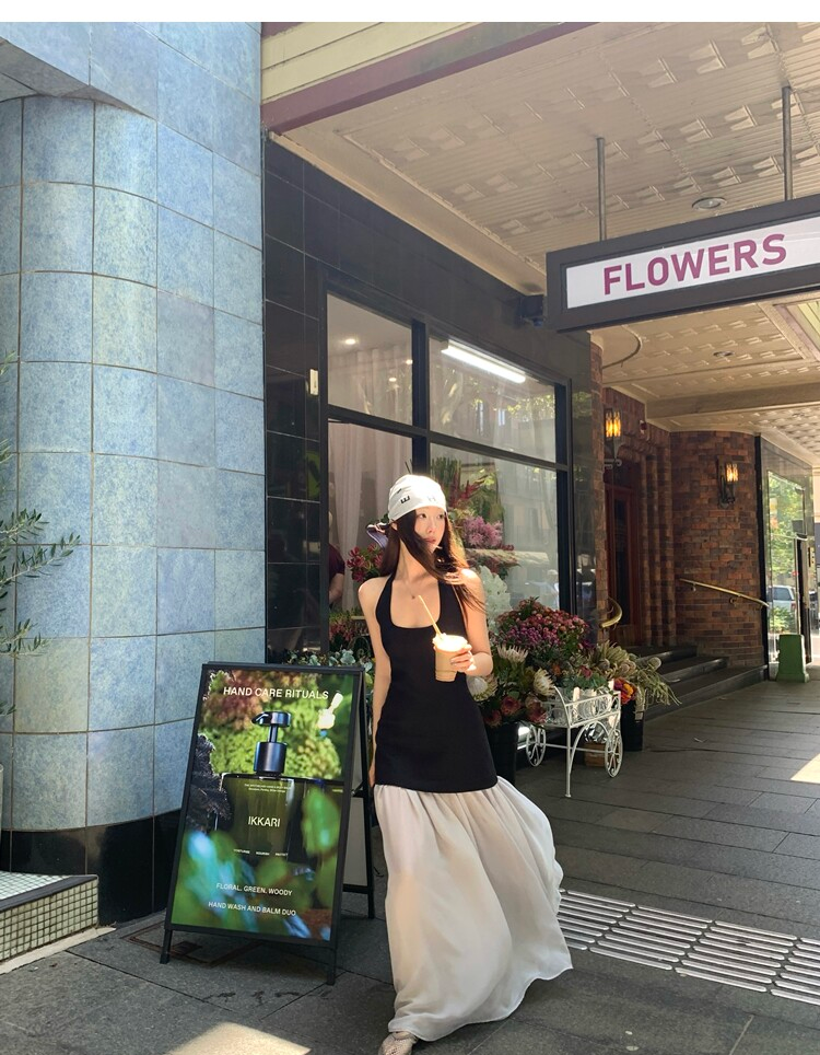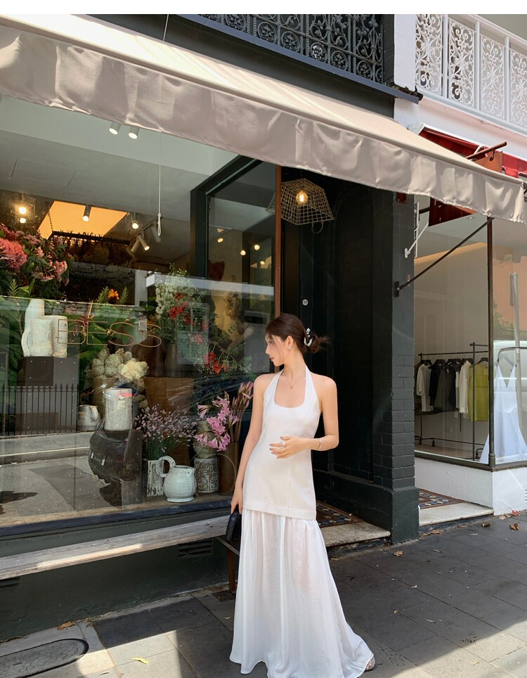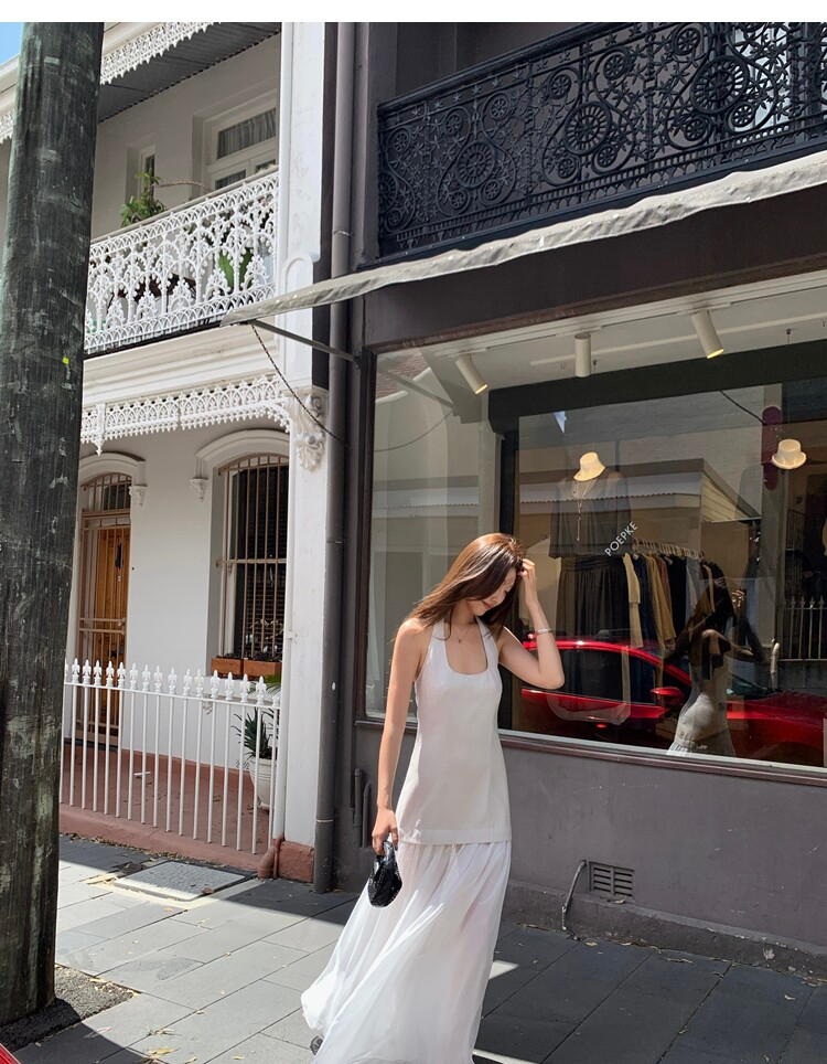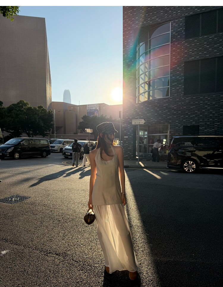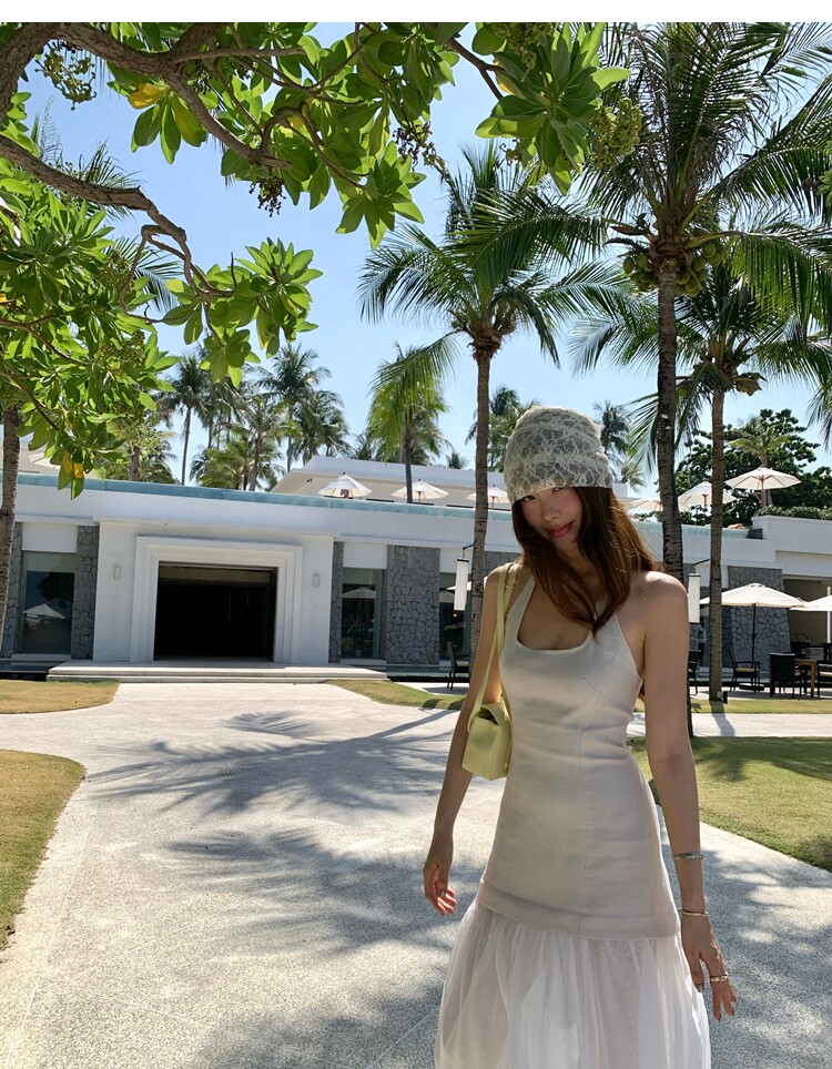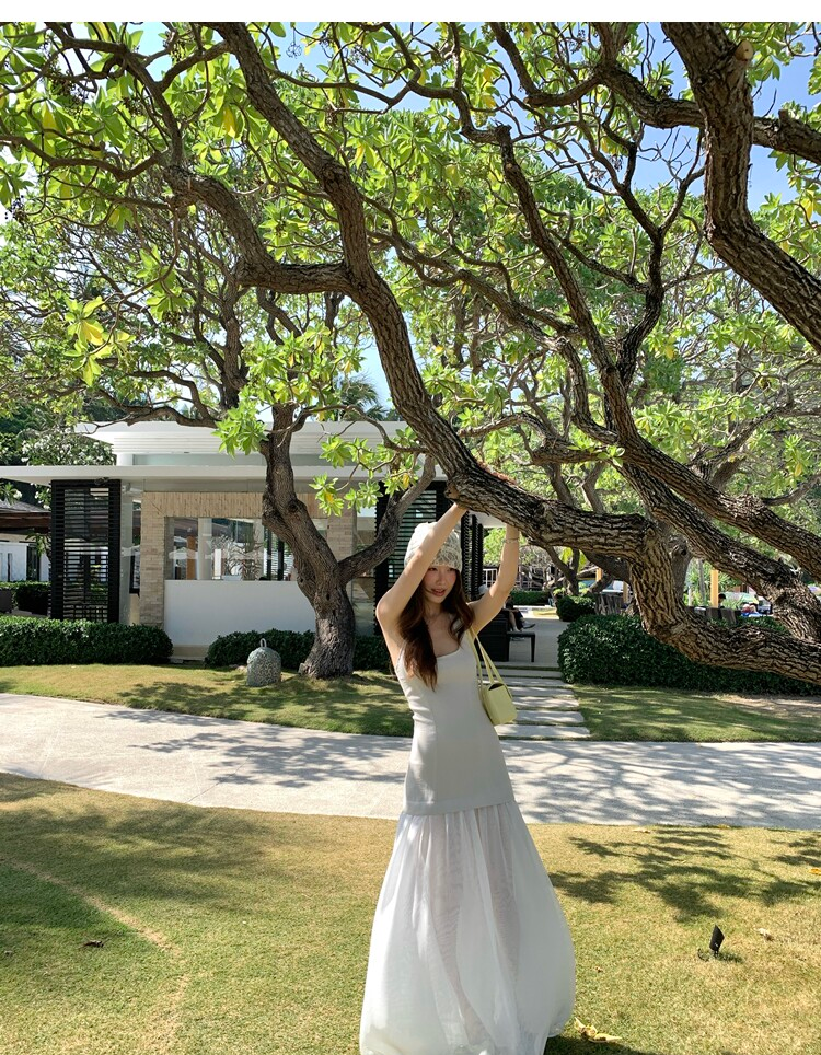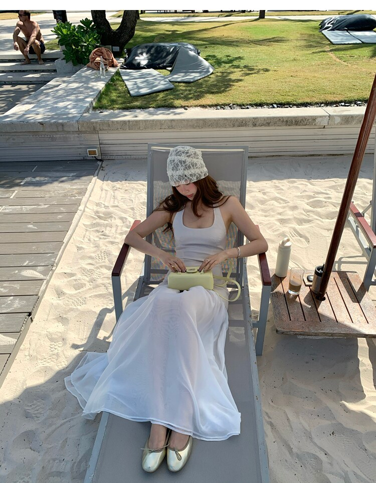 Gallery neckline backless waist-cinching long mesh dress