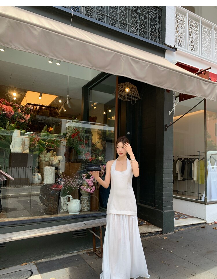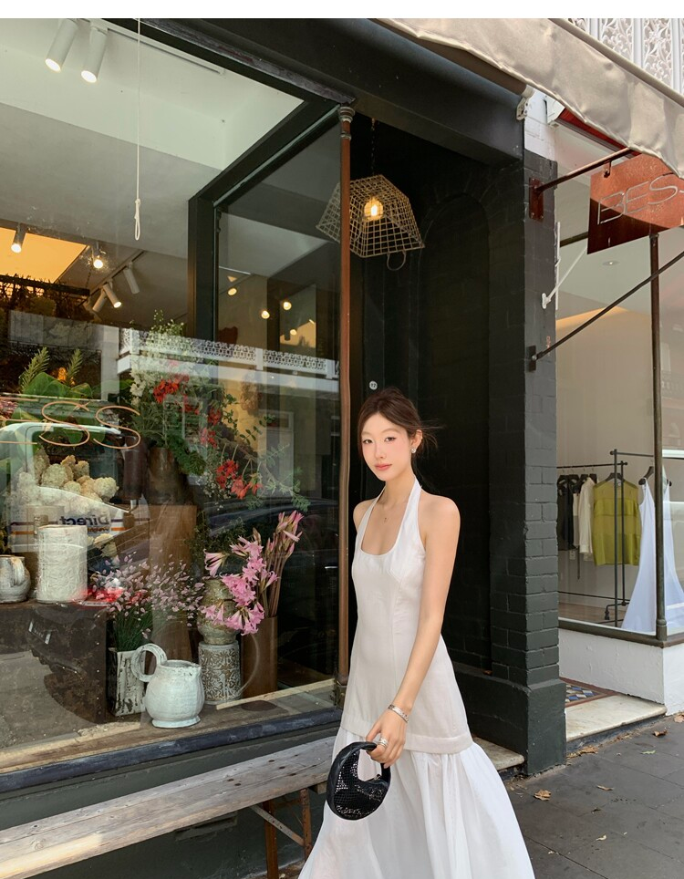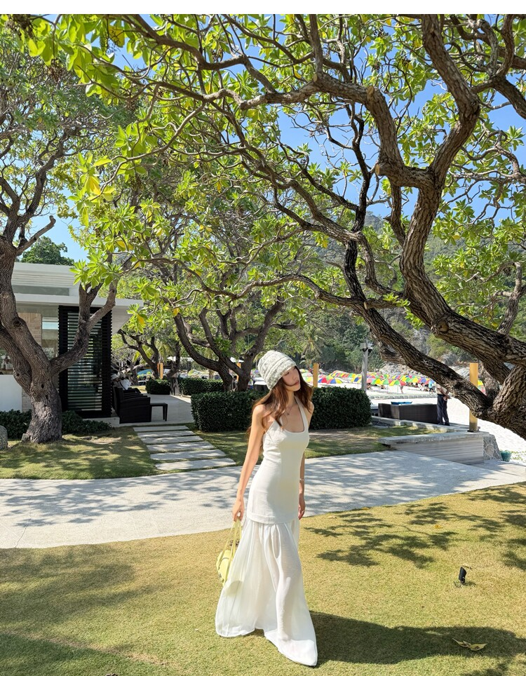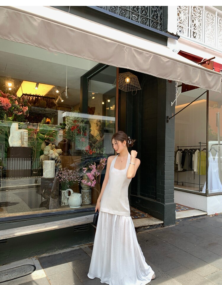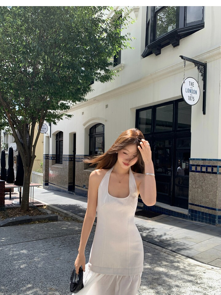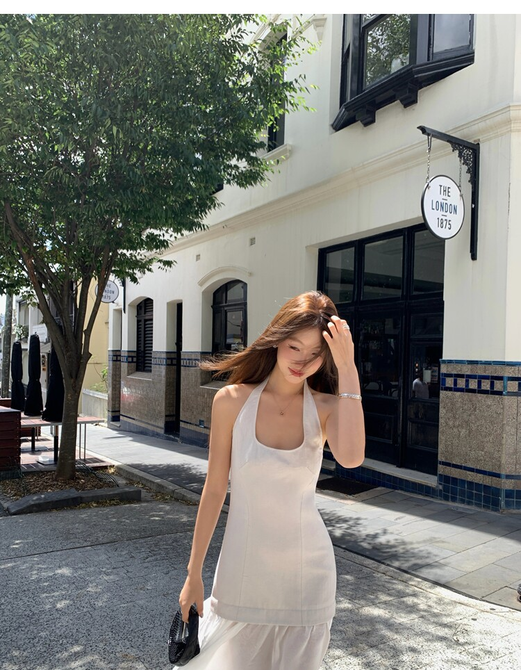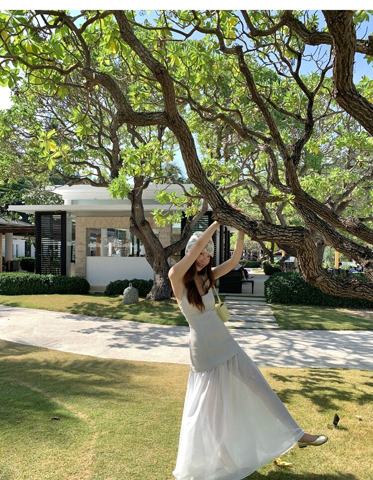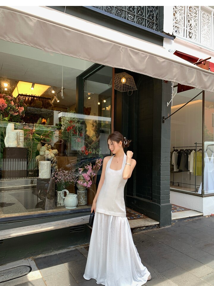 Gallery neckline backless waist-cinching long mesh dress