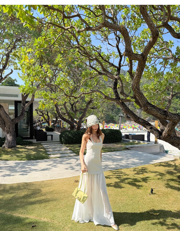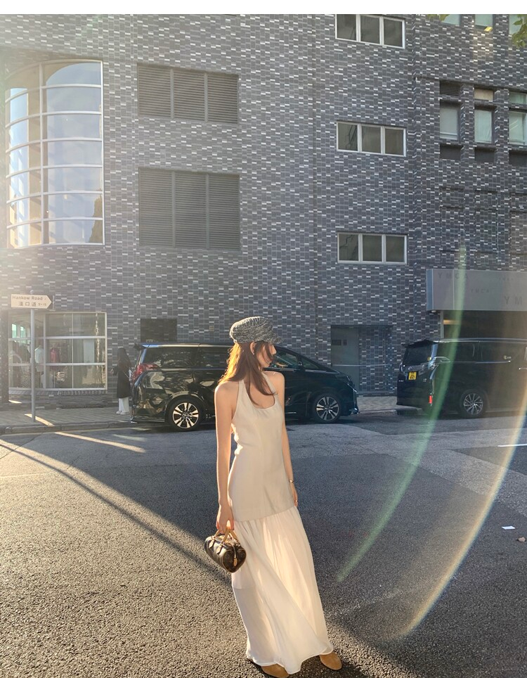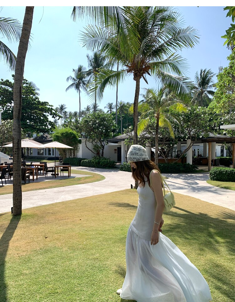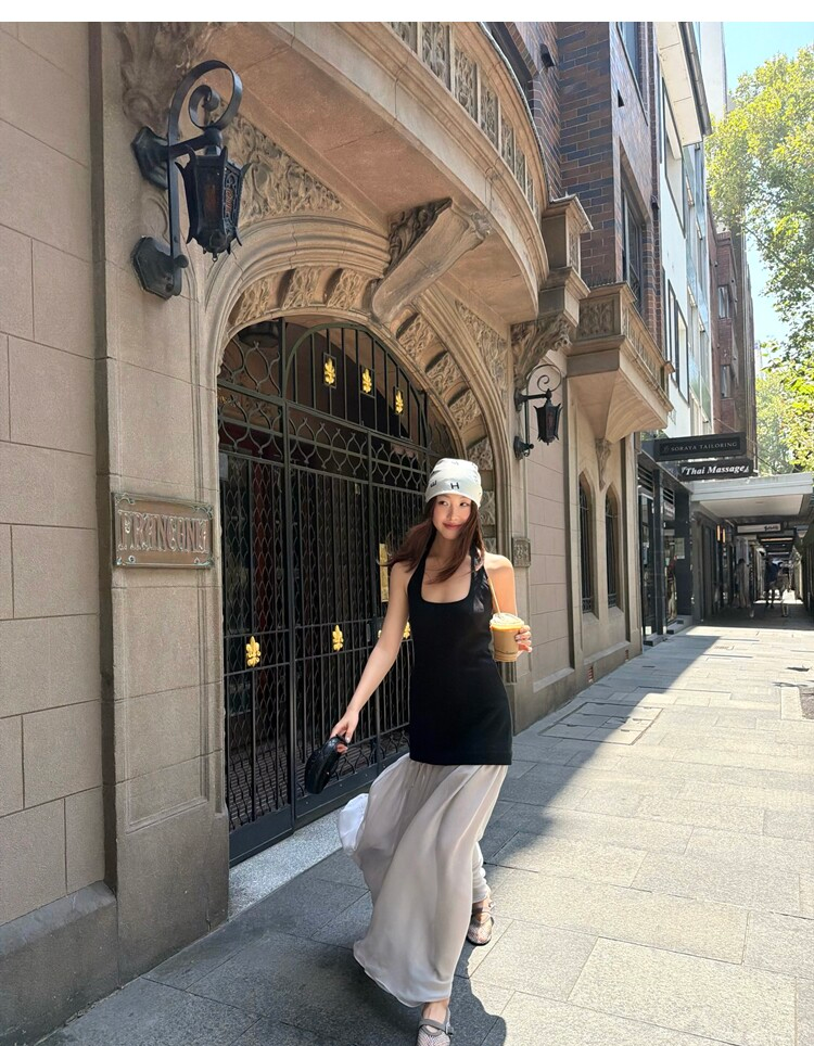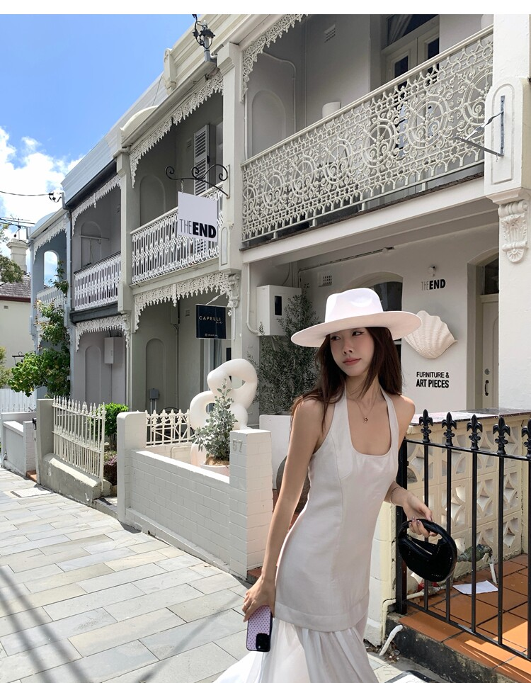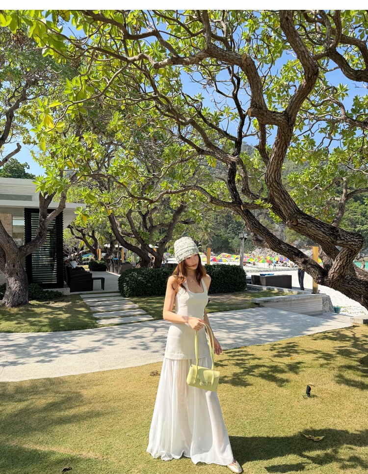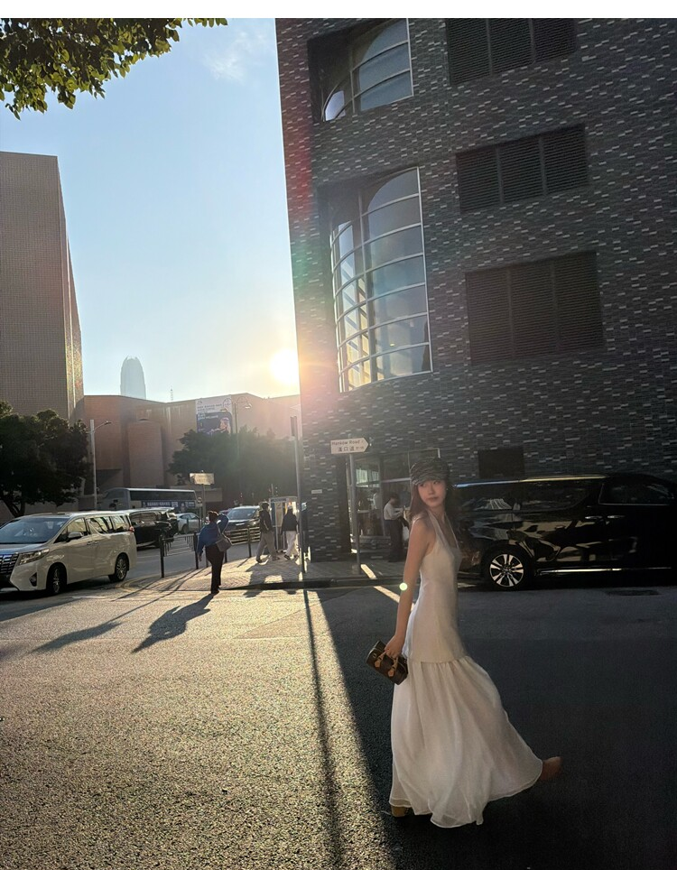 Gallery neckline backless waist-cinching long mesh dress