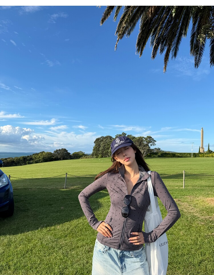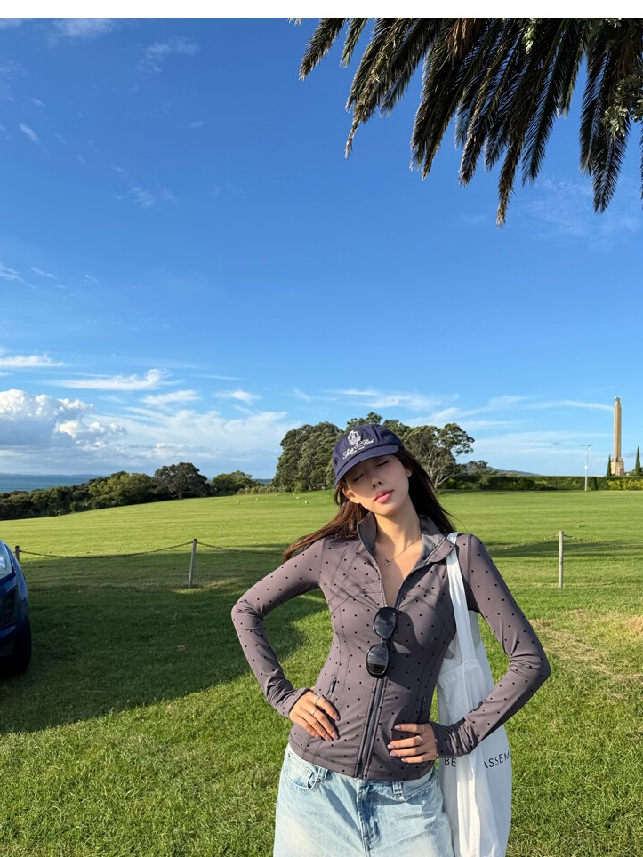 Plain Beauty Stitching Waistline Wave Point Sun Protection Yoga Jacket