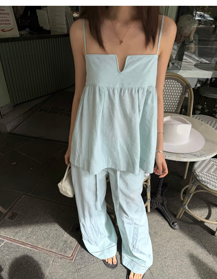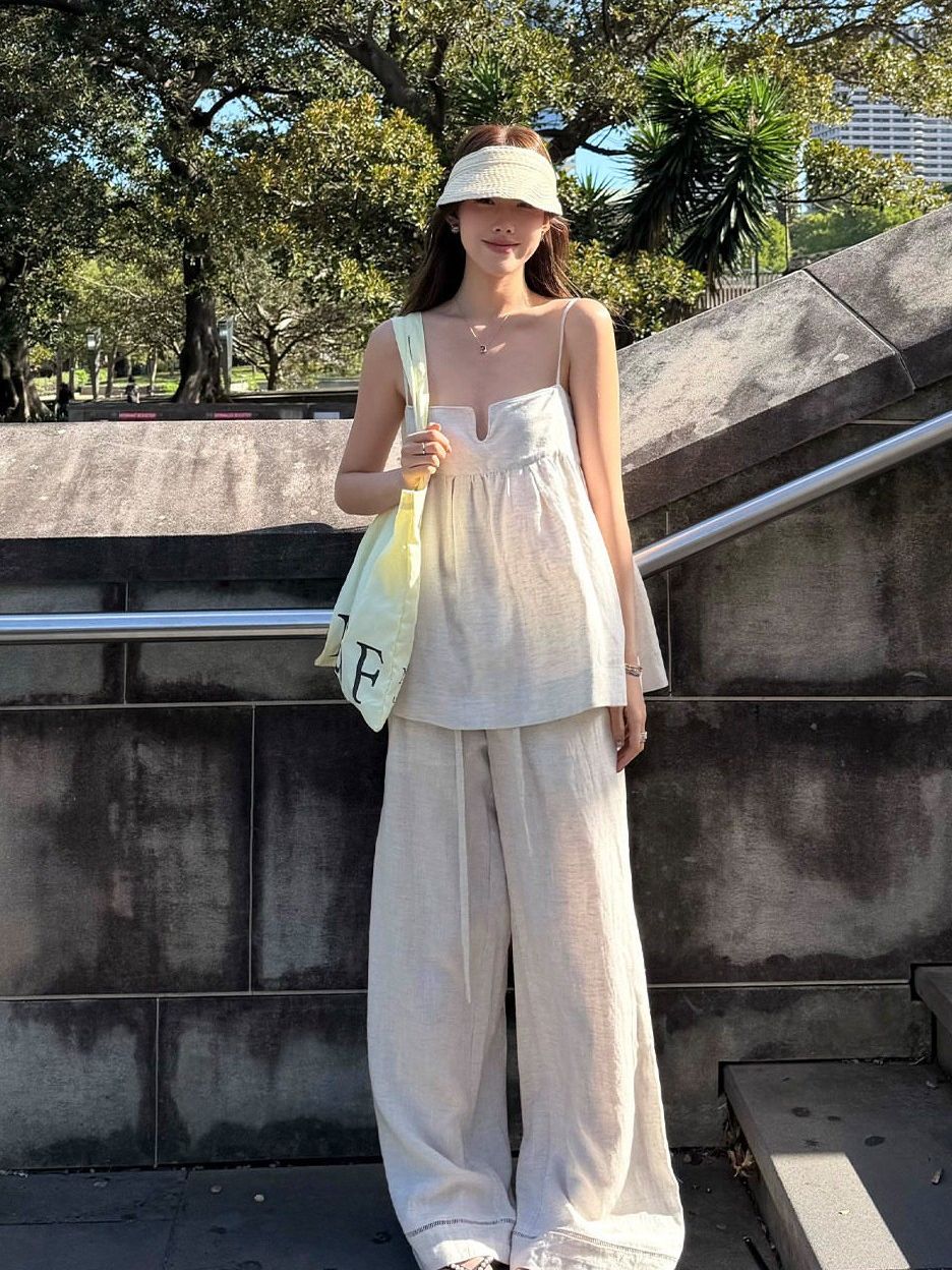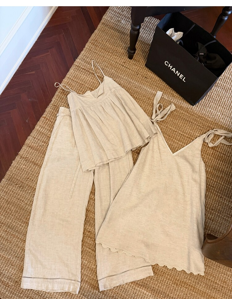 Holiday Lisbon Lysel Flax Strap Wide Leg Pants Tank Top Set