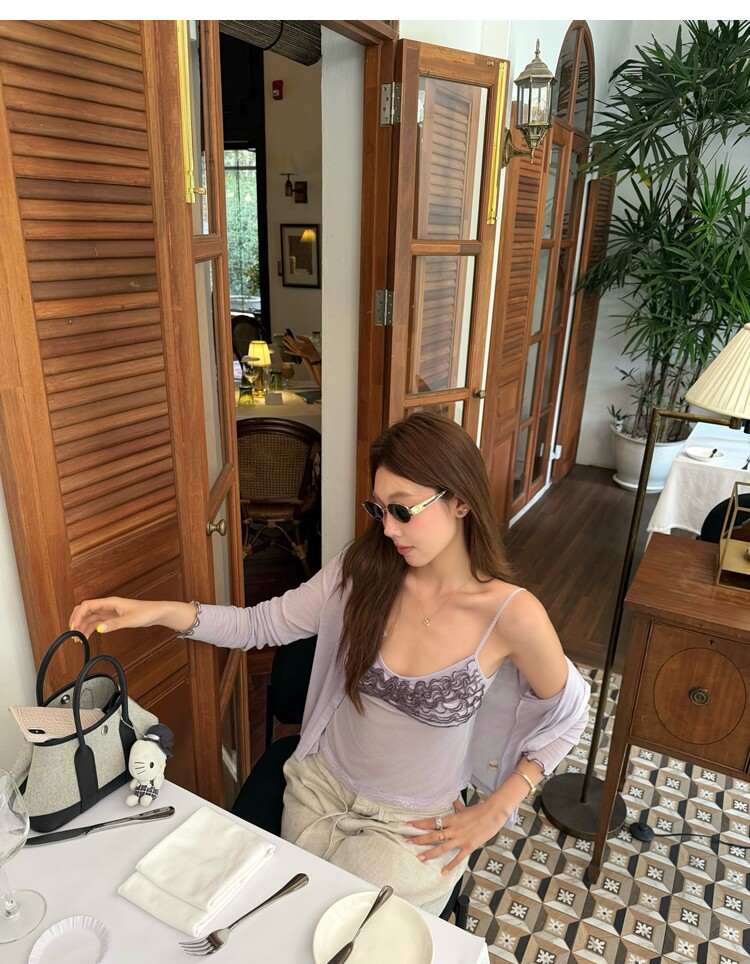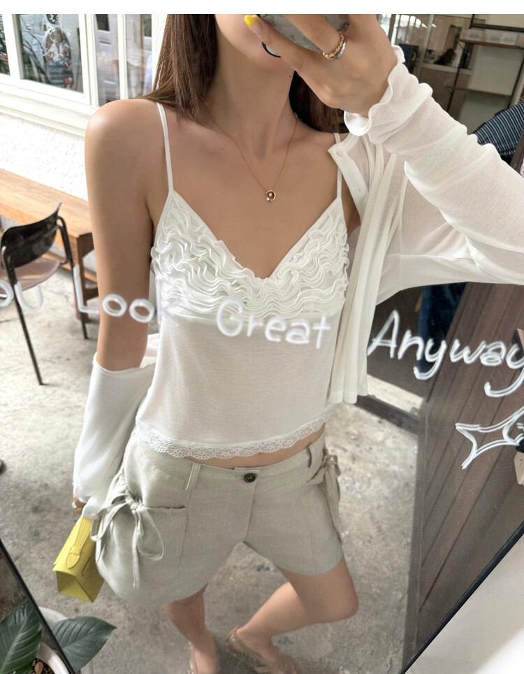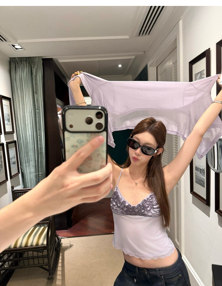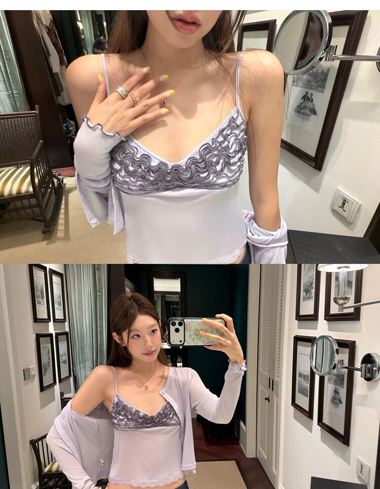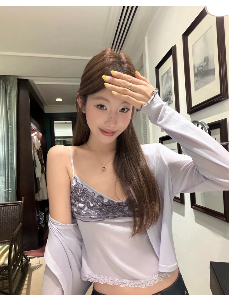 Spring Pure Desire Slim Fit V-Neck Stacked Strap Sunscreen Cardigan Set