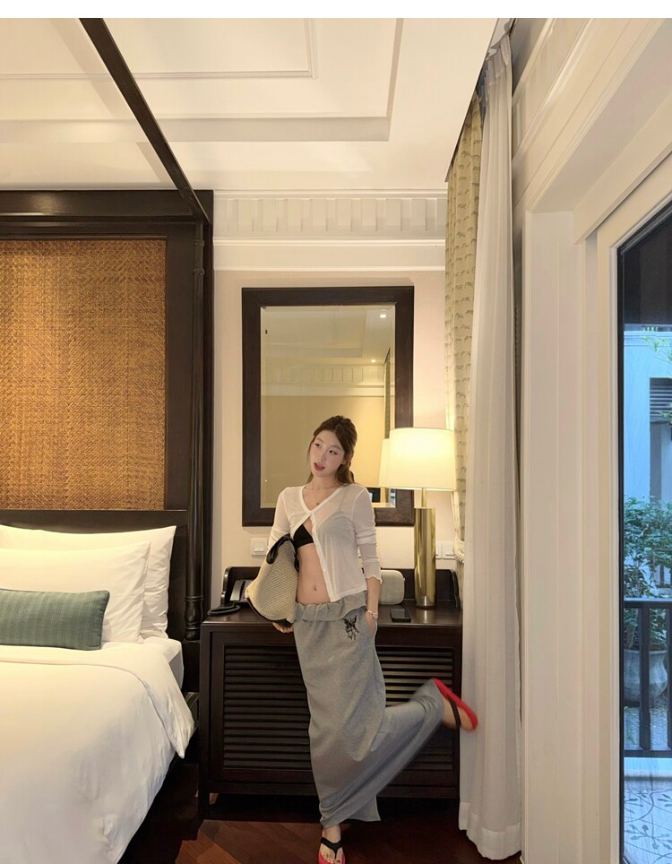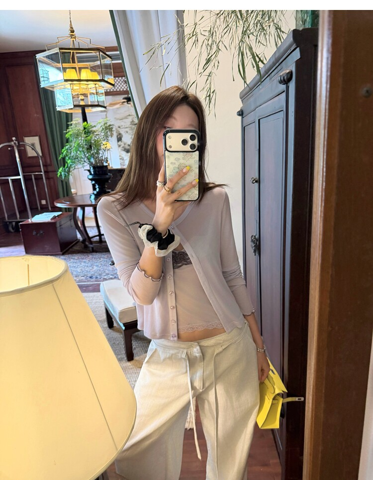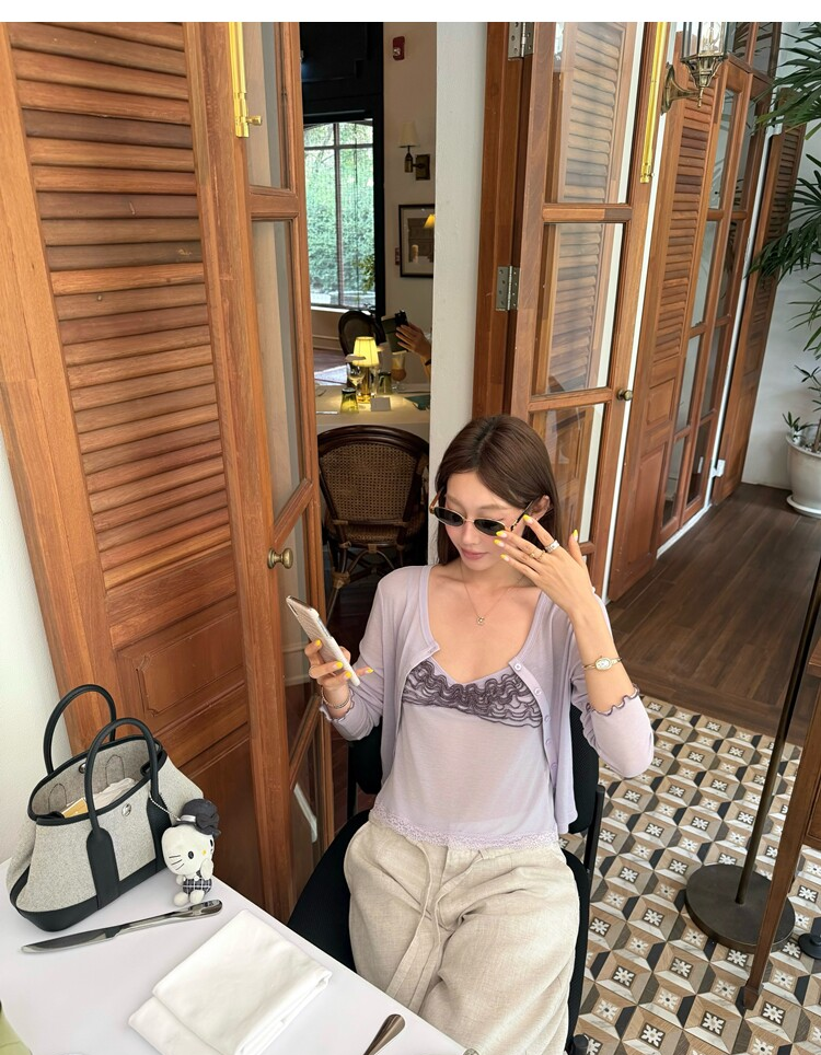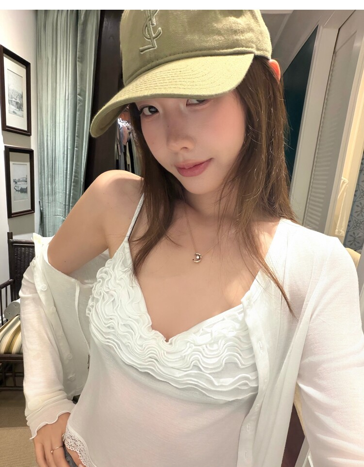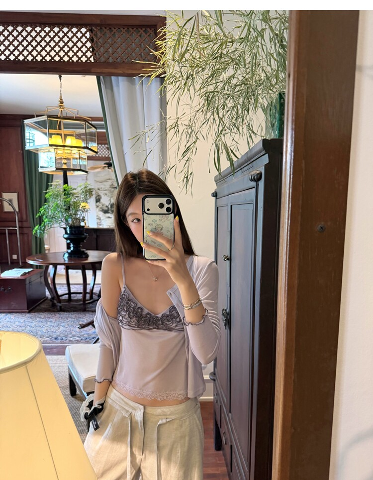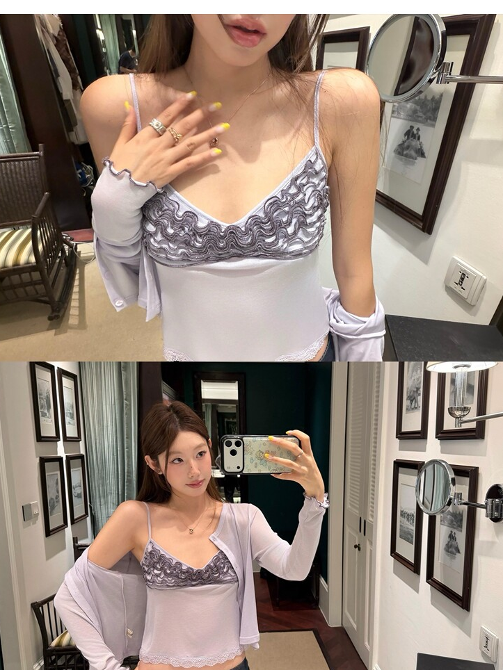 Spring Pure Desire Slim Fit V-Neck Stacked Strap Sunscreen Cardigan Set