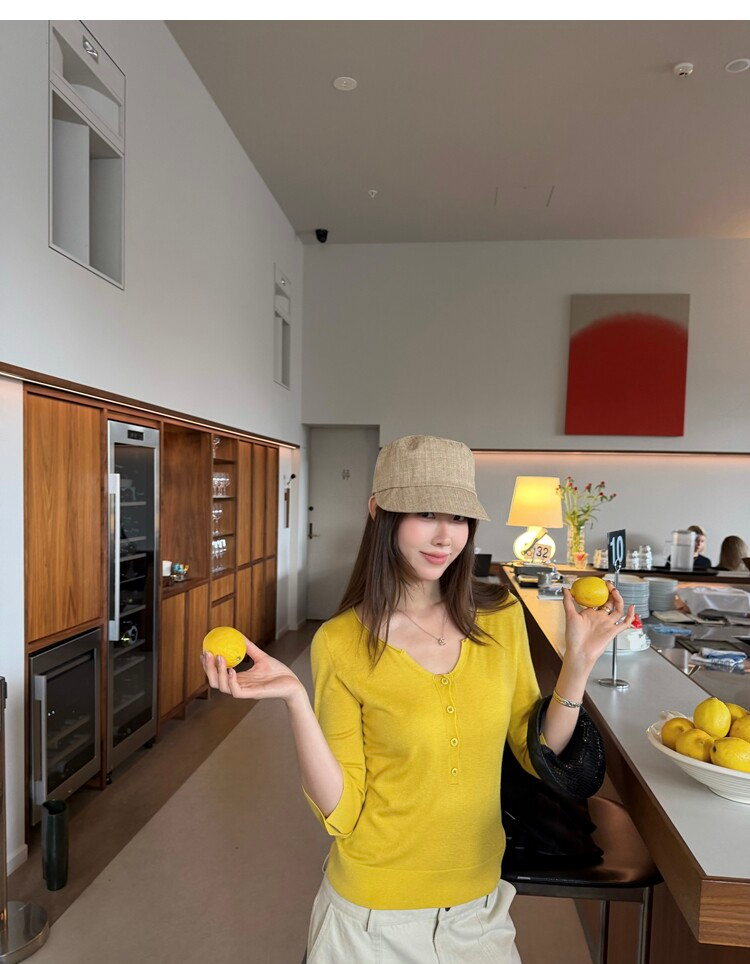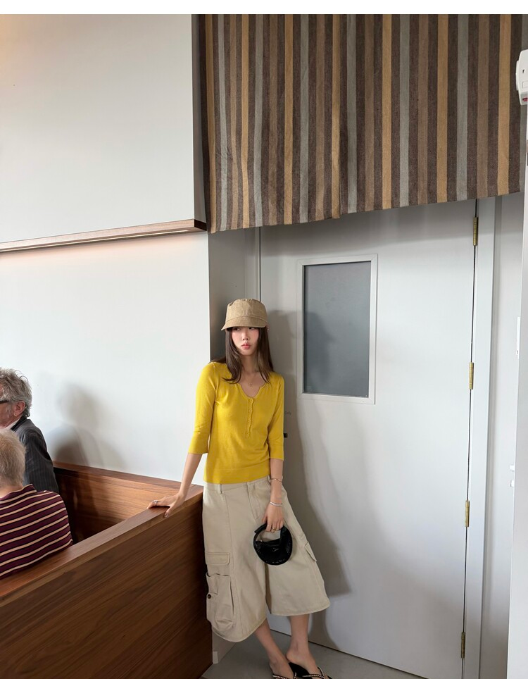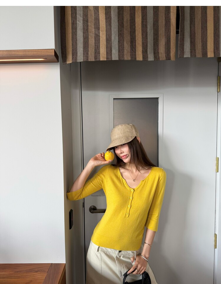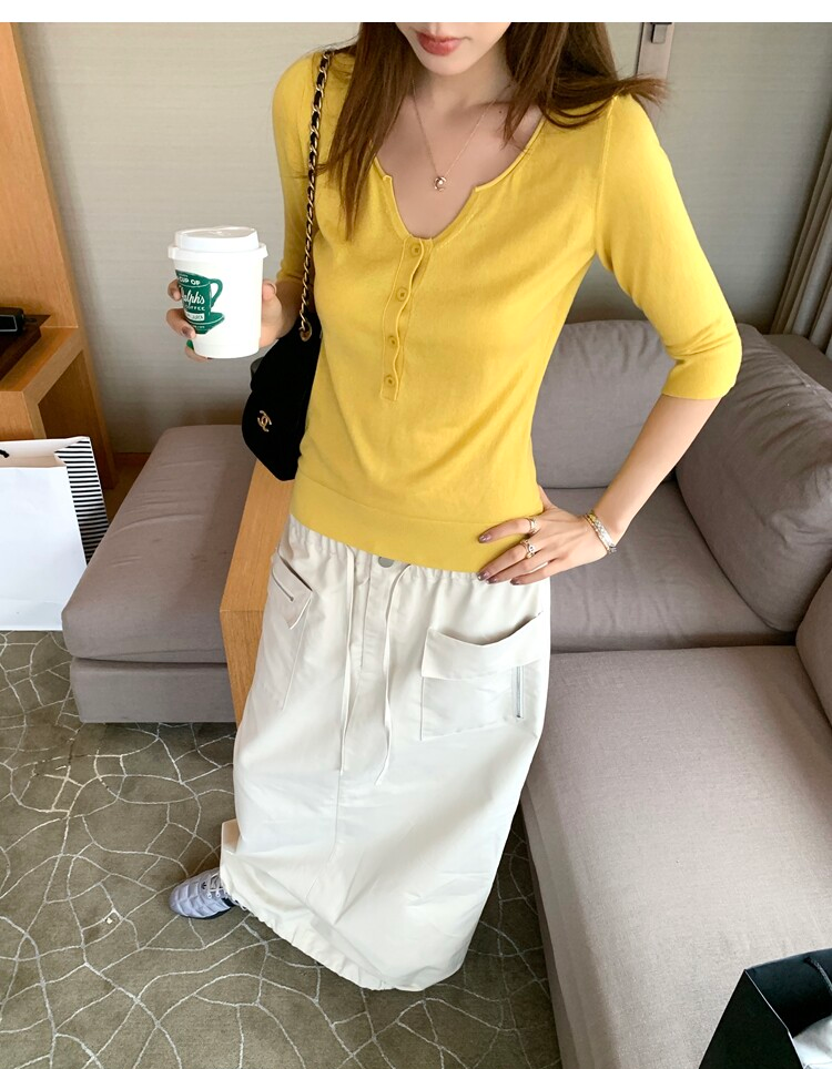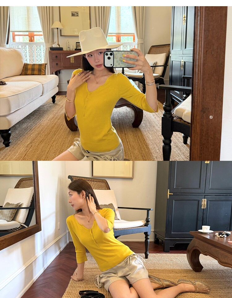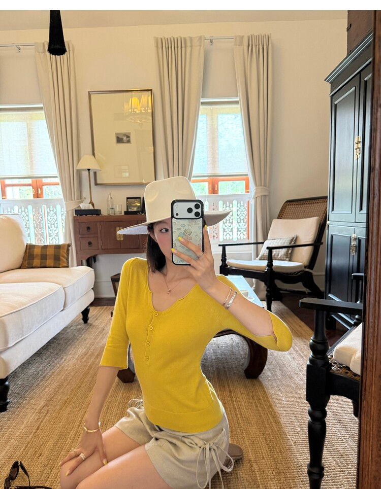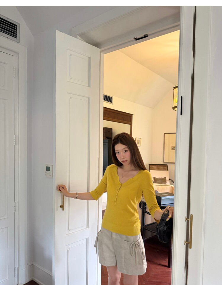 Light Lysel Wool Silk Multi-Button Mid-Sleeve Knit Sweater