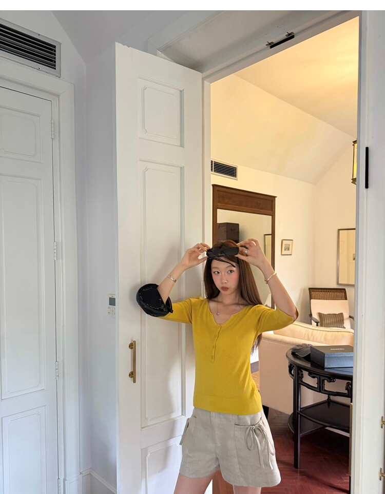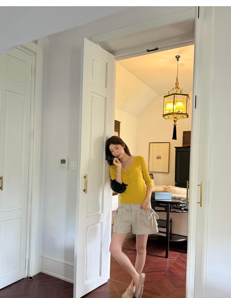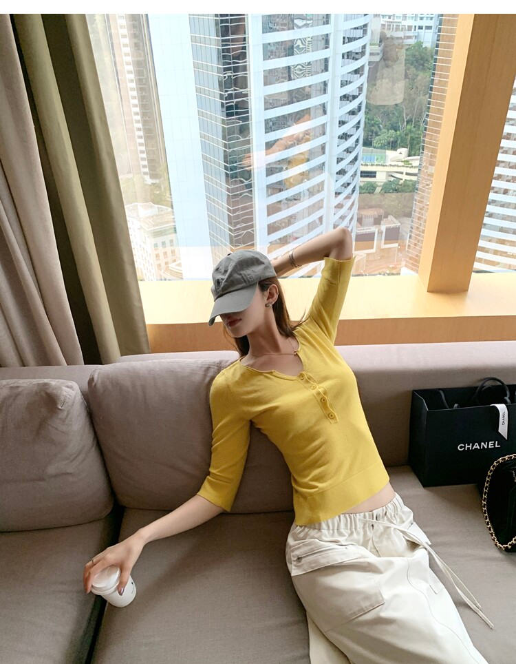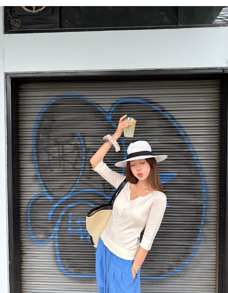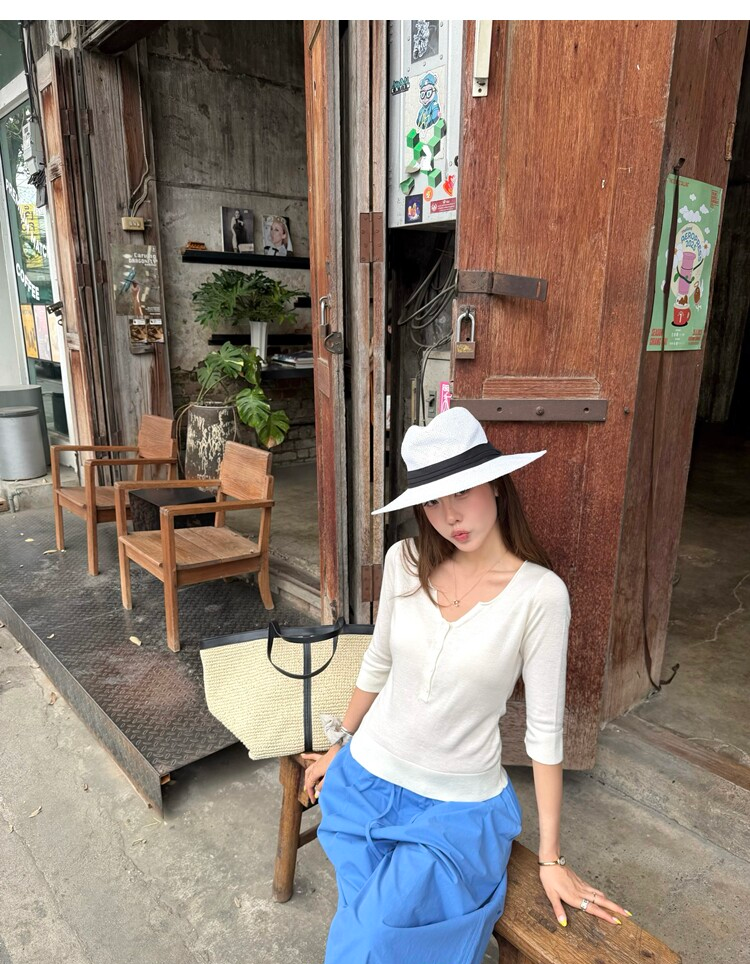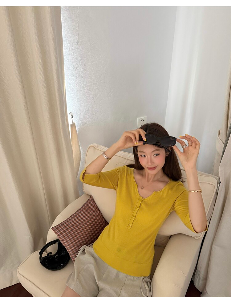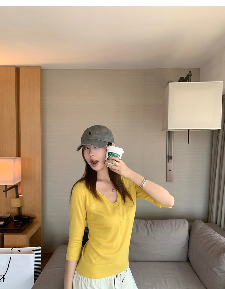 Light Lysel Wool Silk Multi-Button Mid-Sleeve Knit Sweater