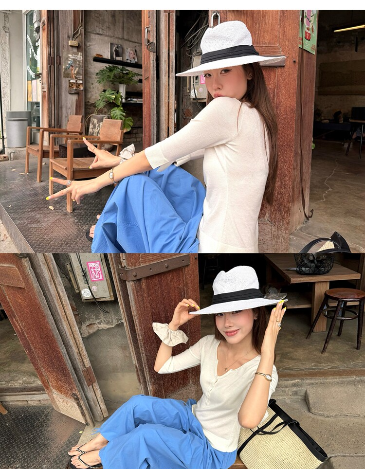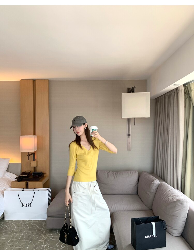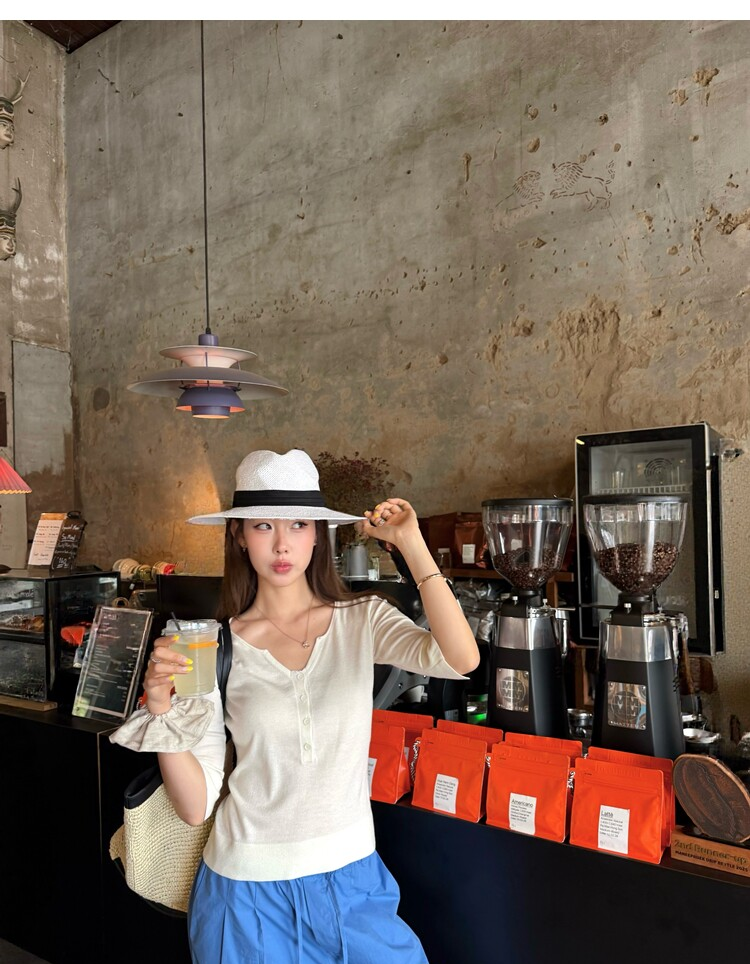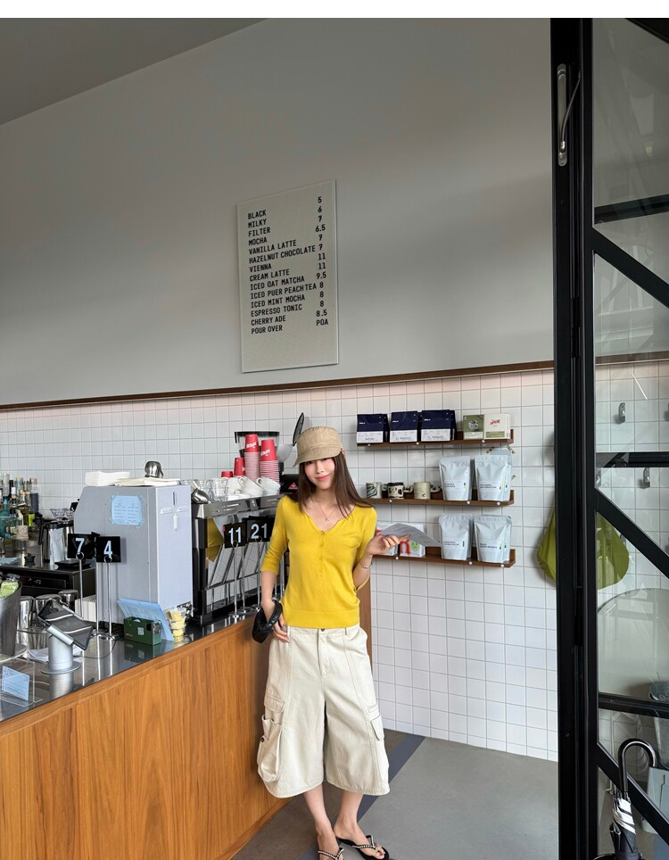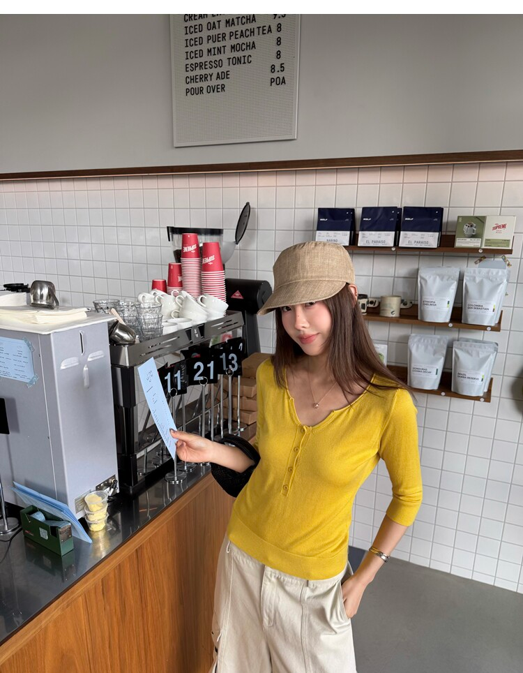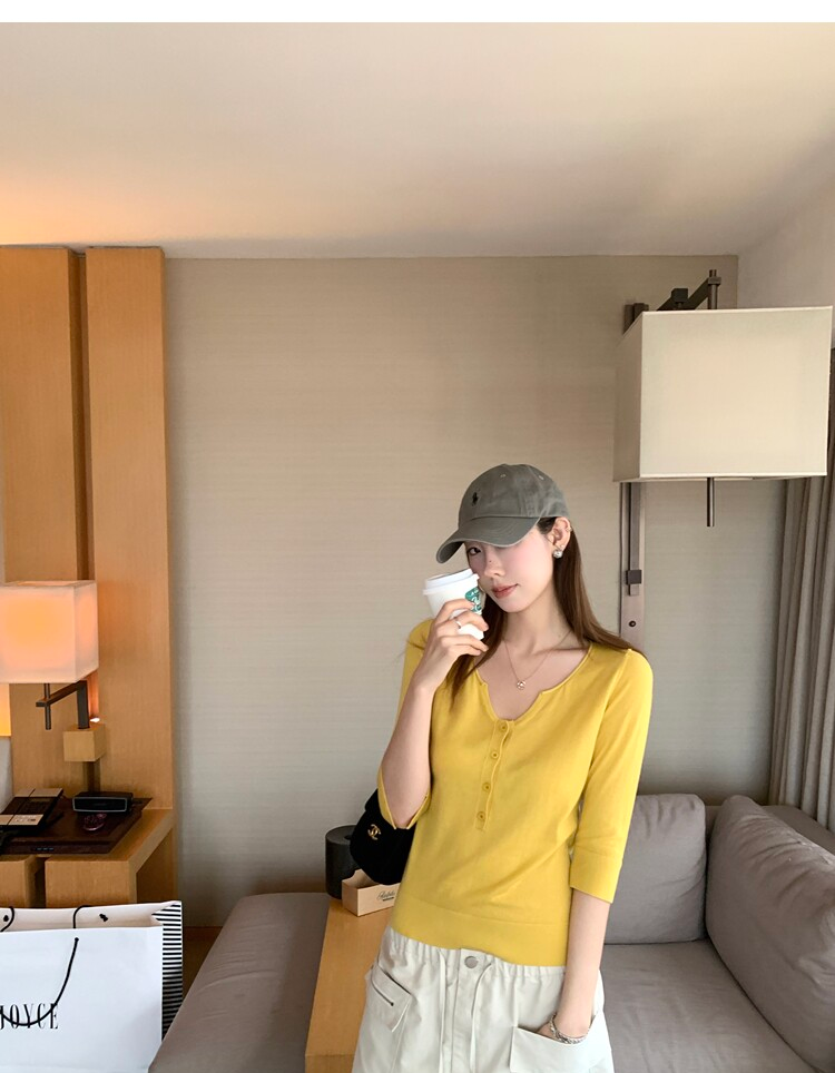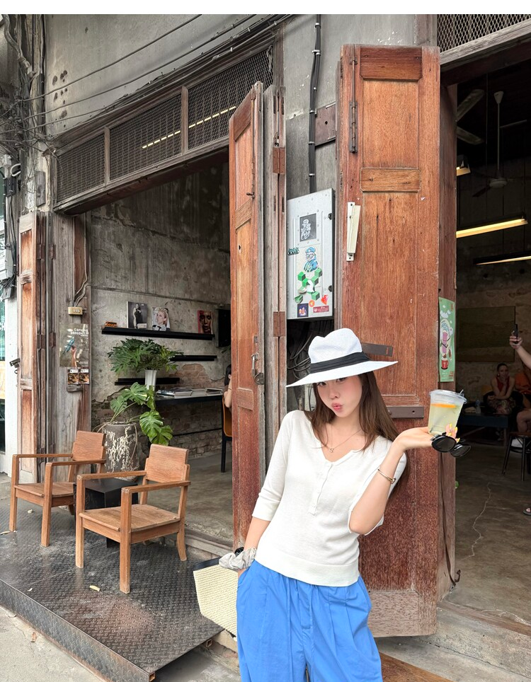 Light Lysel Wool Silk Multi-Button Mid-Sleeve Knit Sweater