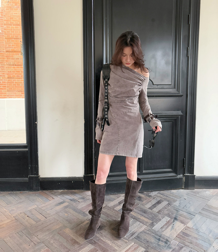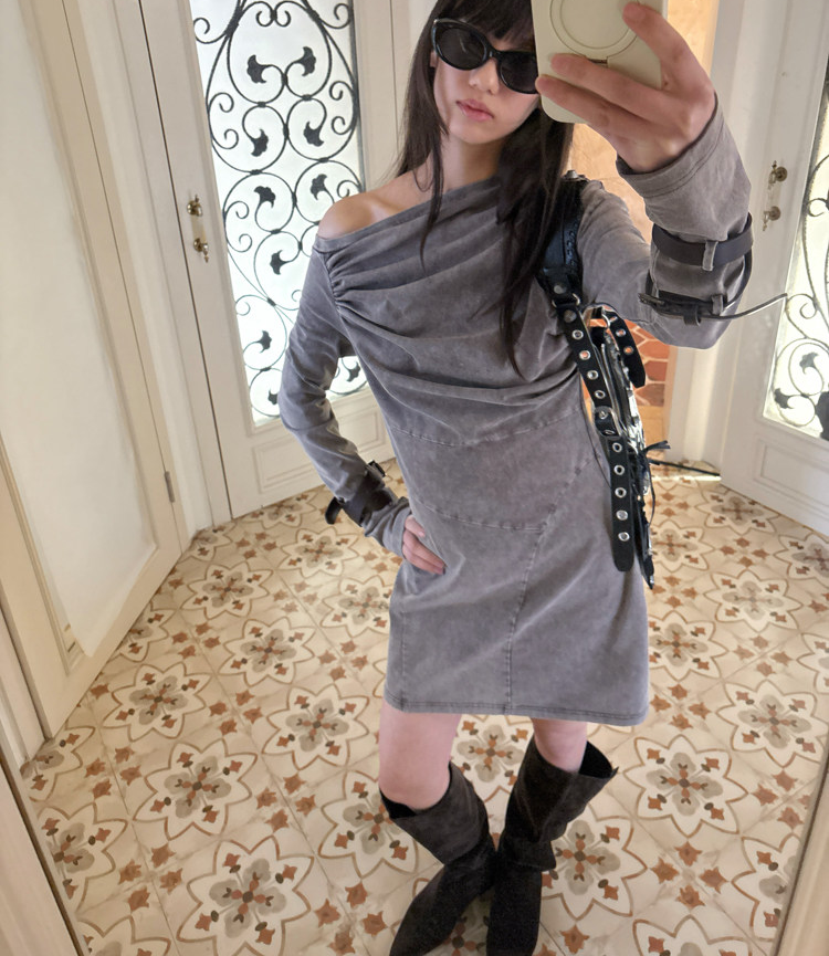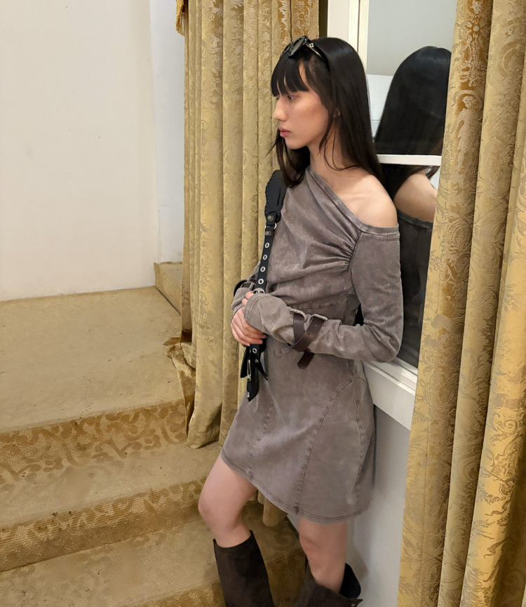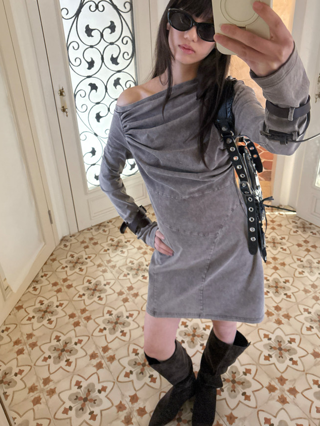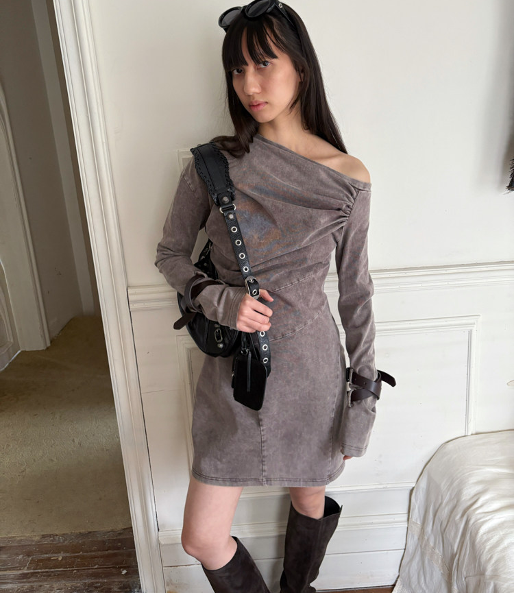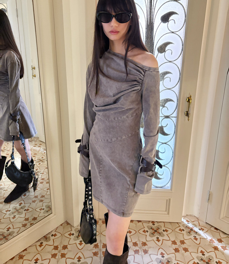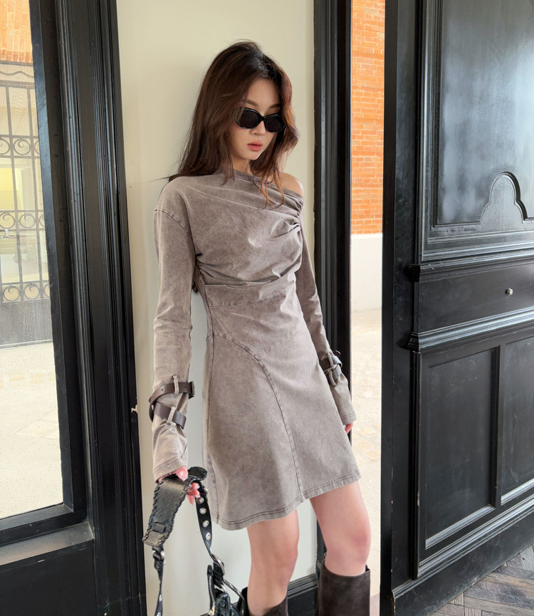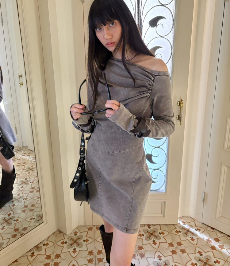 Miniature Old Gray Shoulder Twisted Dress