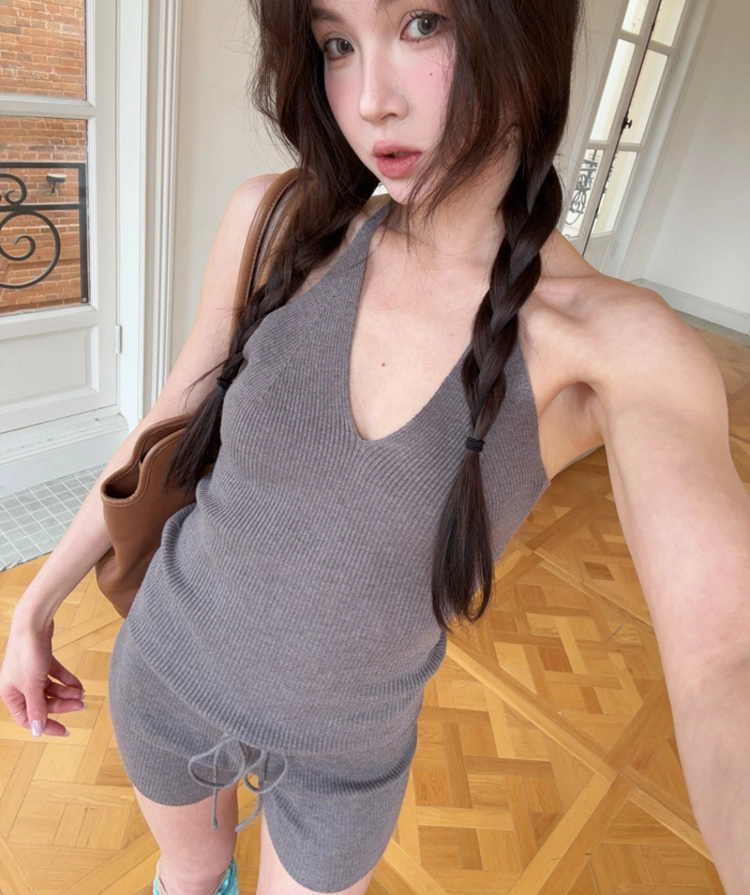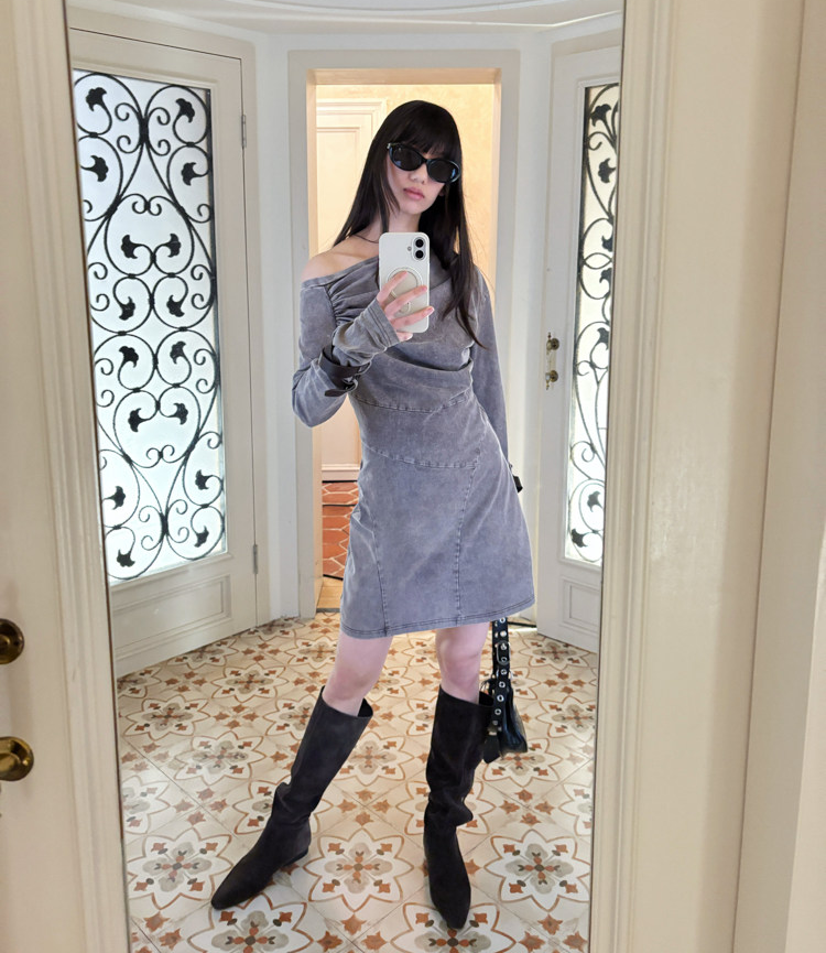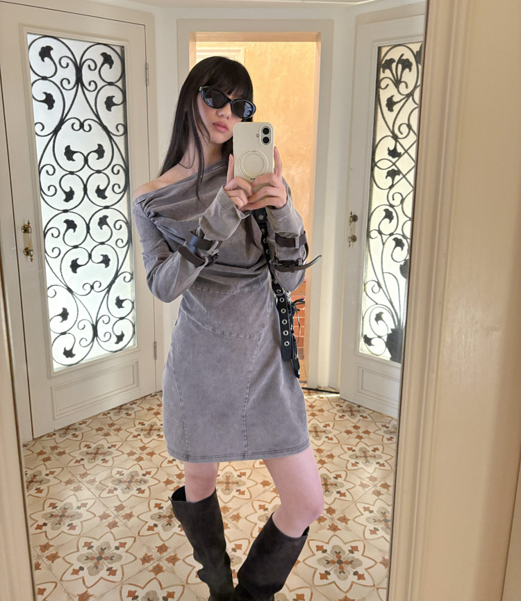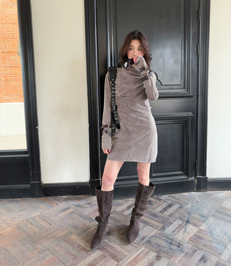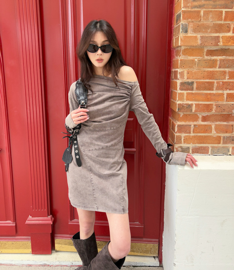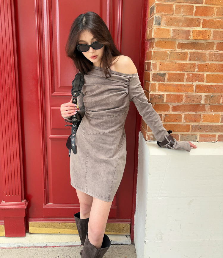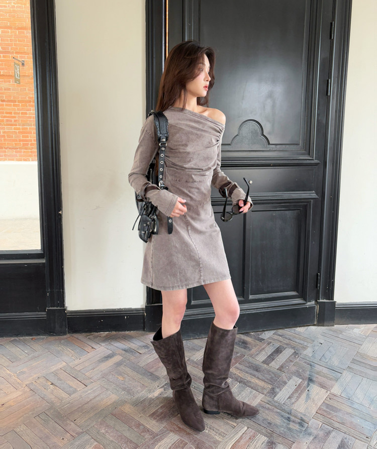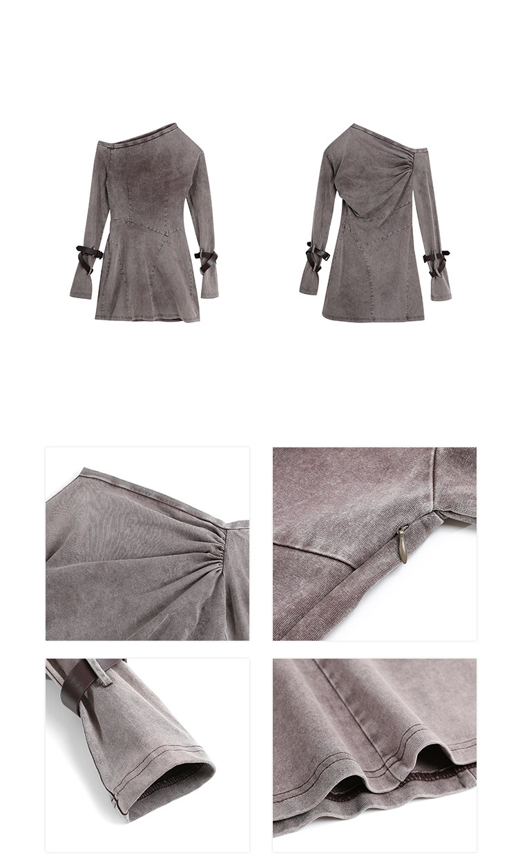 Miniature Old Gray Shoulder Twisted Dress