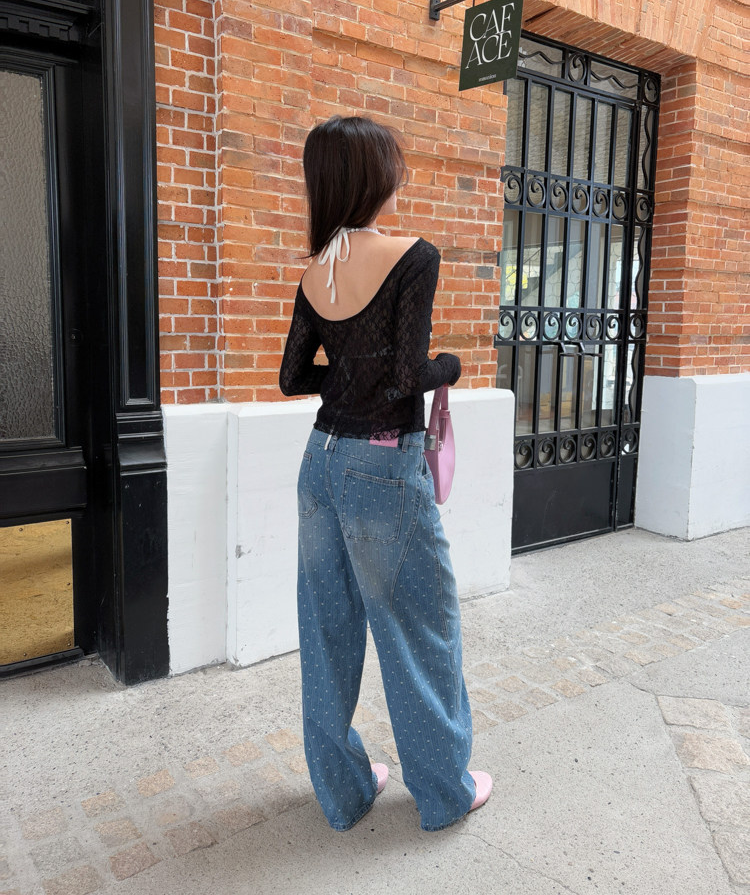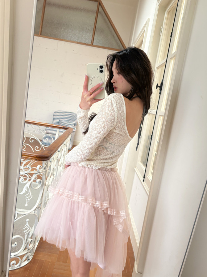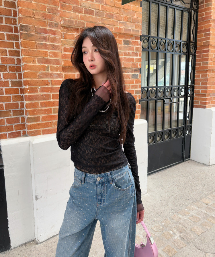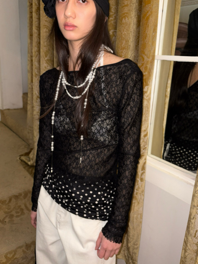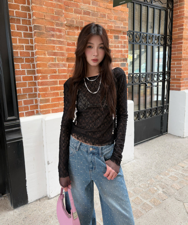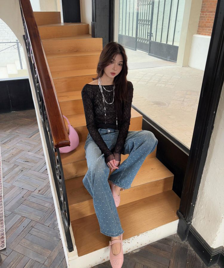 Large U-Neck Lace Slightly Slimming Atmosphere Top