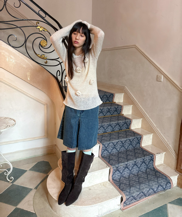 Relaxation Bling Bling Rose Flower Hooded Knit Sweater