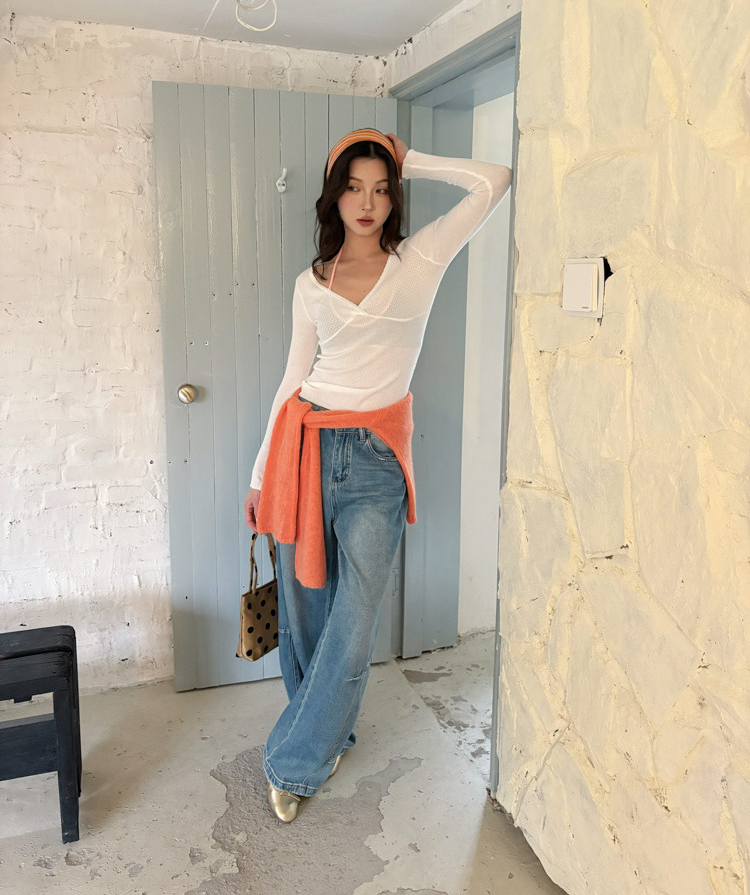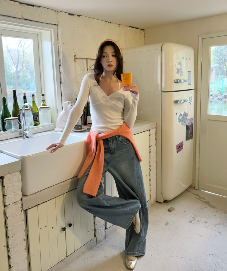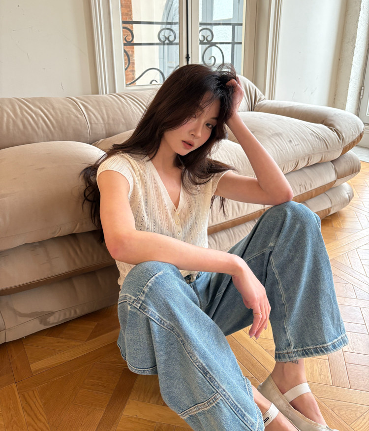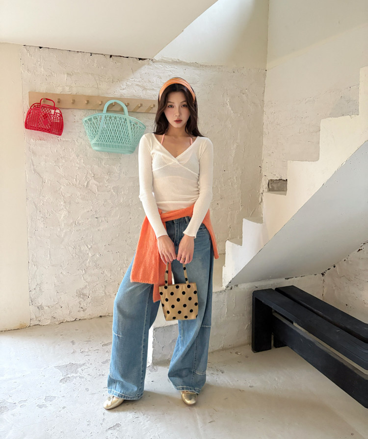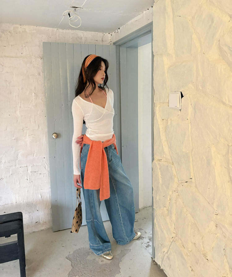 vintage feel wide-leg relaxed atmosphere straight-leg pants