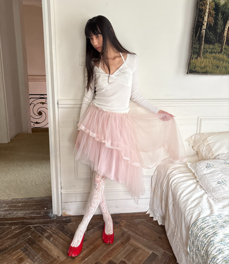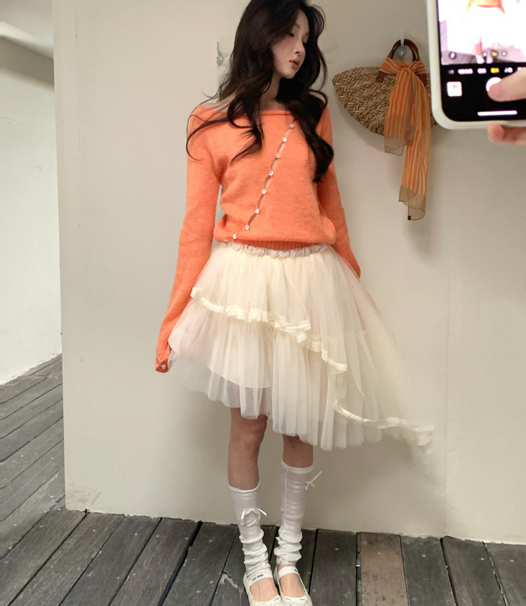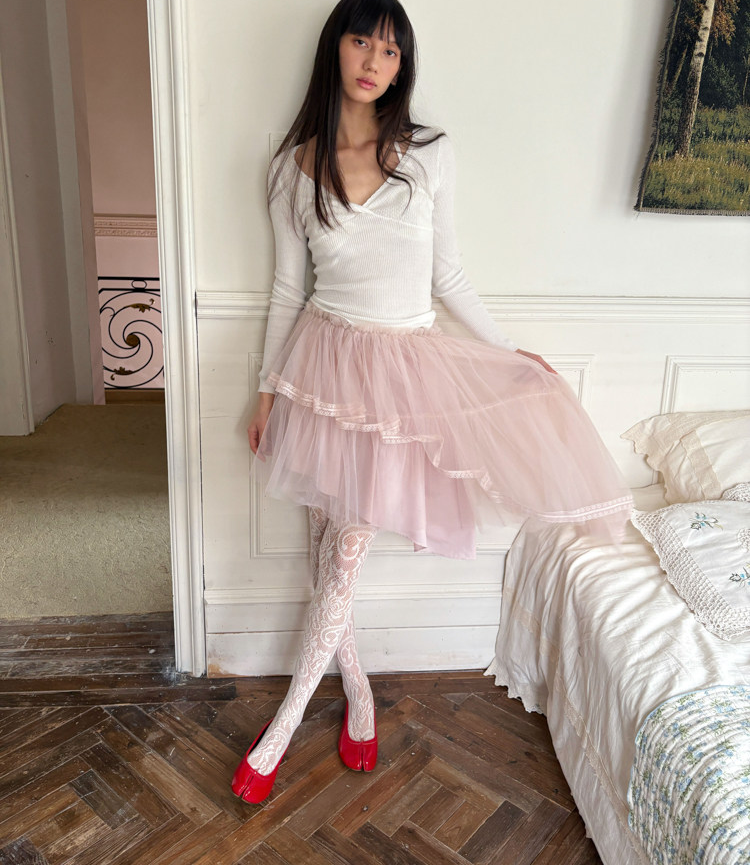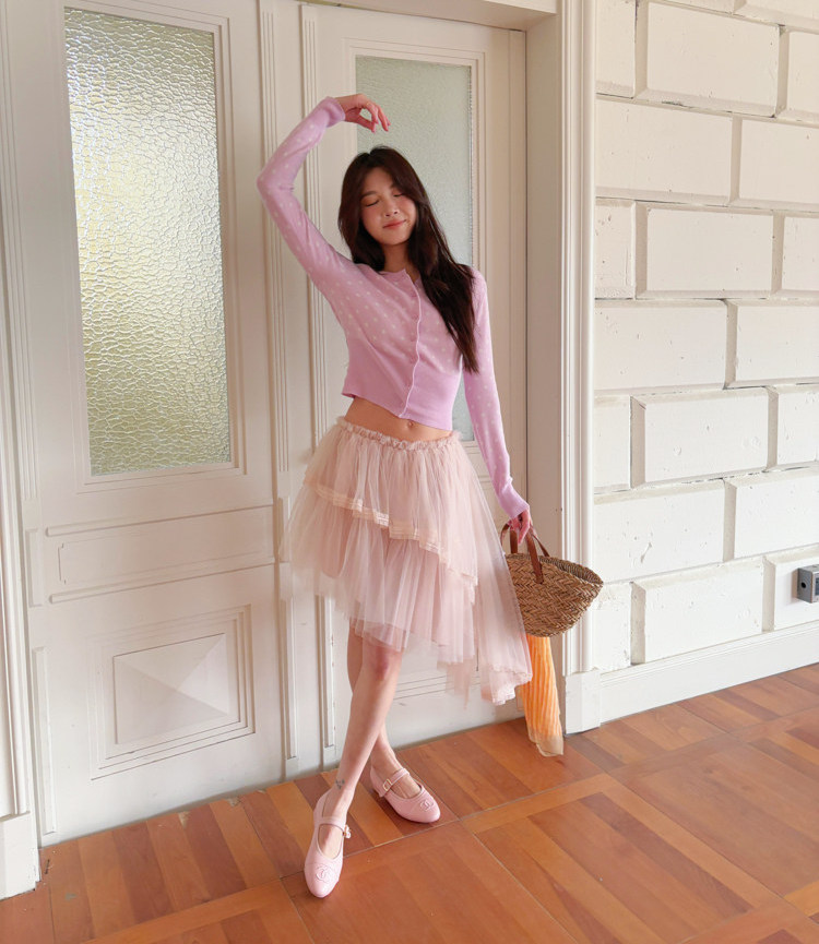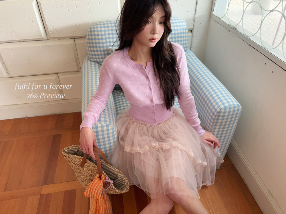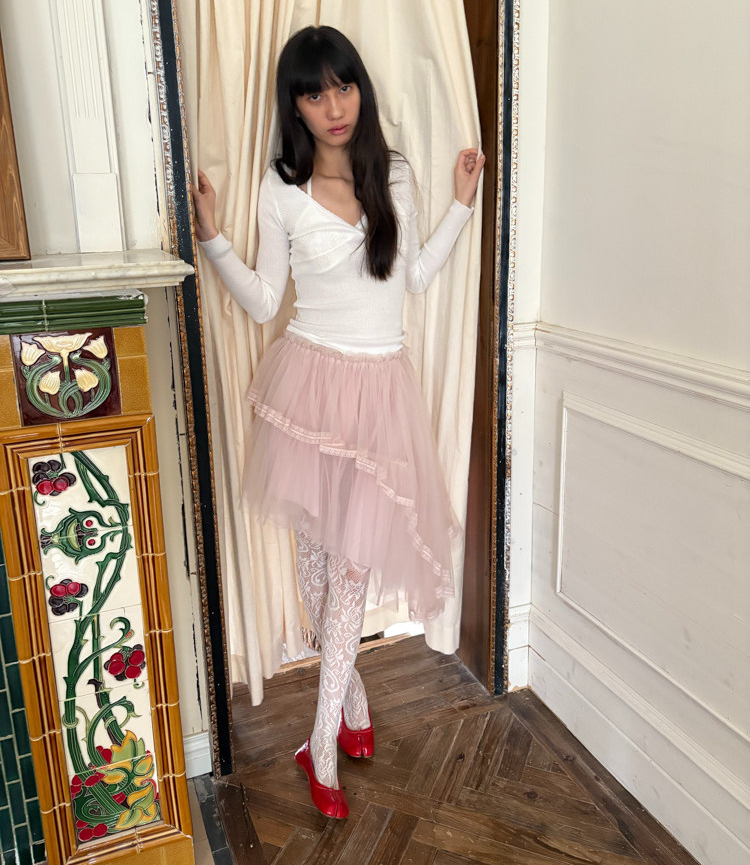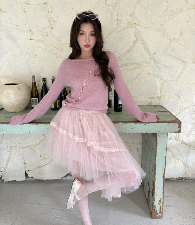 Lace-Mixed High-Quality Fluffy Mesh Half-Sleeve Skirt