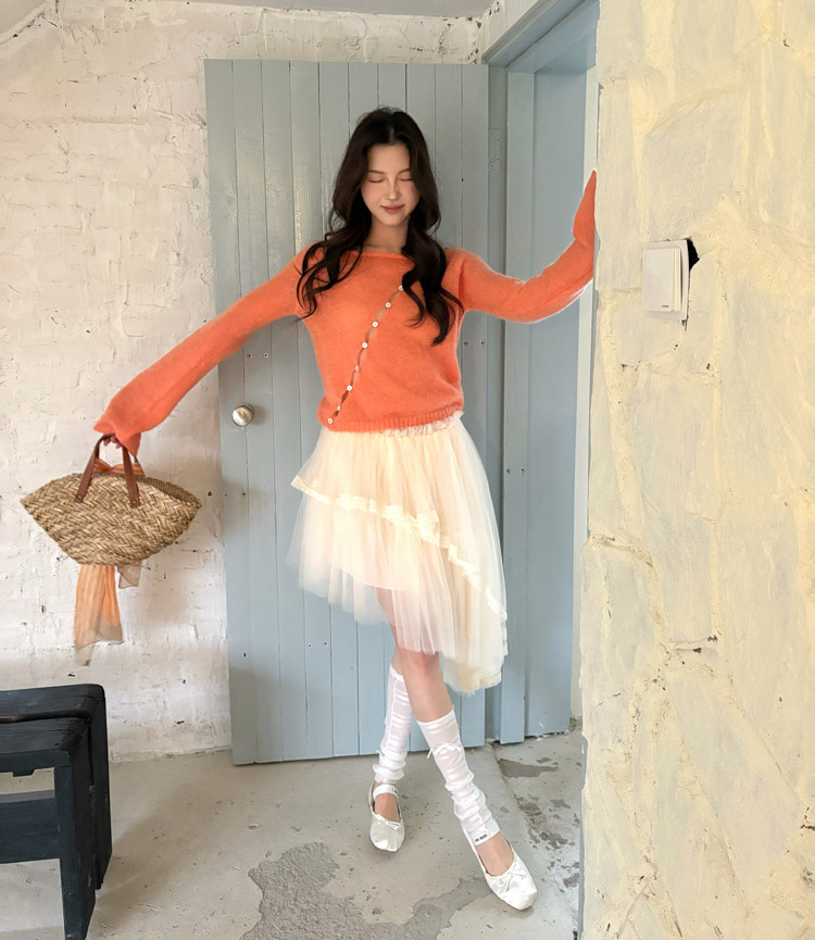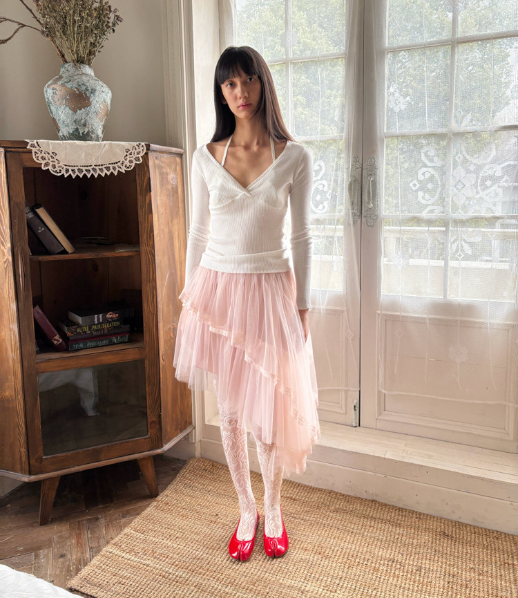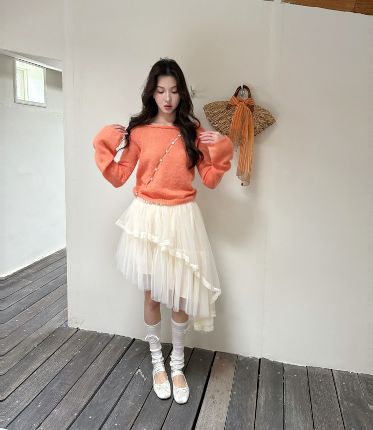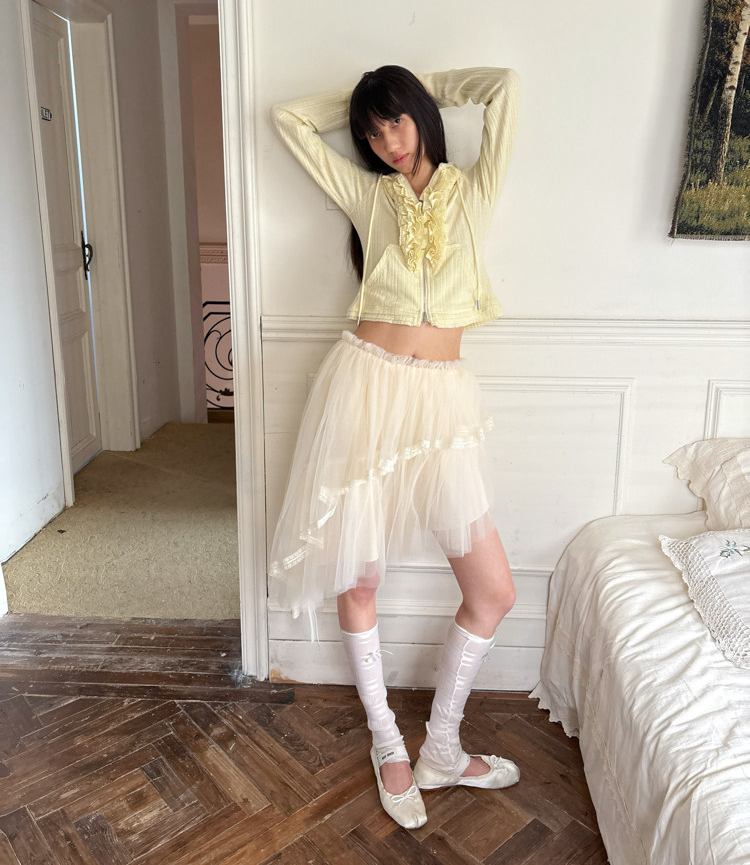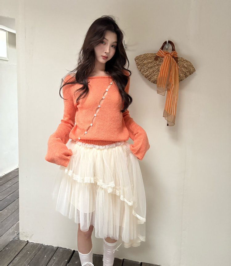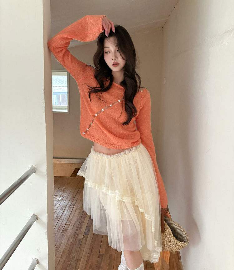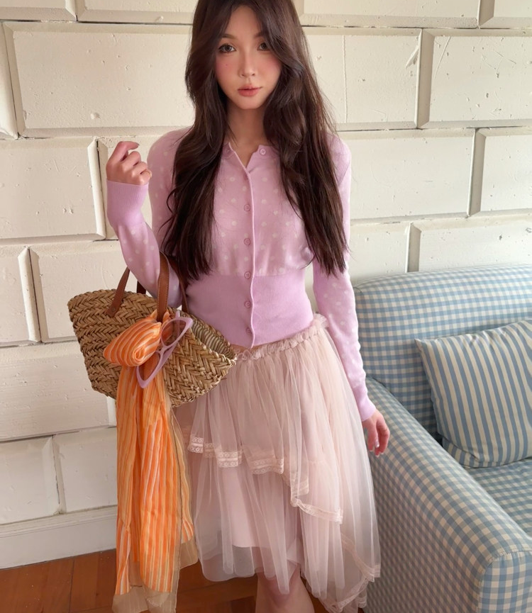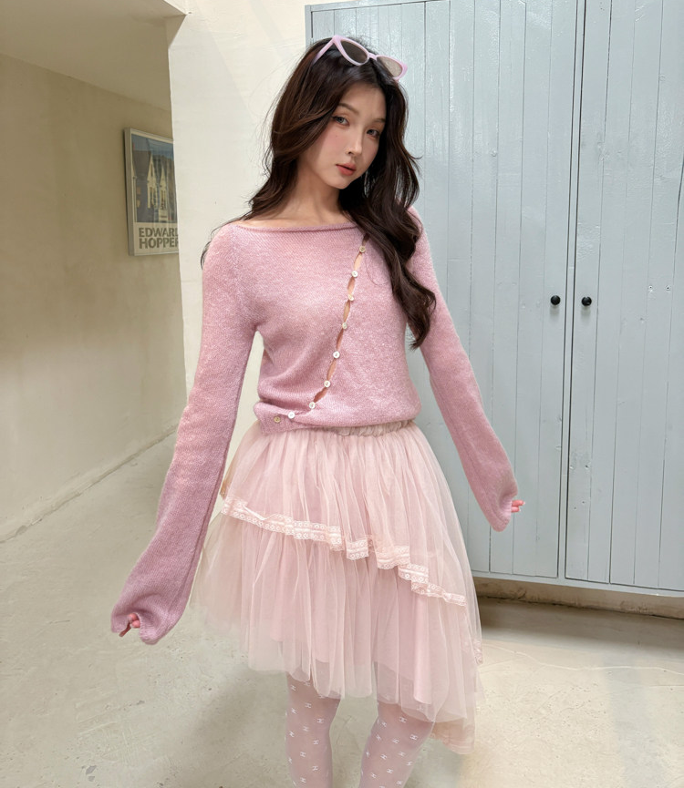 Lace-Mixed High-Quality Fluffy Mesh Half-Sleeve Skirt