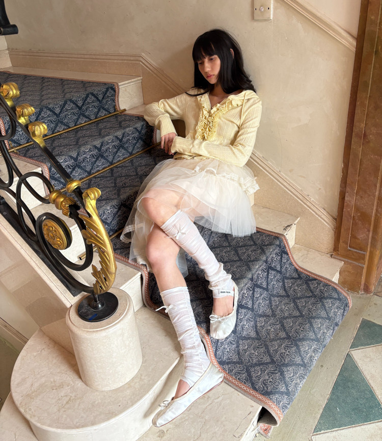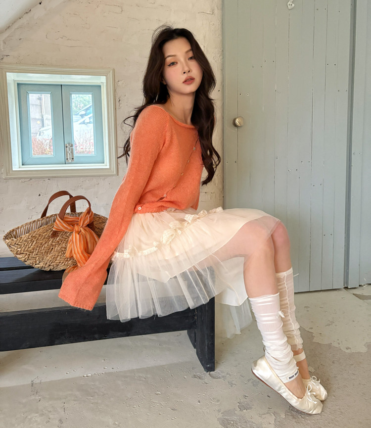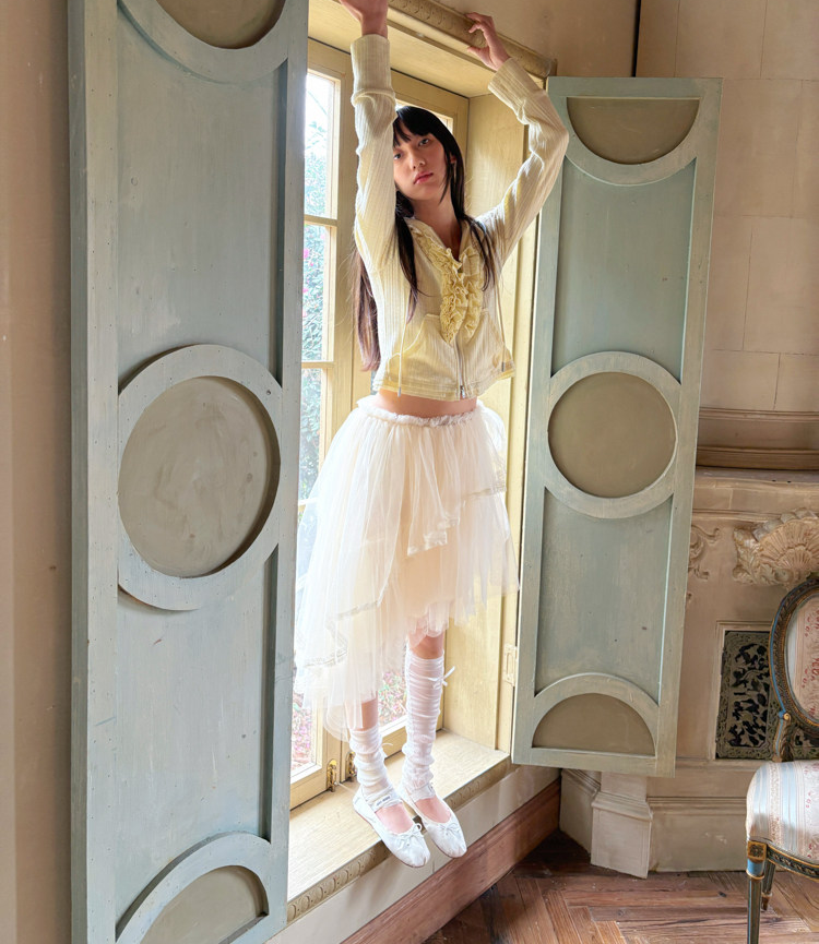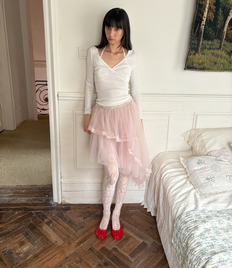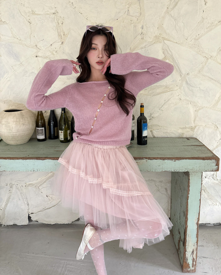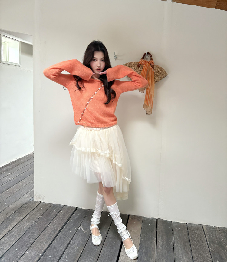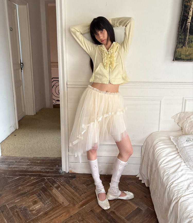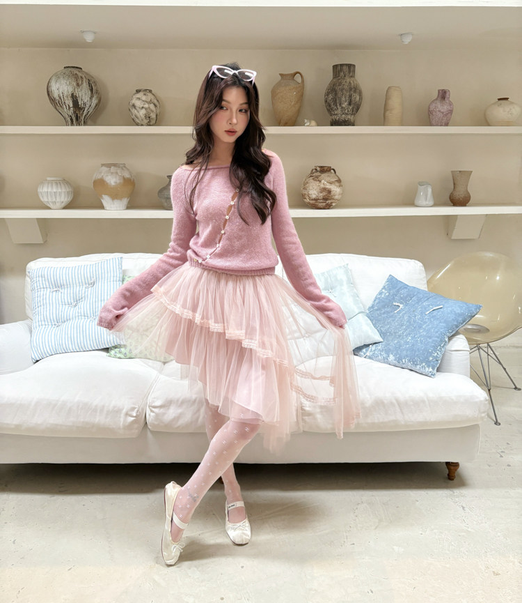 Lace-Mixed High-Quality Fluffy Mesh Half-Sleeve Skirt