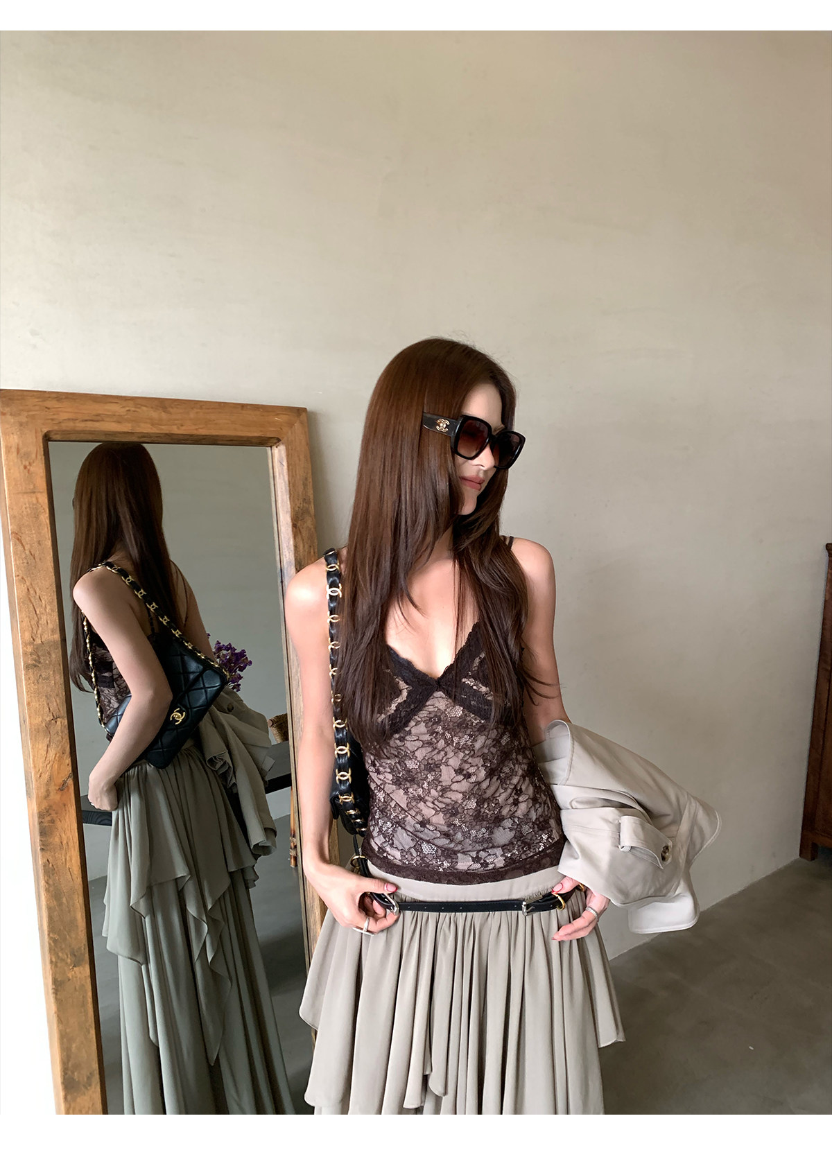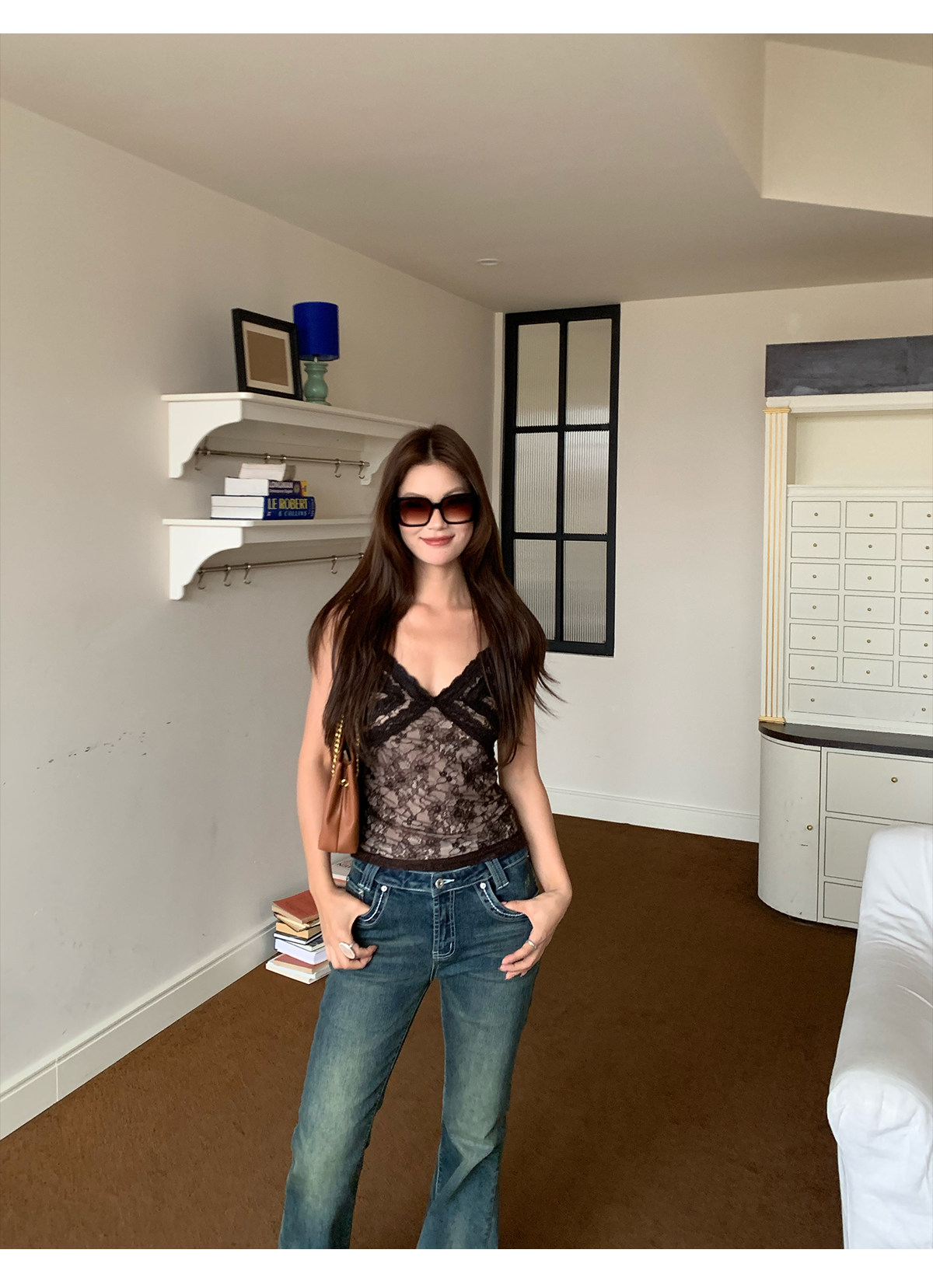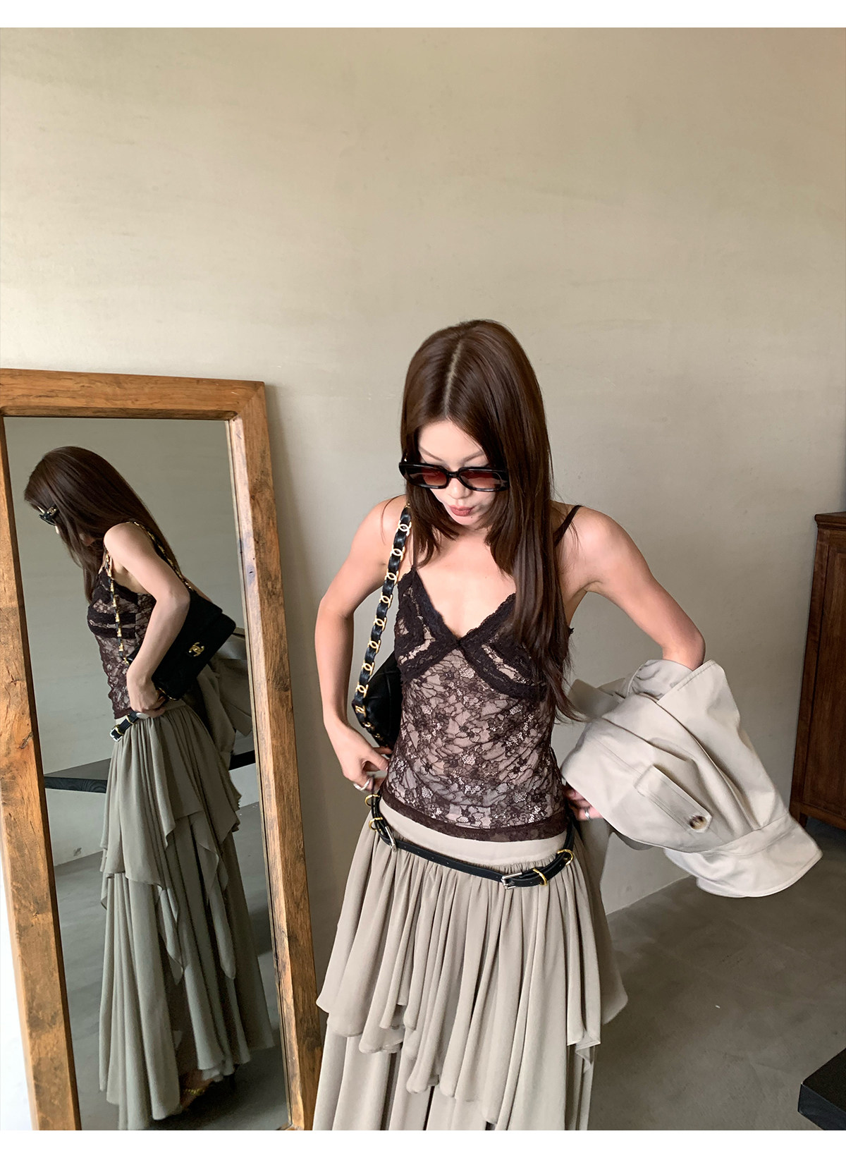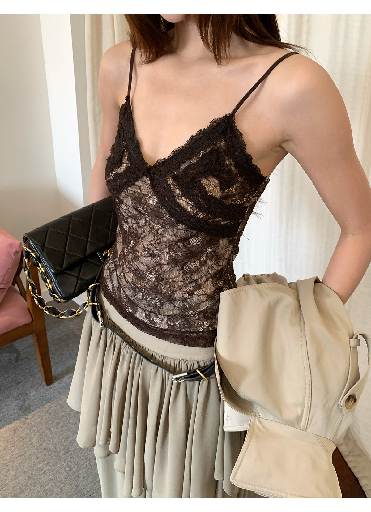 French lace trim strap tank top