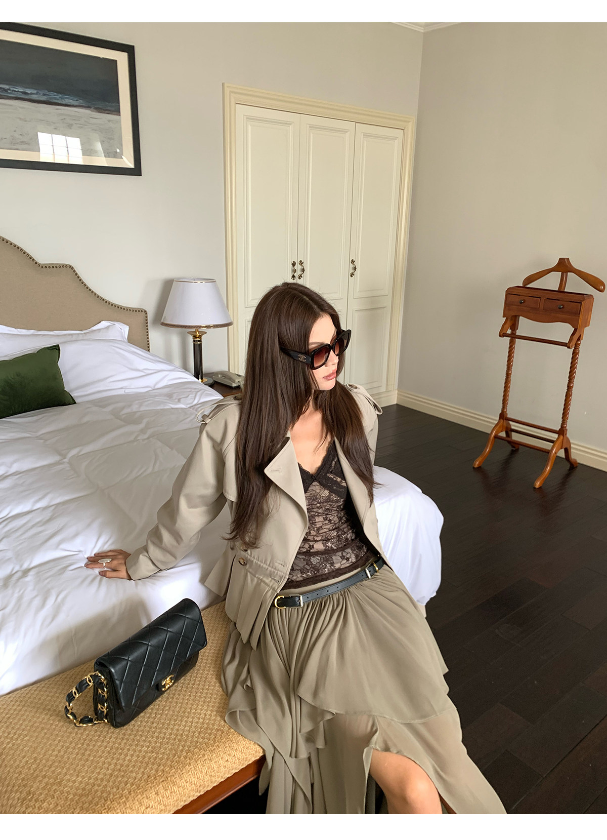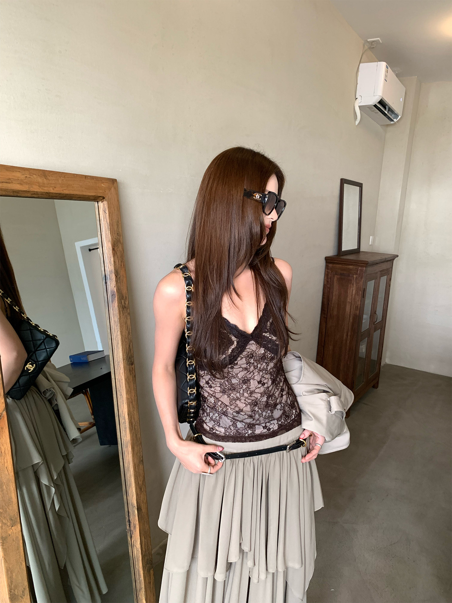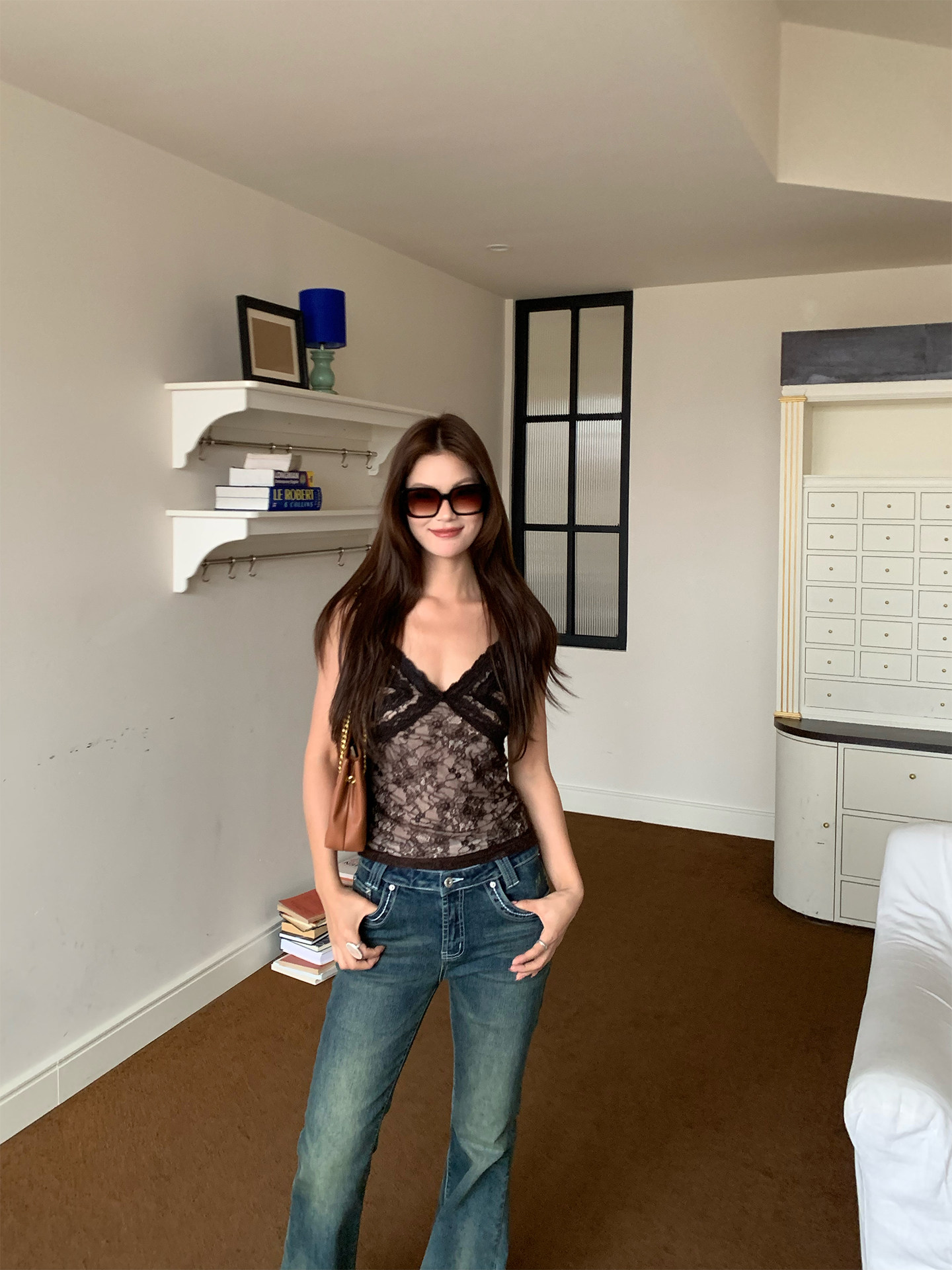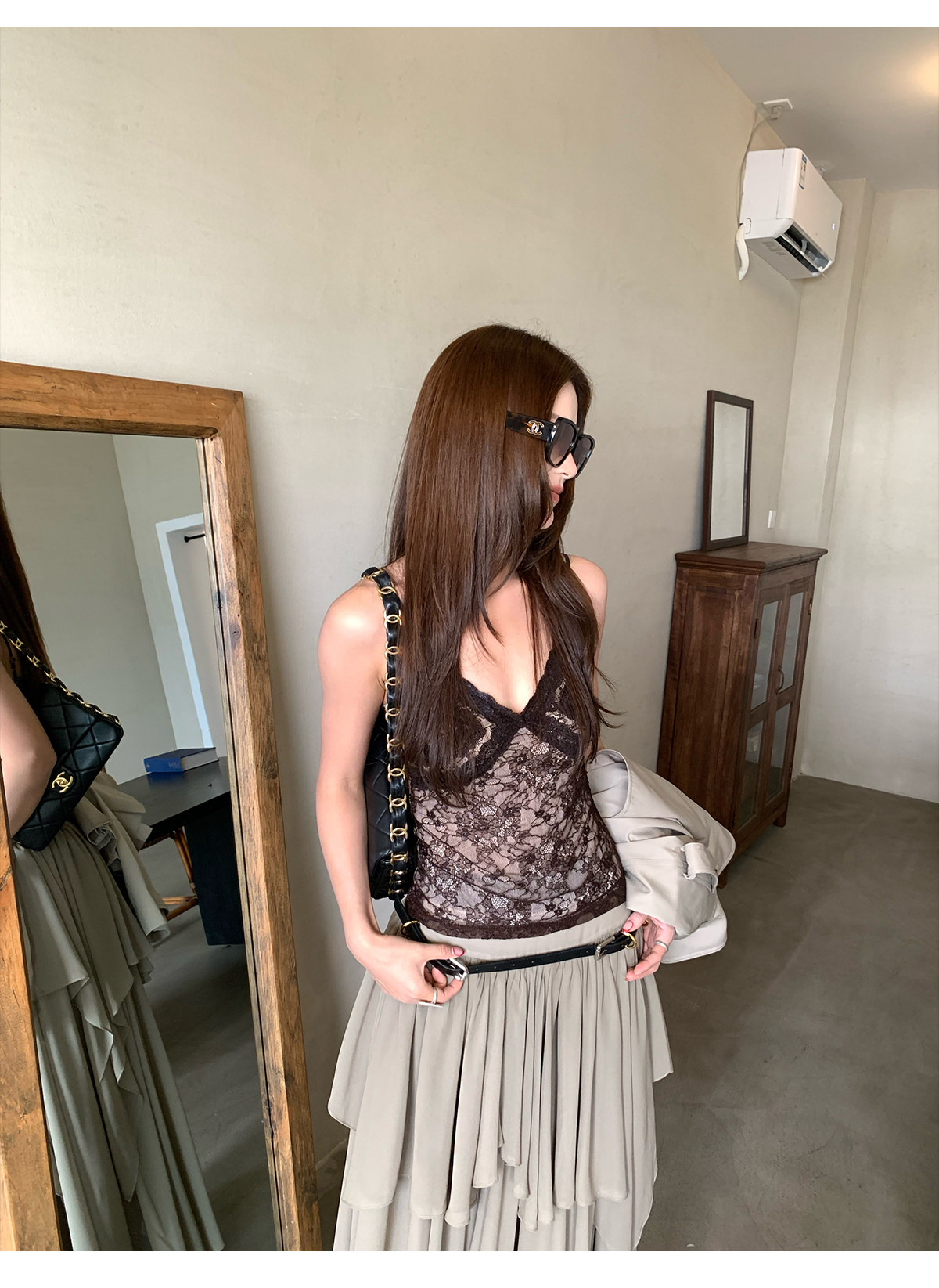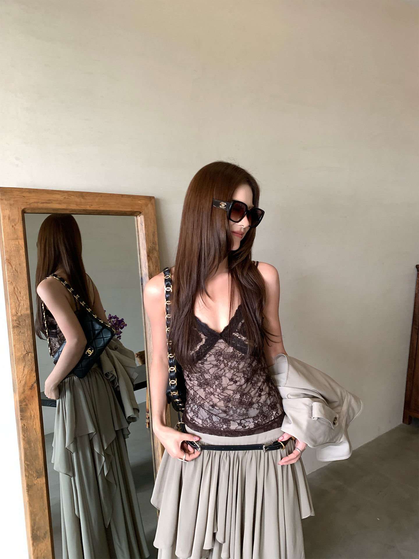 French lace trim strap tank top