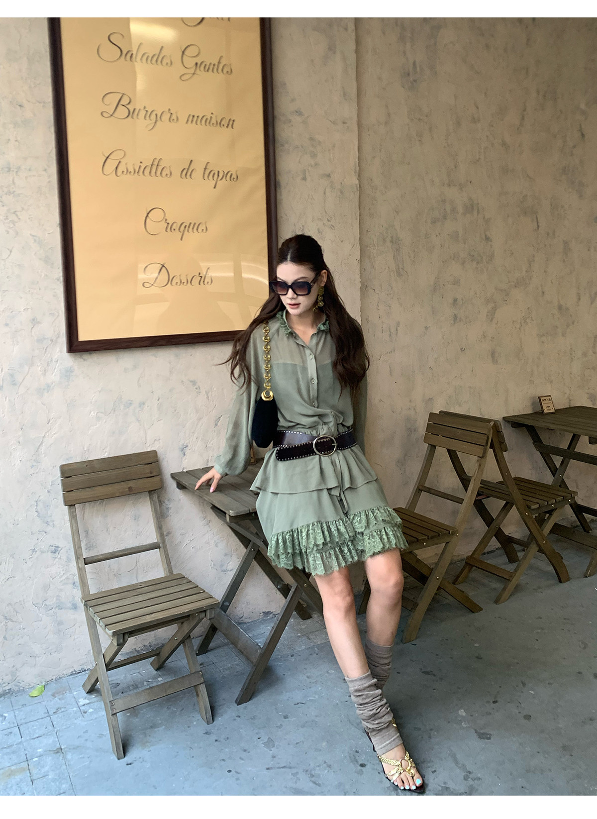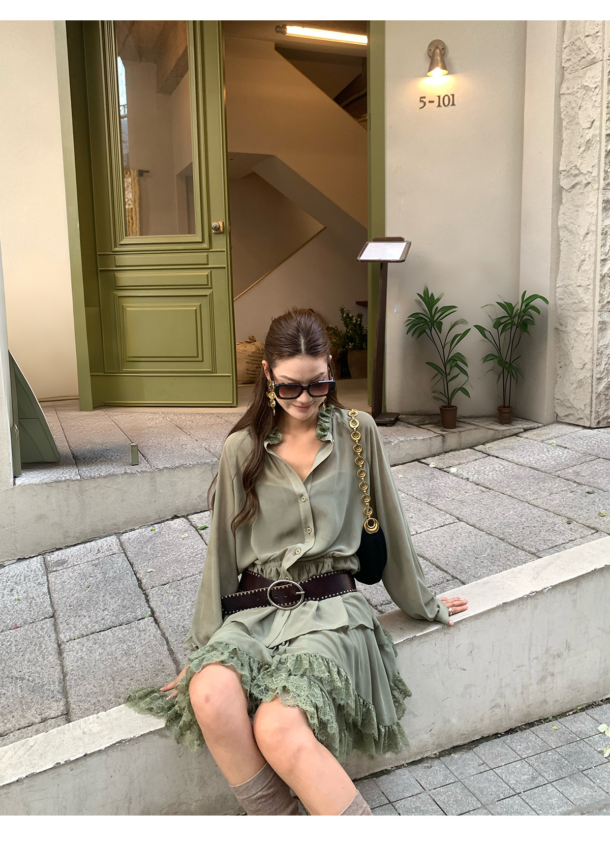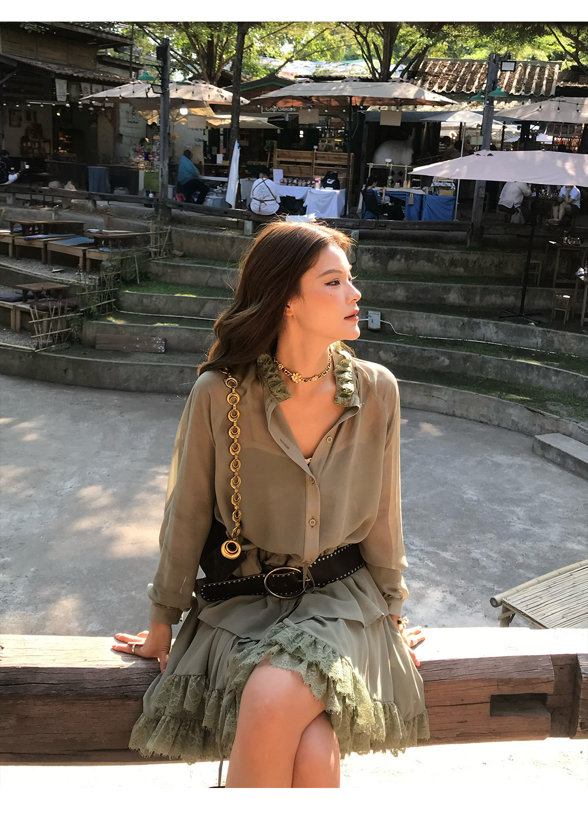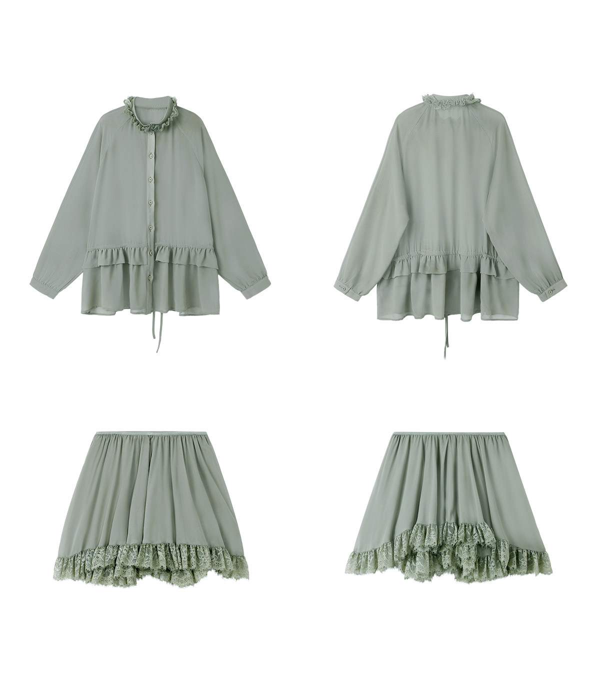 Floral Collar Thin Long-Sleeve Skirt Two-Piece Set