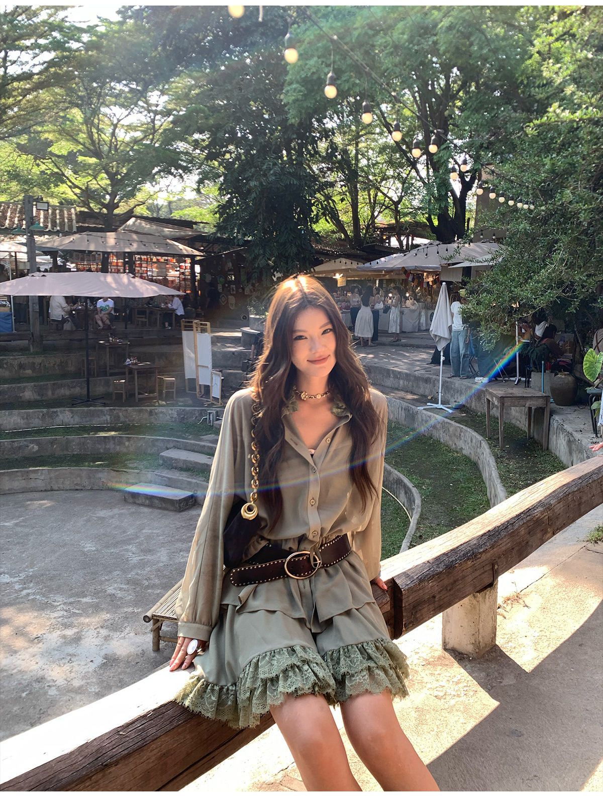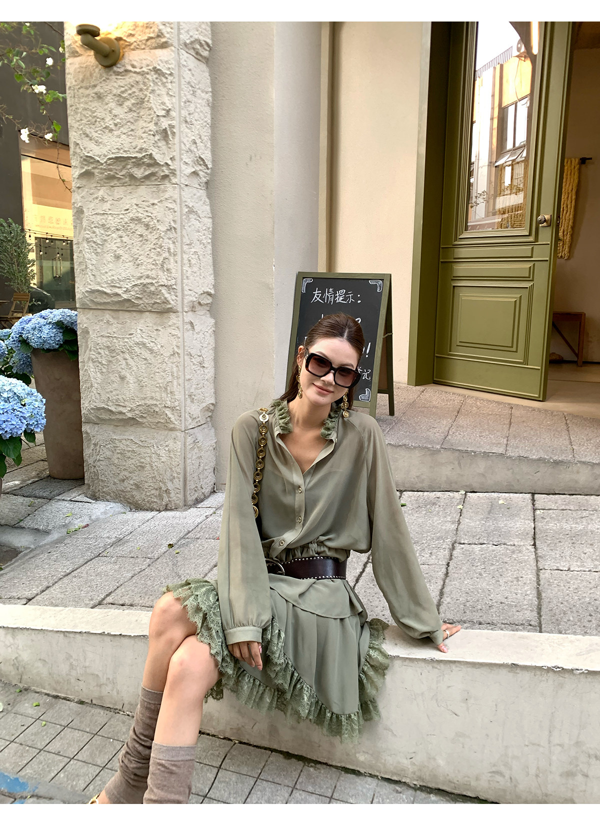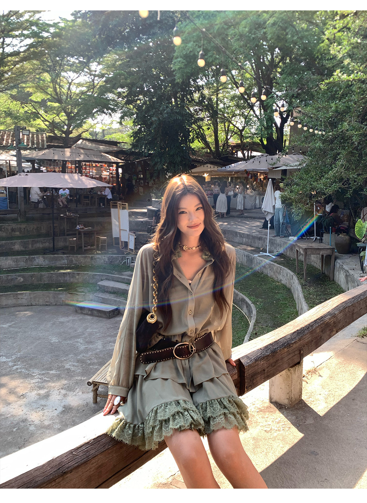 Floral Collar Thin Long-Sleeve Skirt Two-Piece Set
