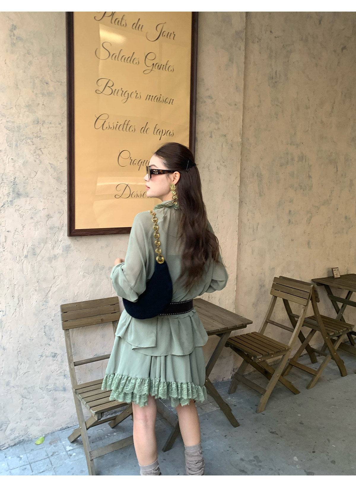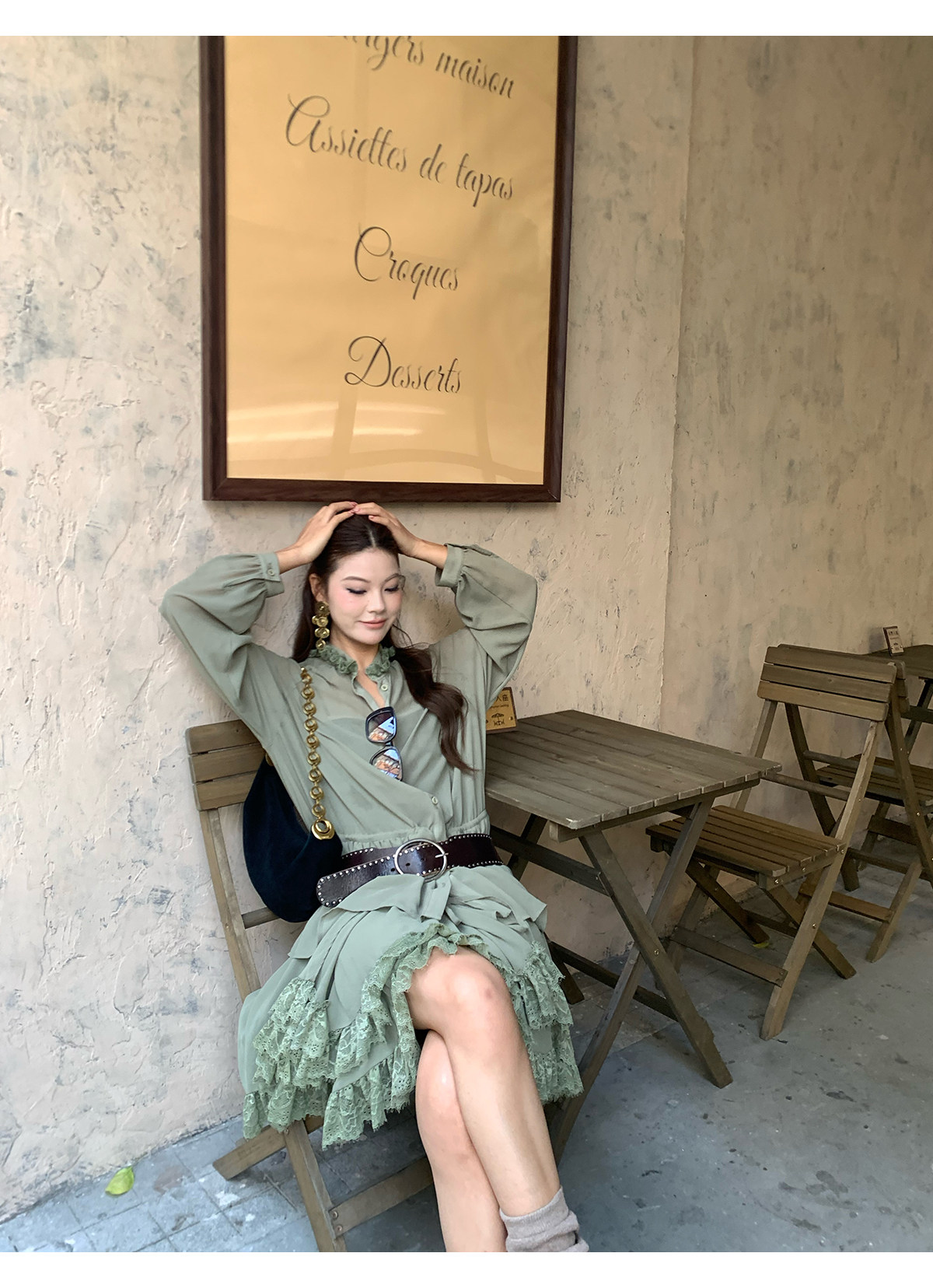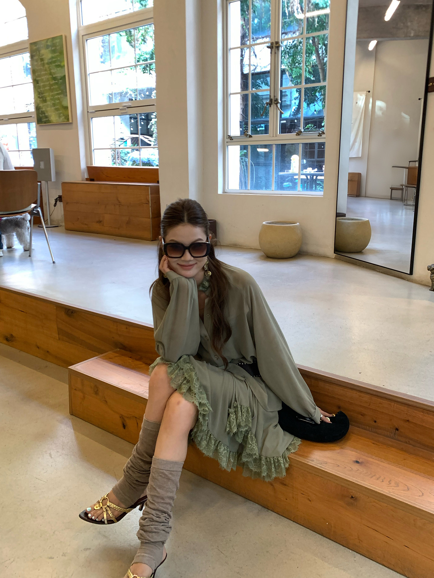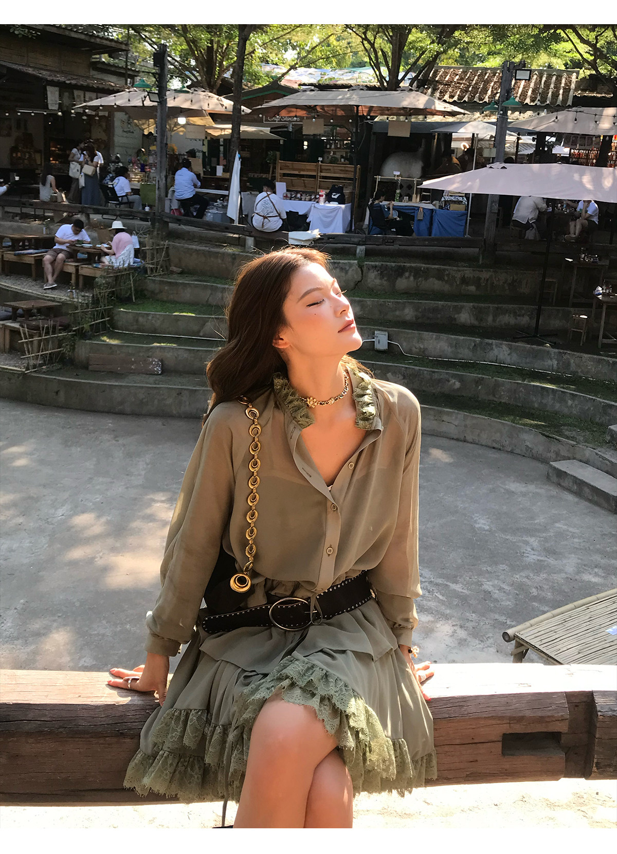 Floral Collar Thin Long-Sleeve Skirt Two-Piece Set