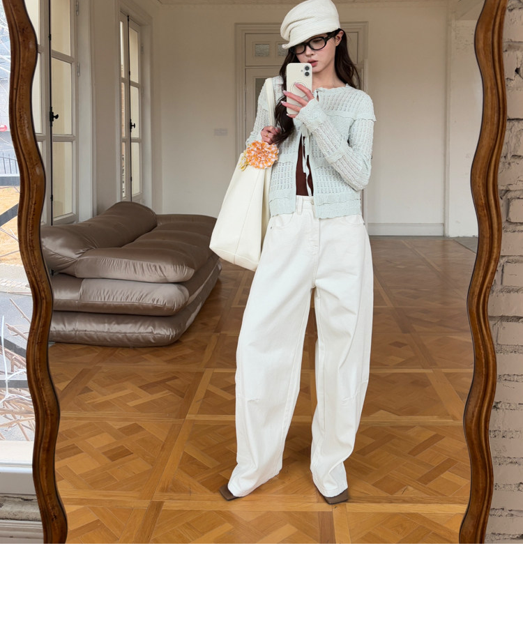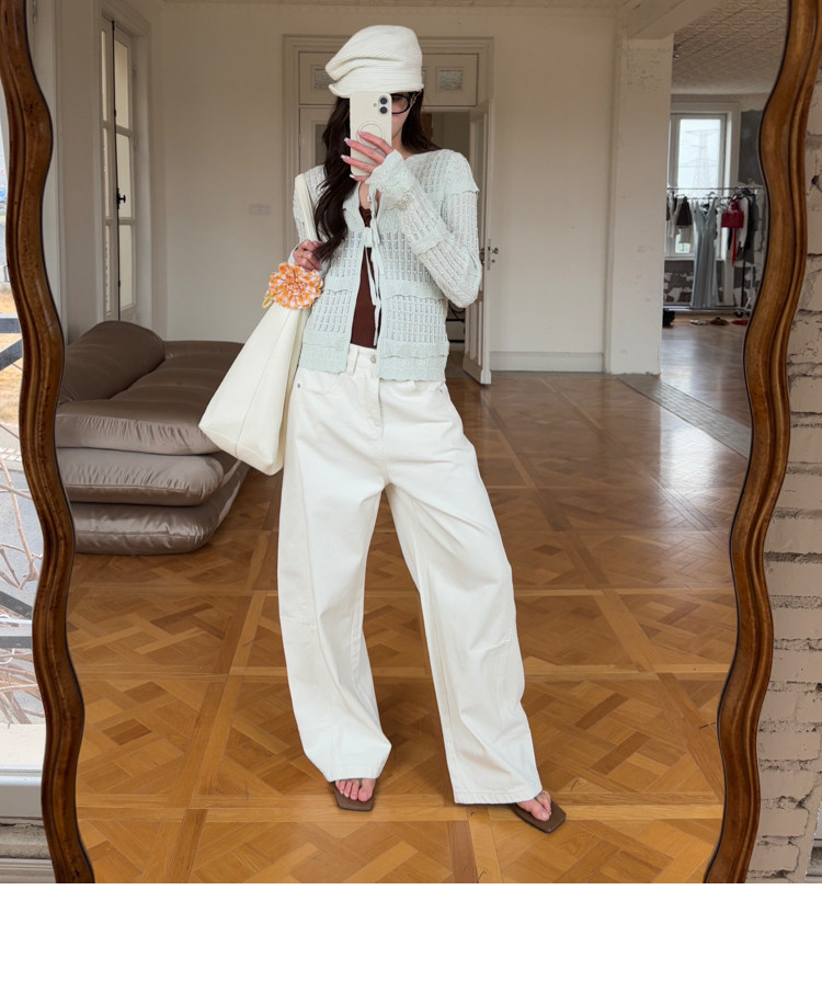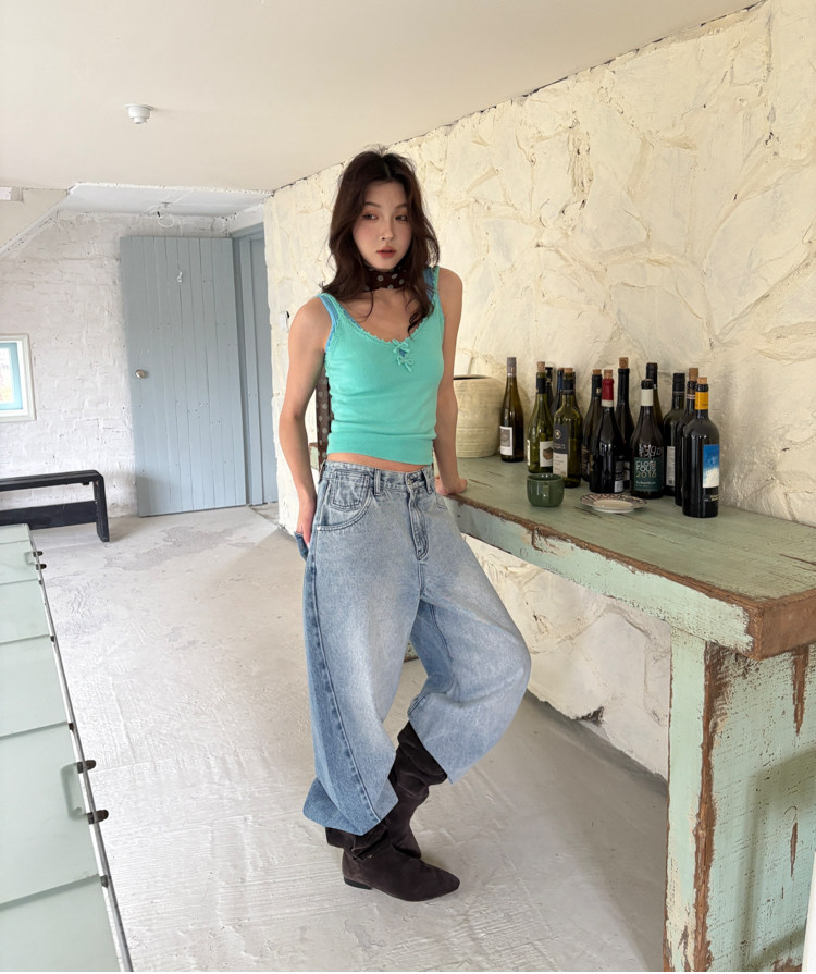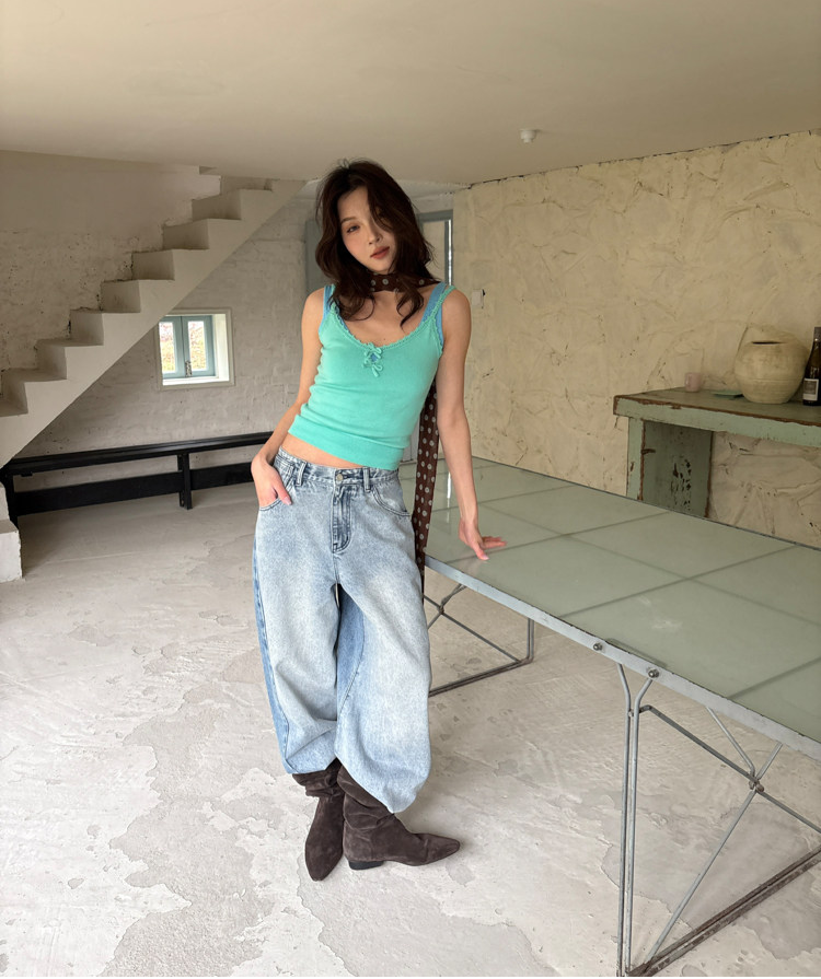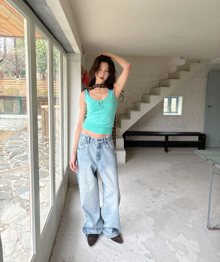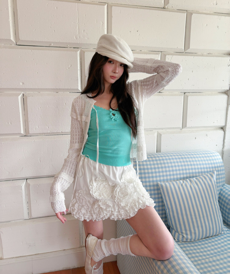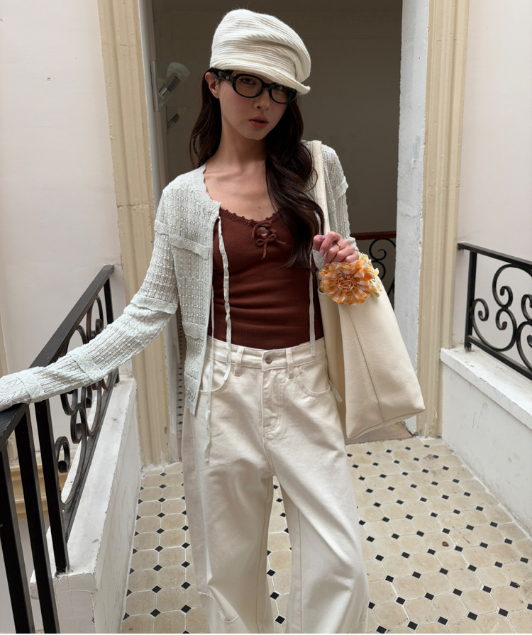French Retro Handcrafted Edge V-Neck Knit Strap Top